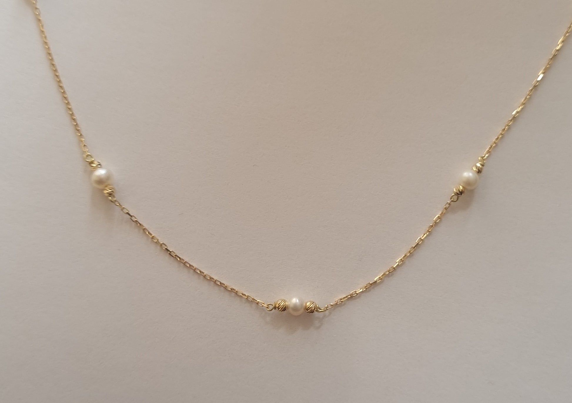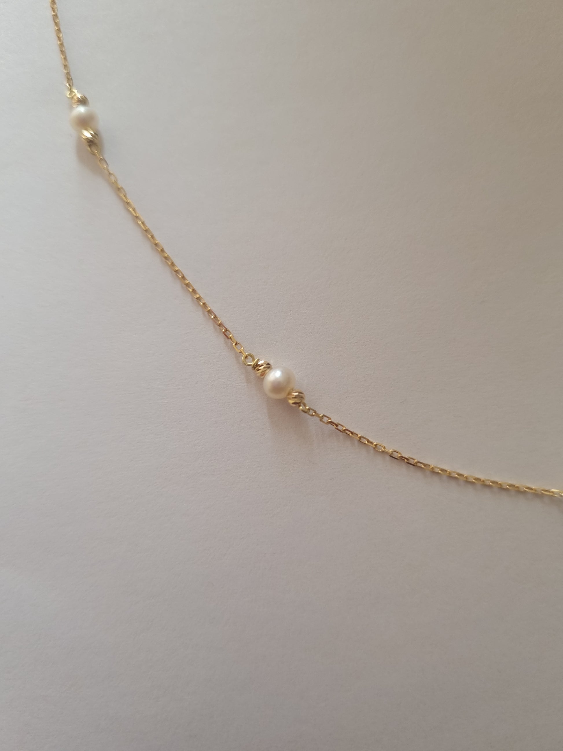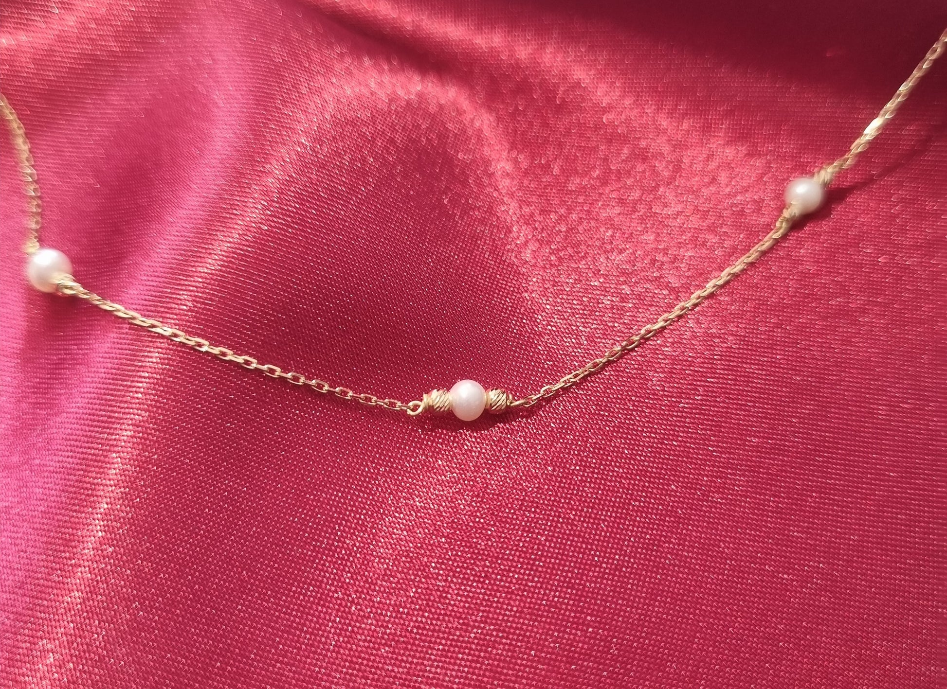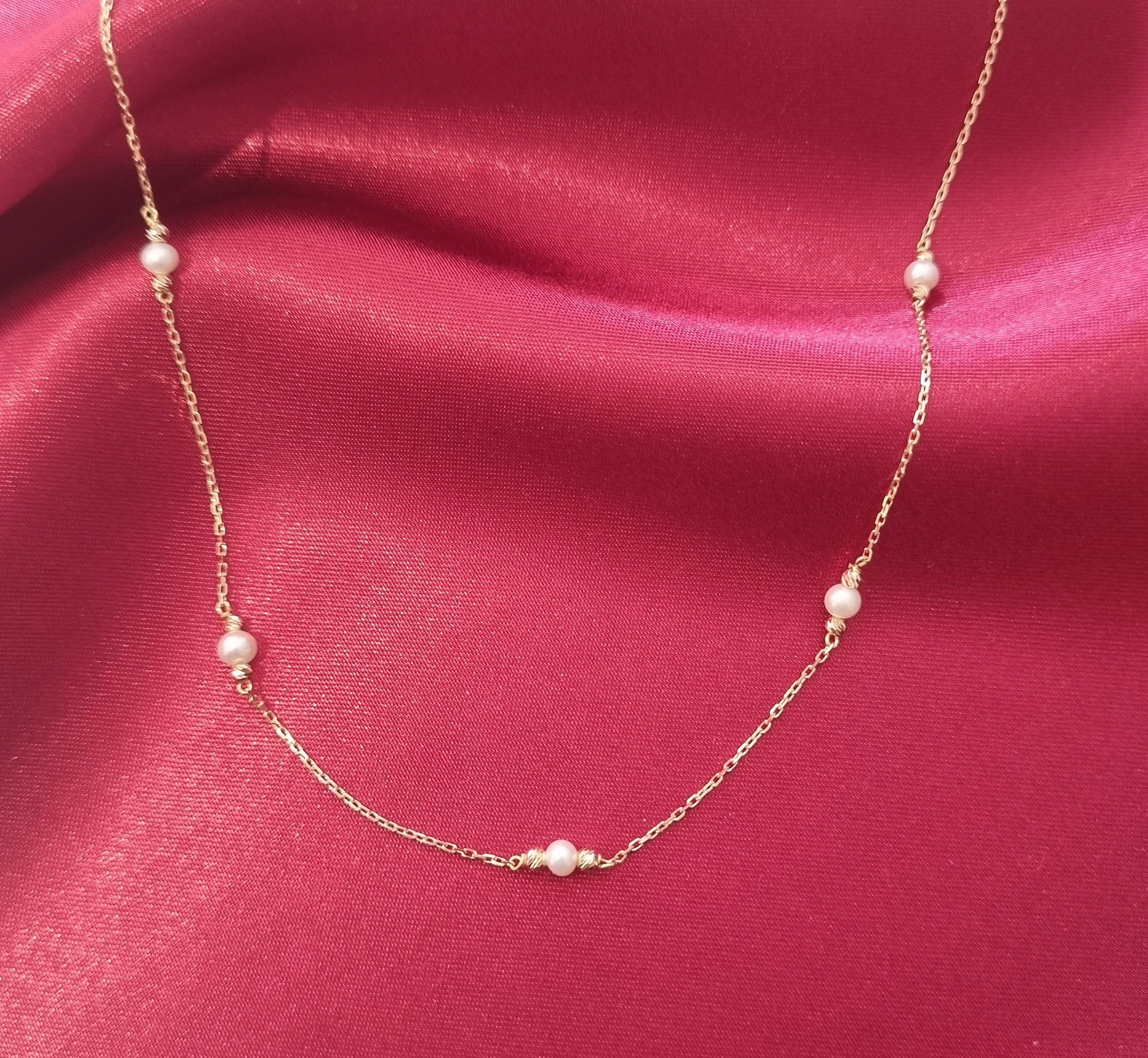 This is a beautiful 18k solid gold pearl necklace / pearl chain.