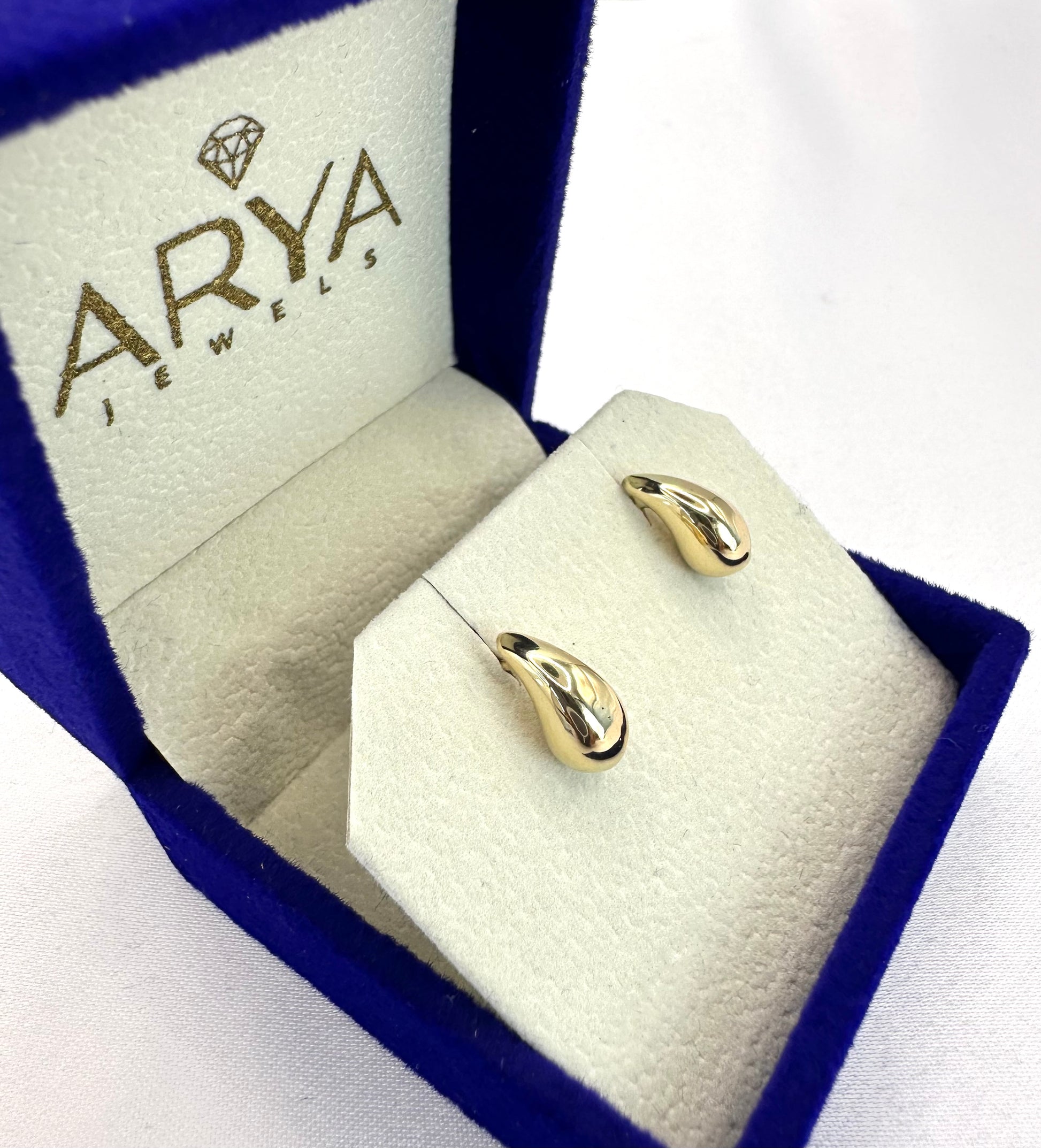 18k solid gold rain drop ear studs
