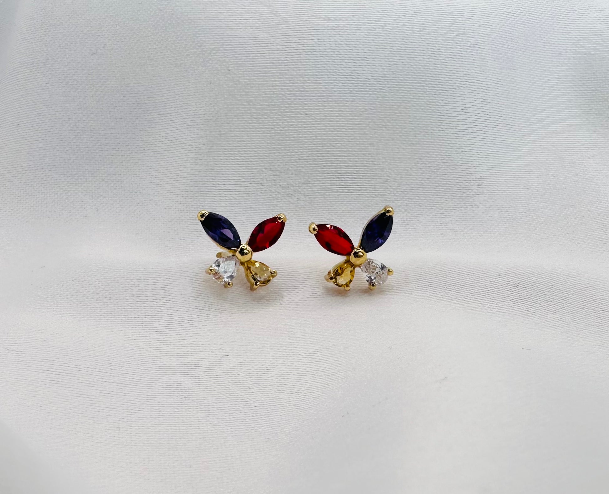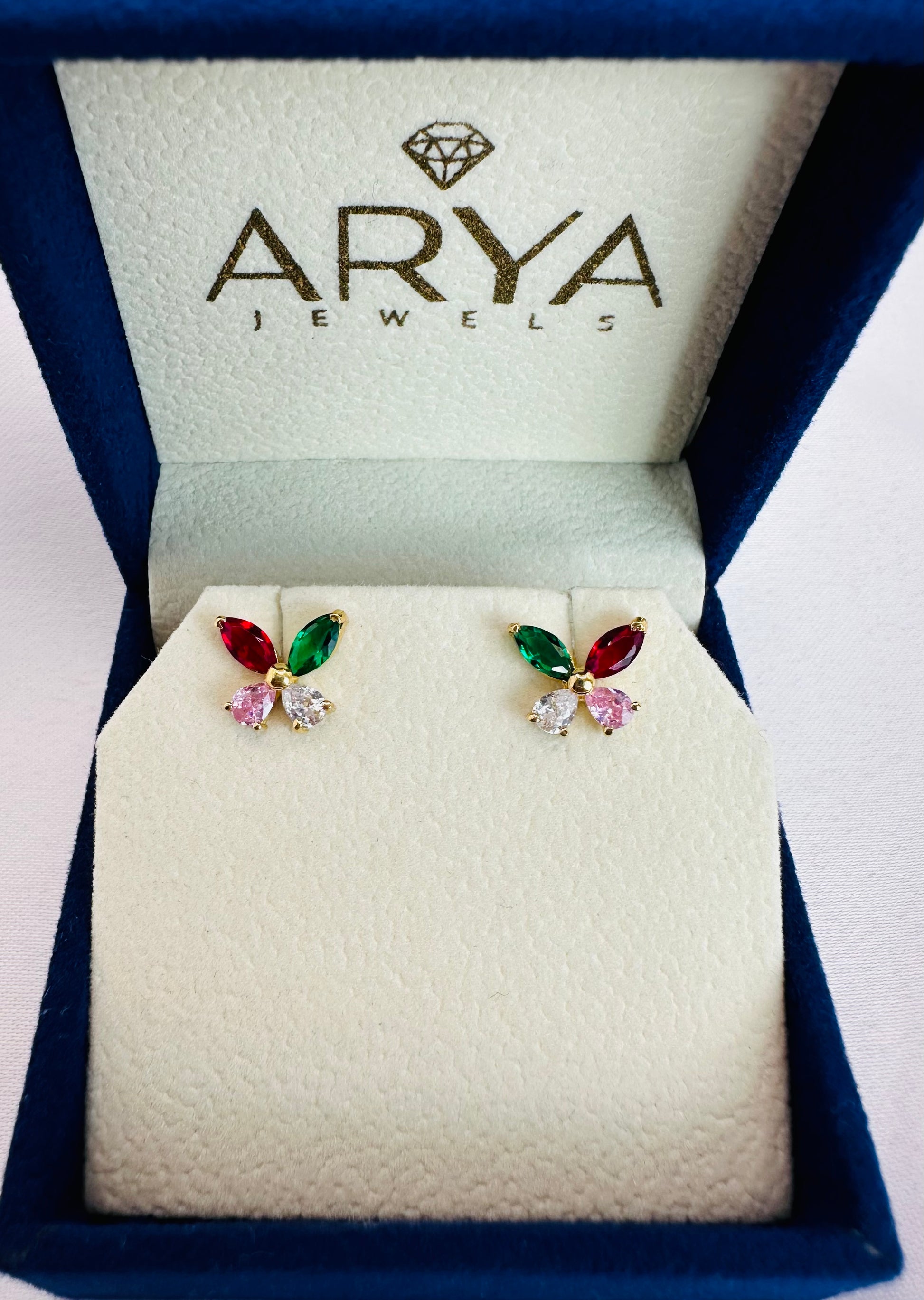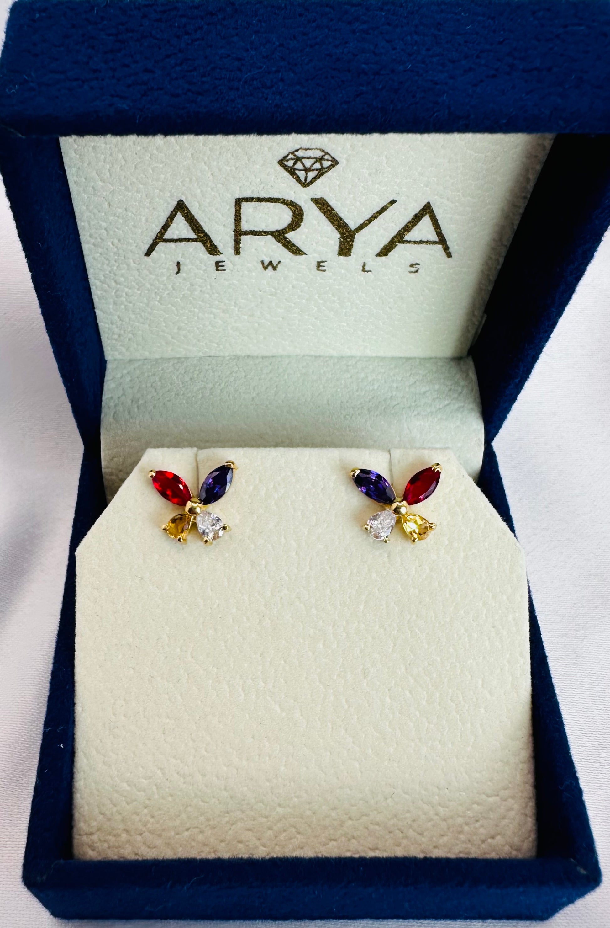 22k solid gold ear butterfly earrings with white cubic zirconia/ American diamond gemstones - 916 hallmarked