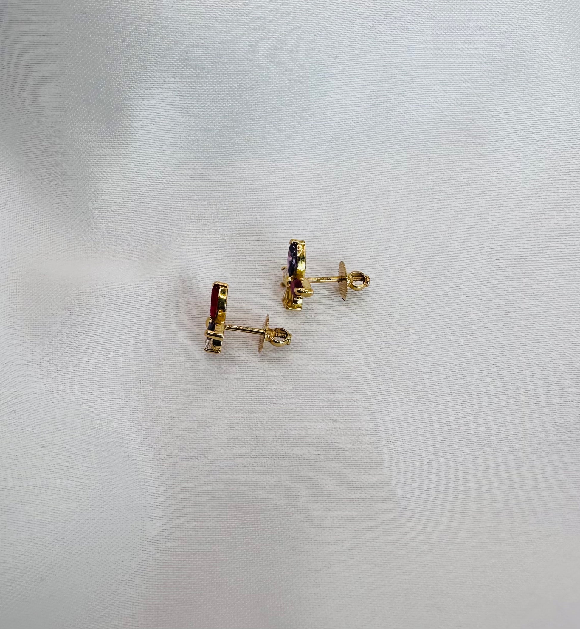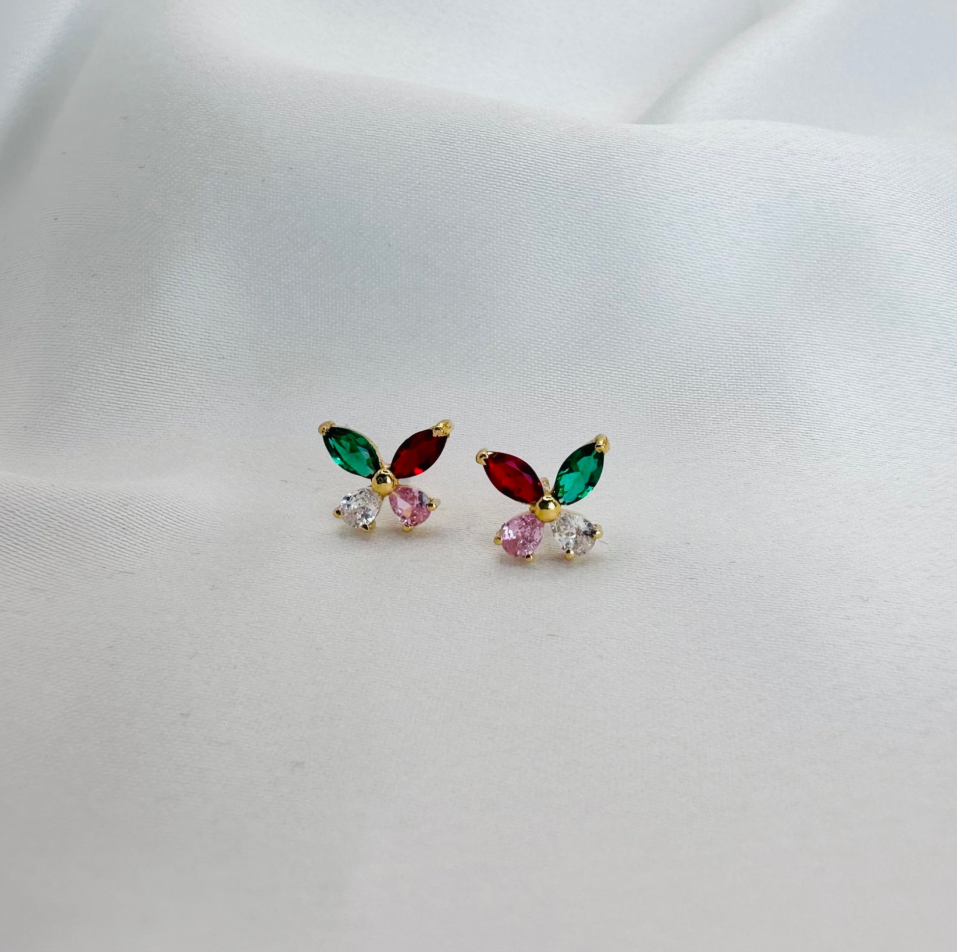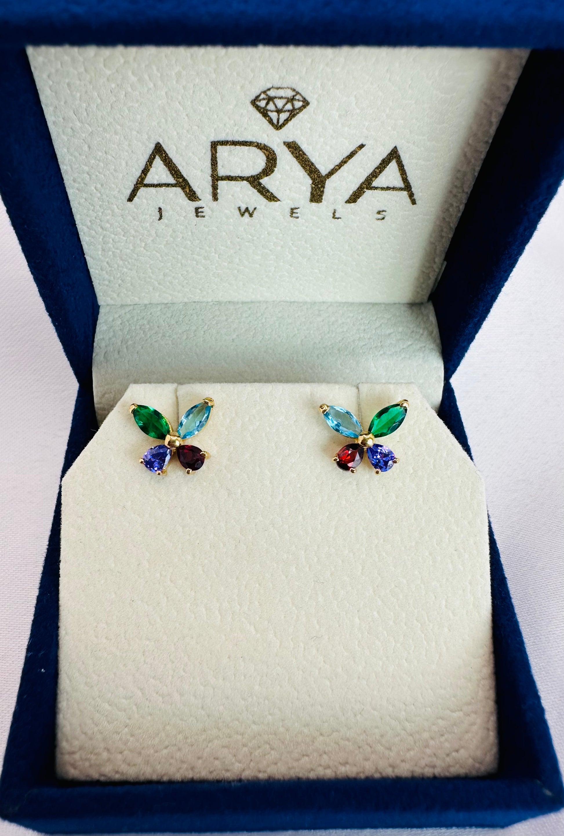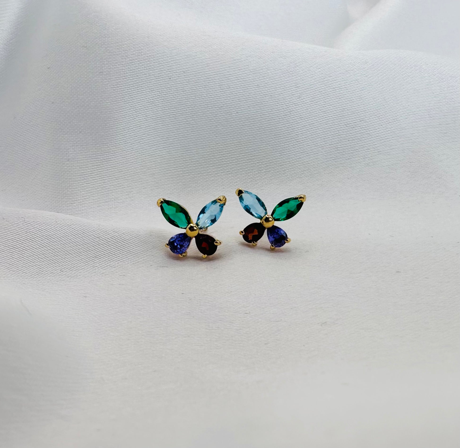 22k solid gold ear butterfly earrings with white cubic zirconia/ American diamond gemstones - 916 hallmarked
