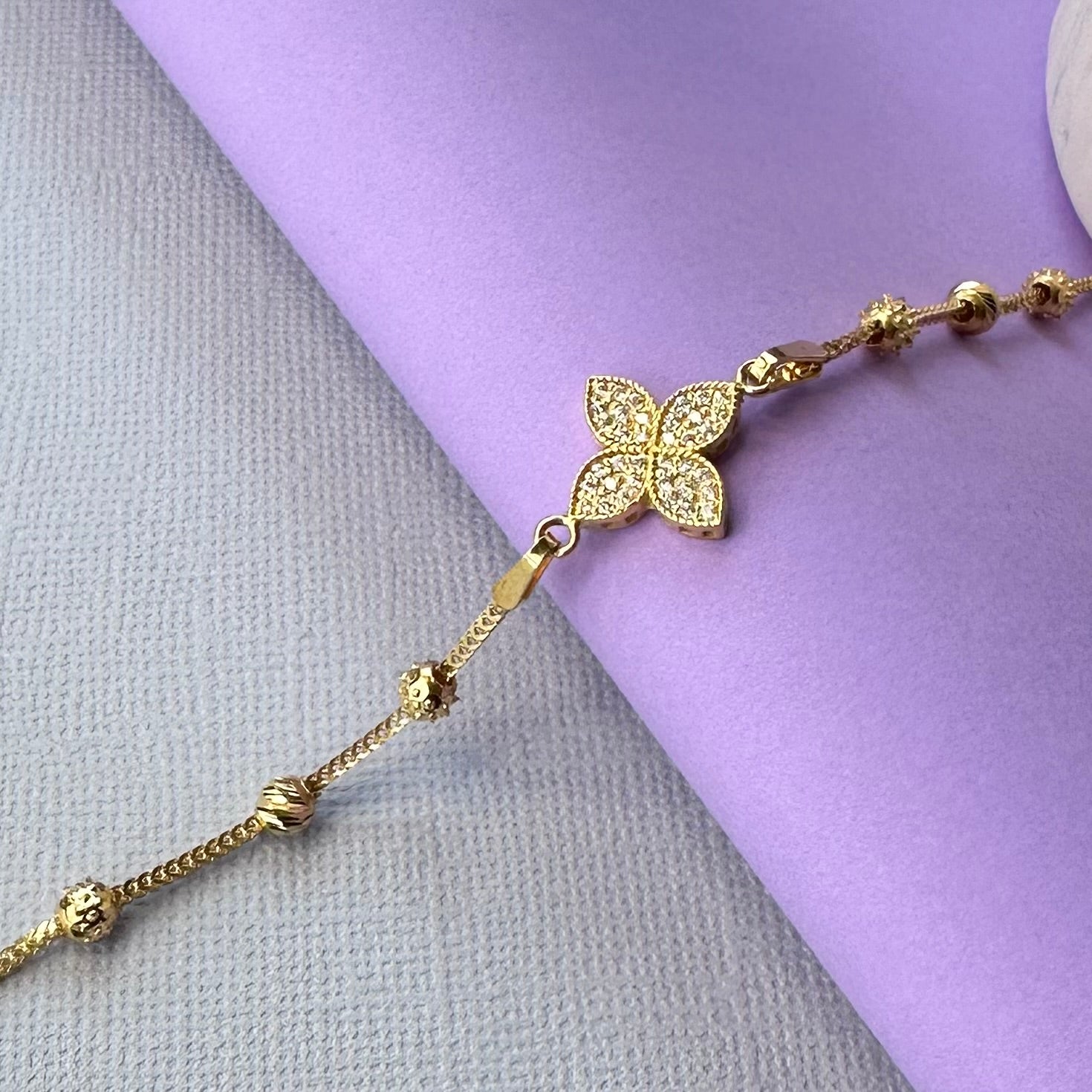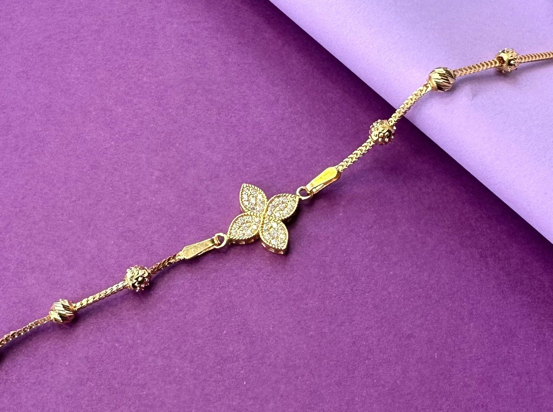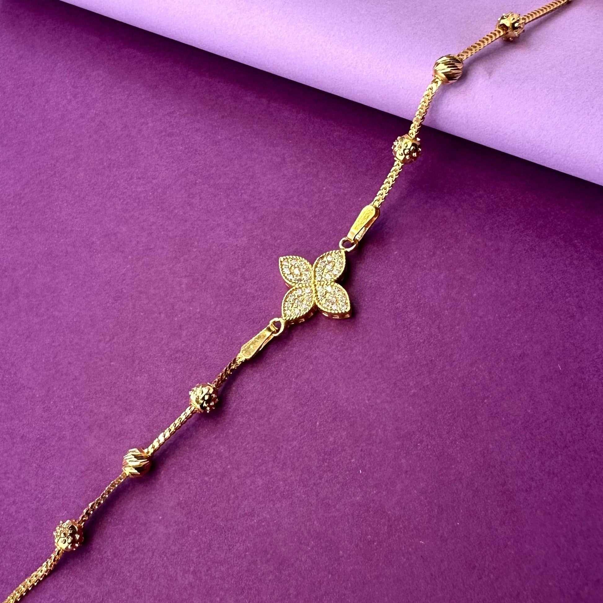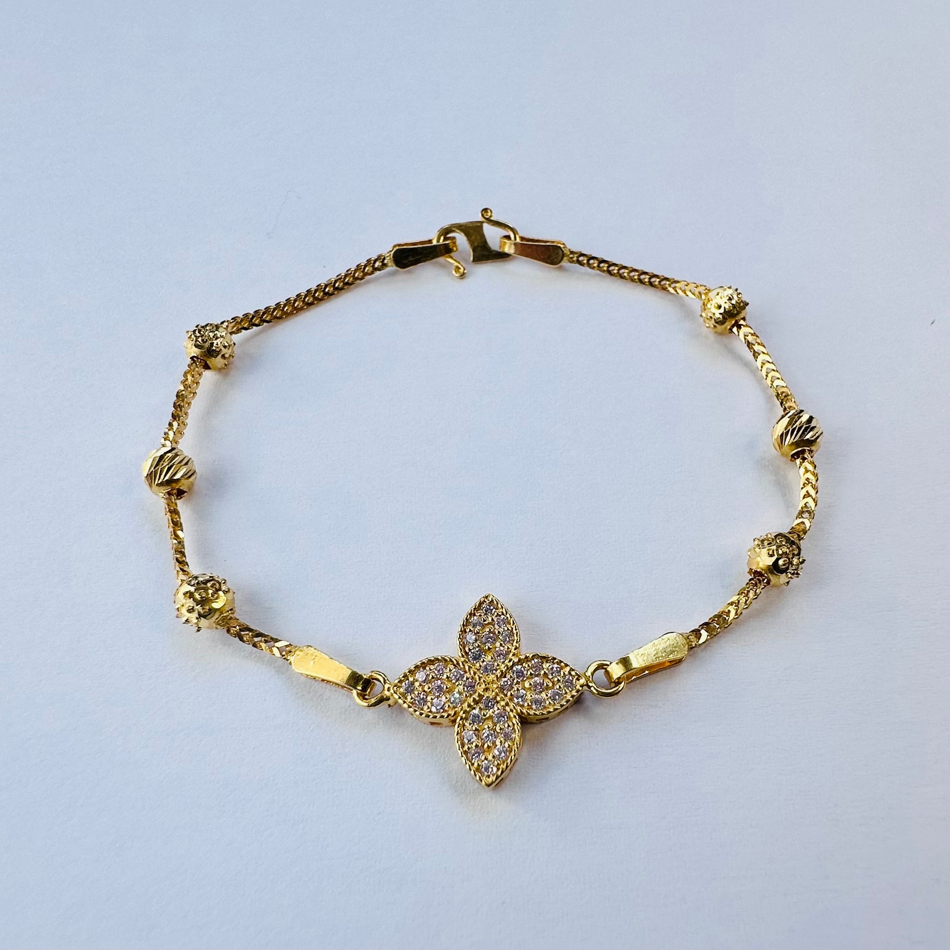 22k solid gold designer bracelet with studded flower in the middle - 916 hallmark UK.
