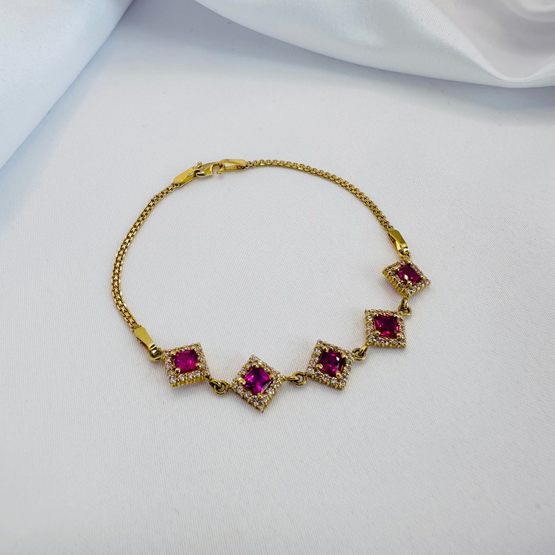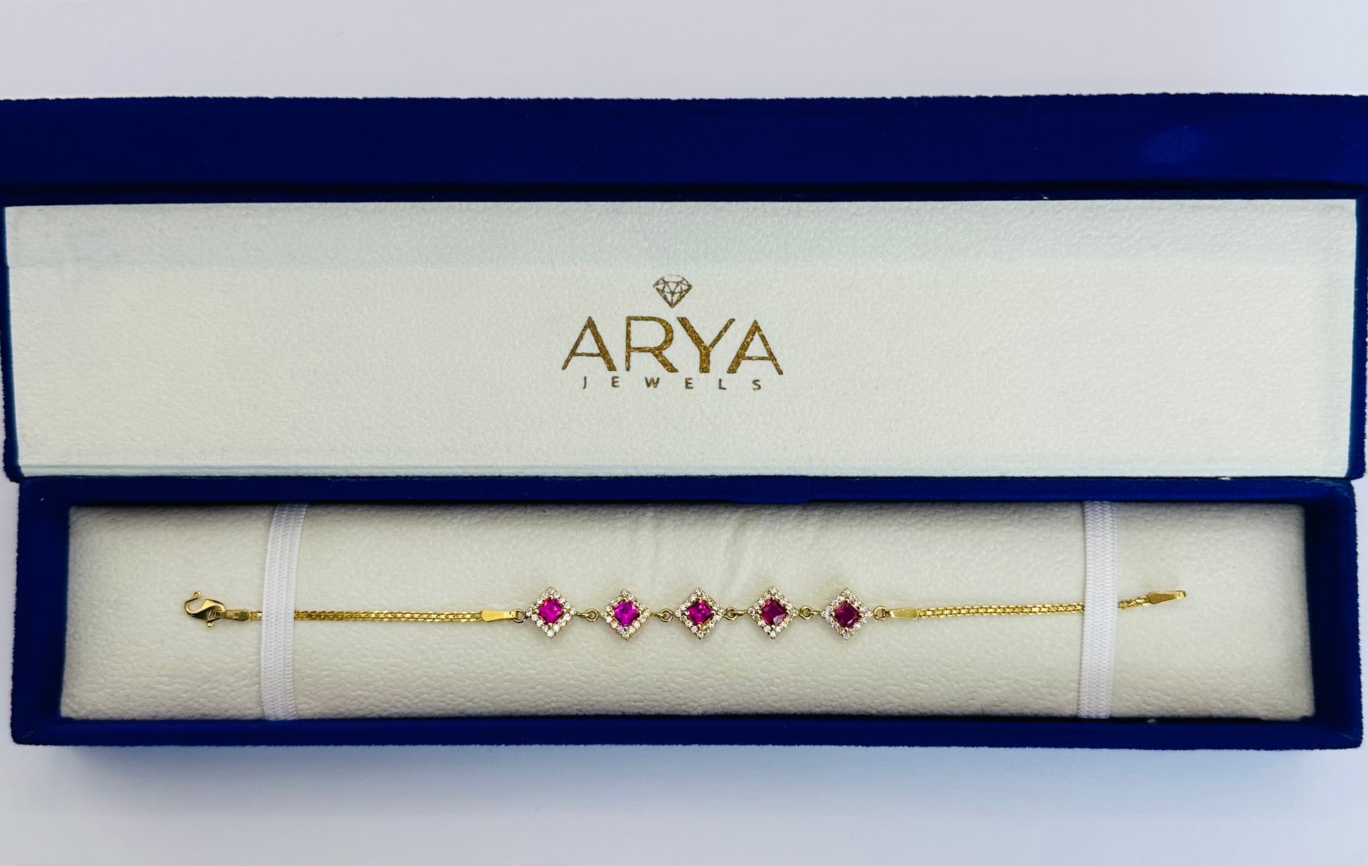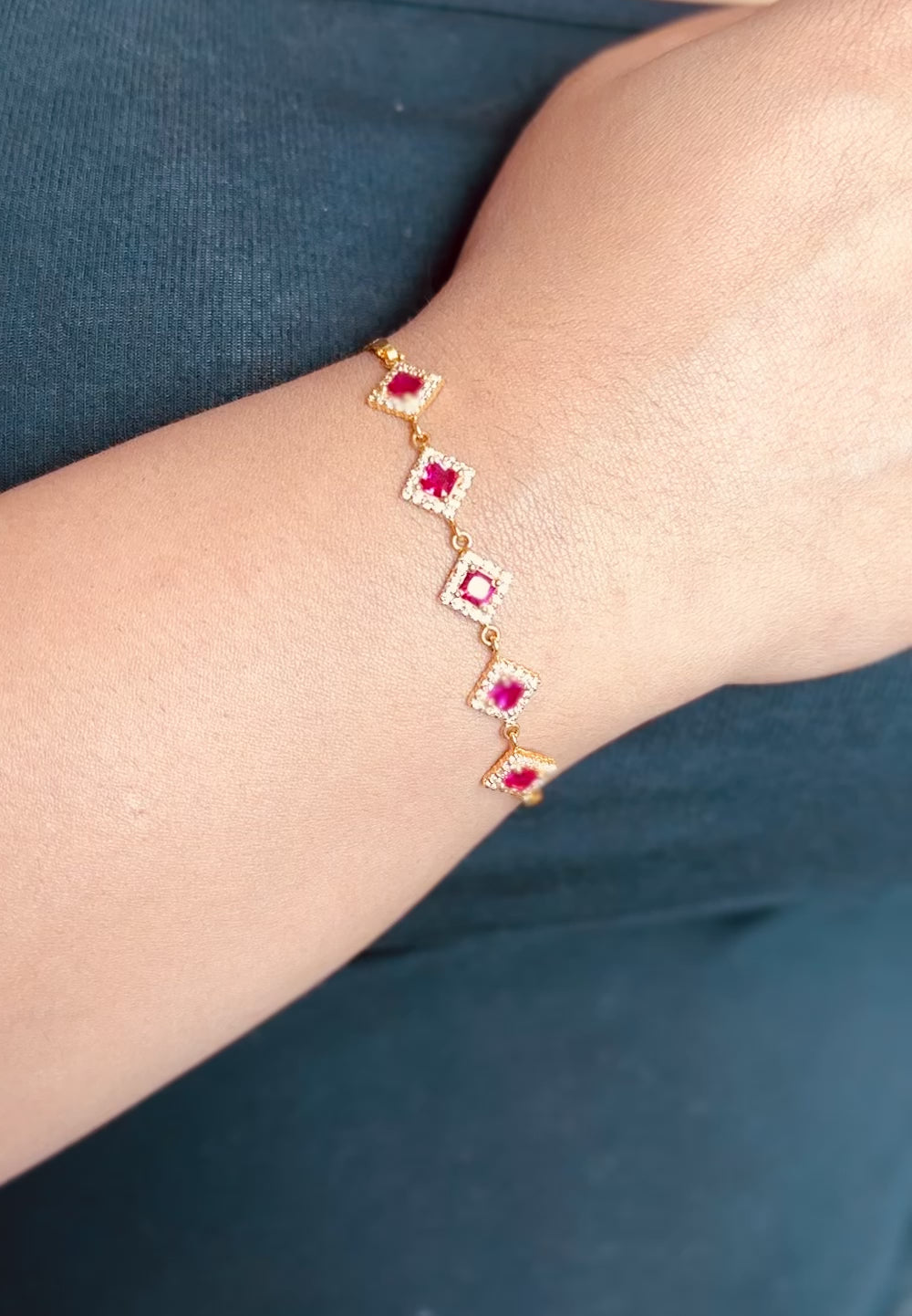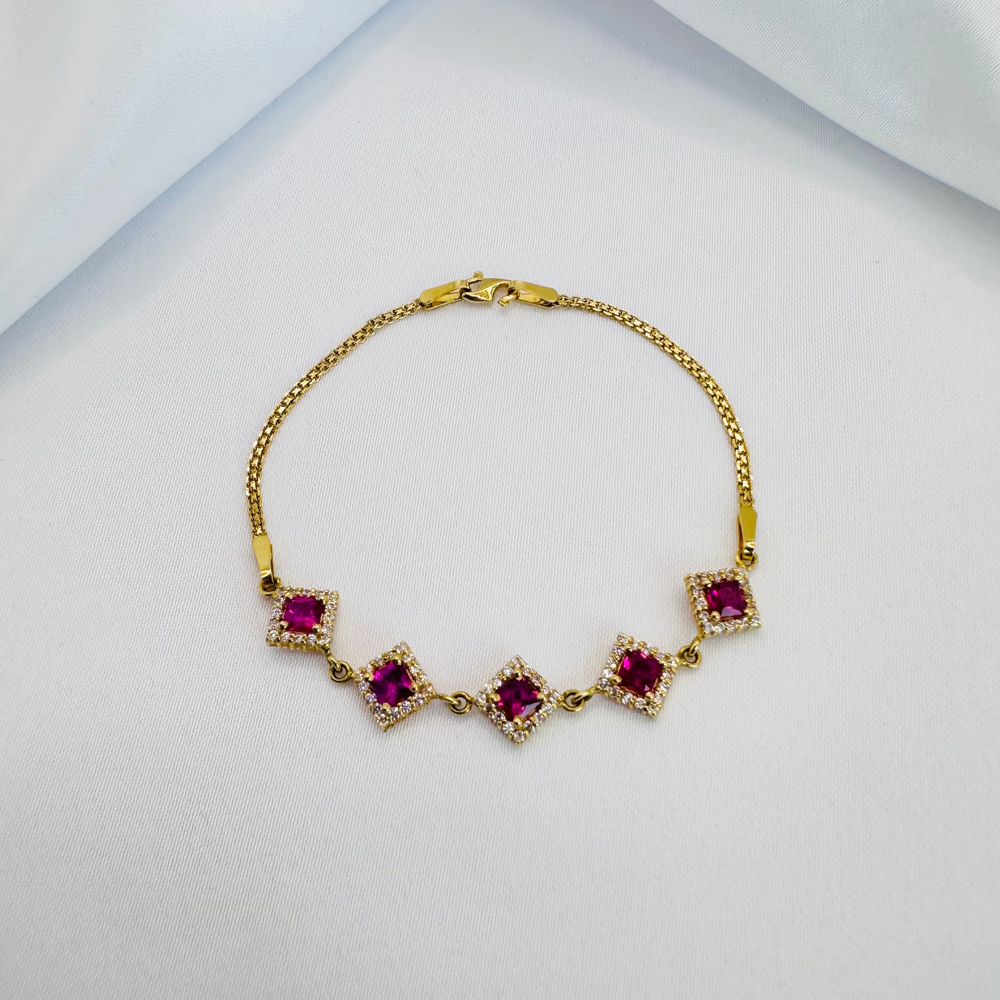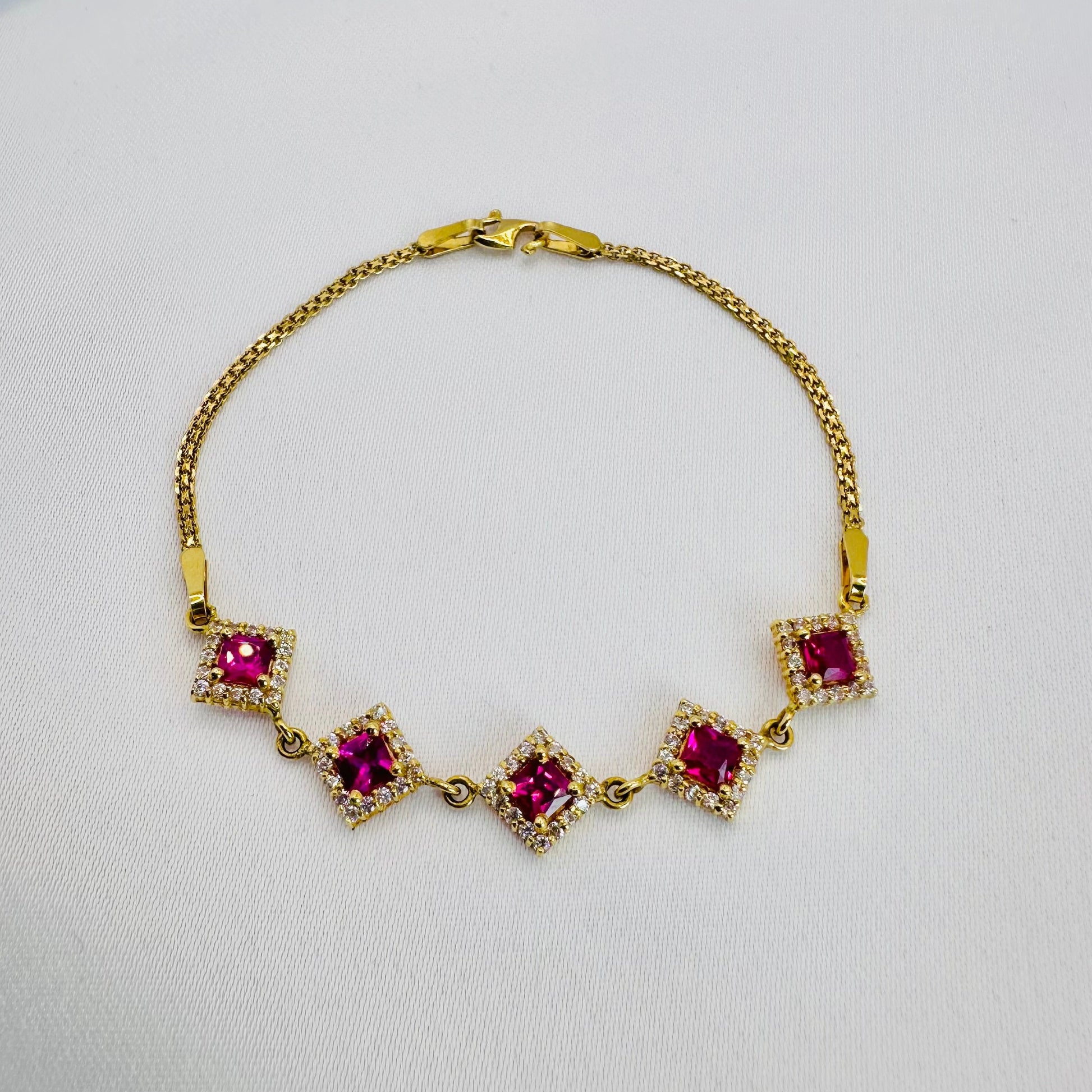 22k solid gold designer bracelet with white and ruby/pink colour CZ charms - 916 hallmark UK.
