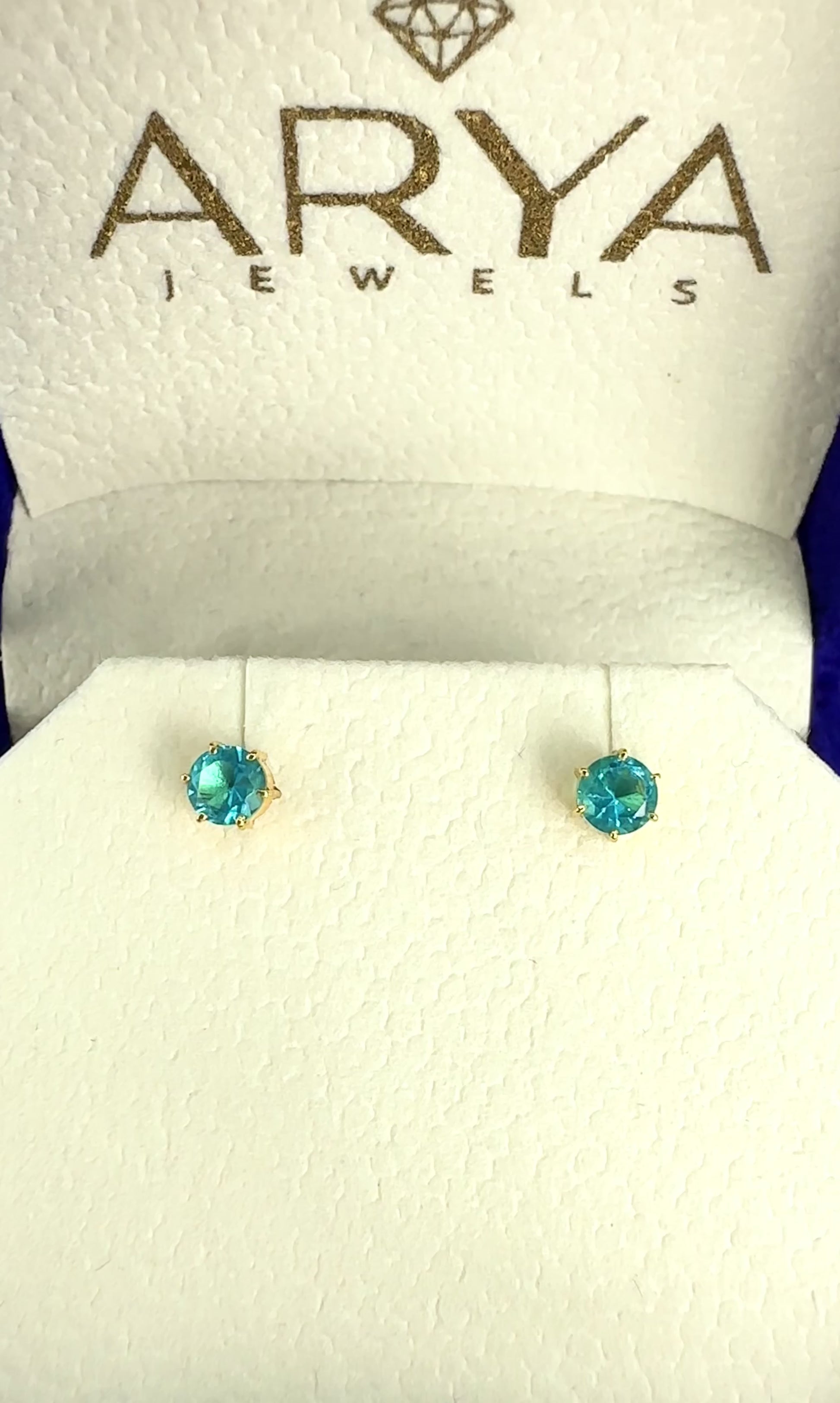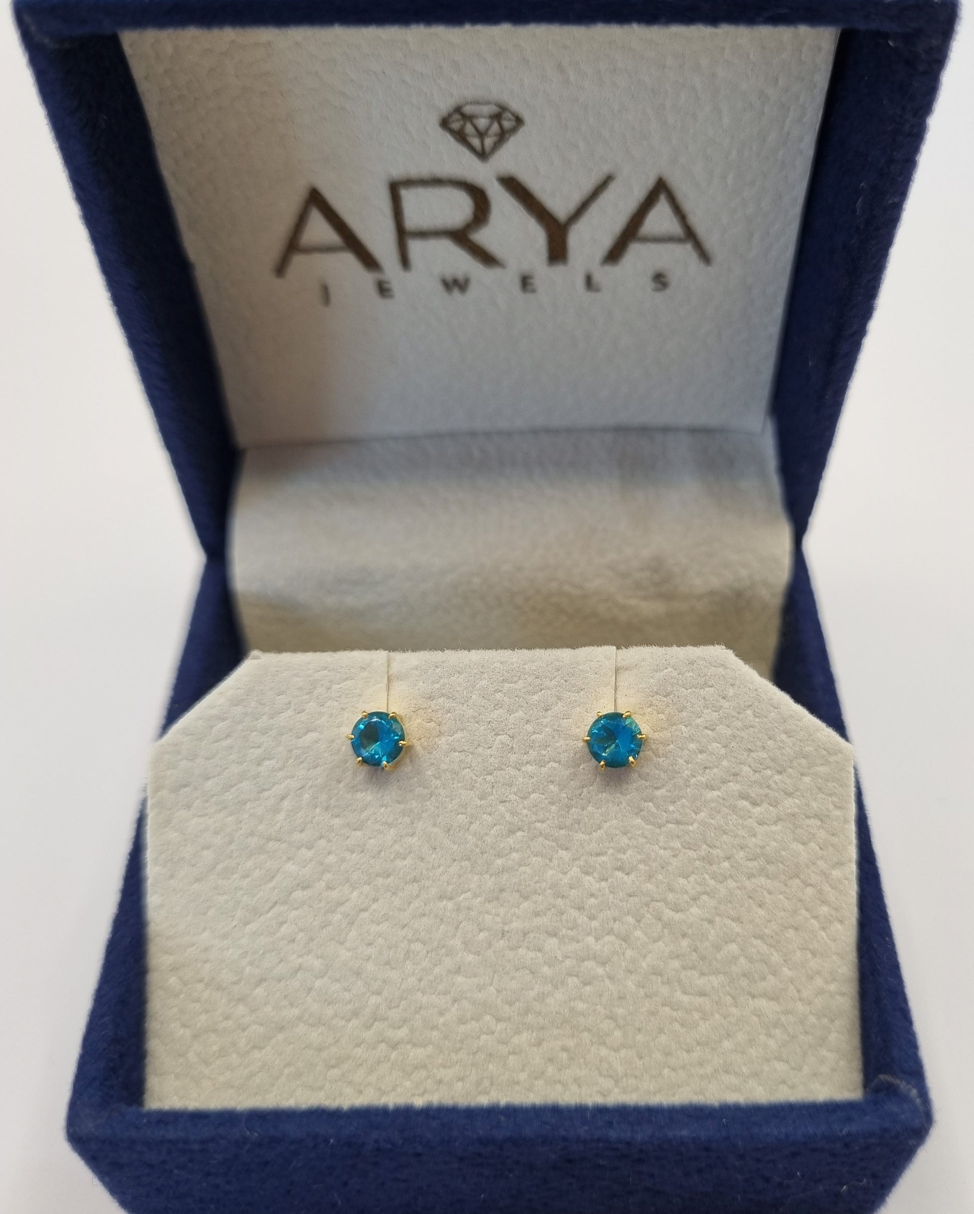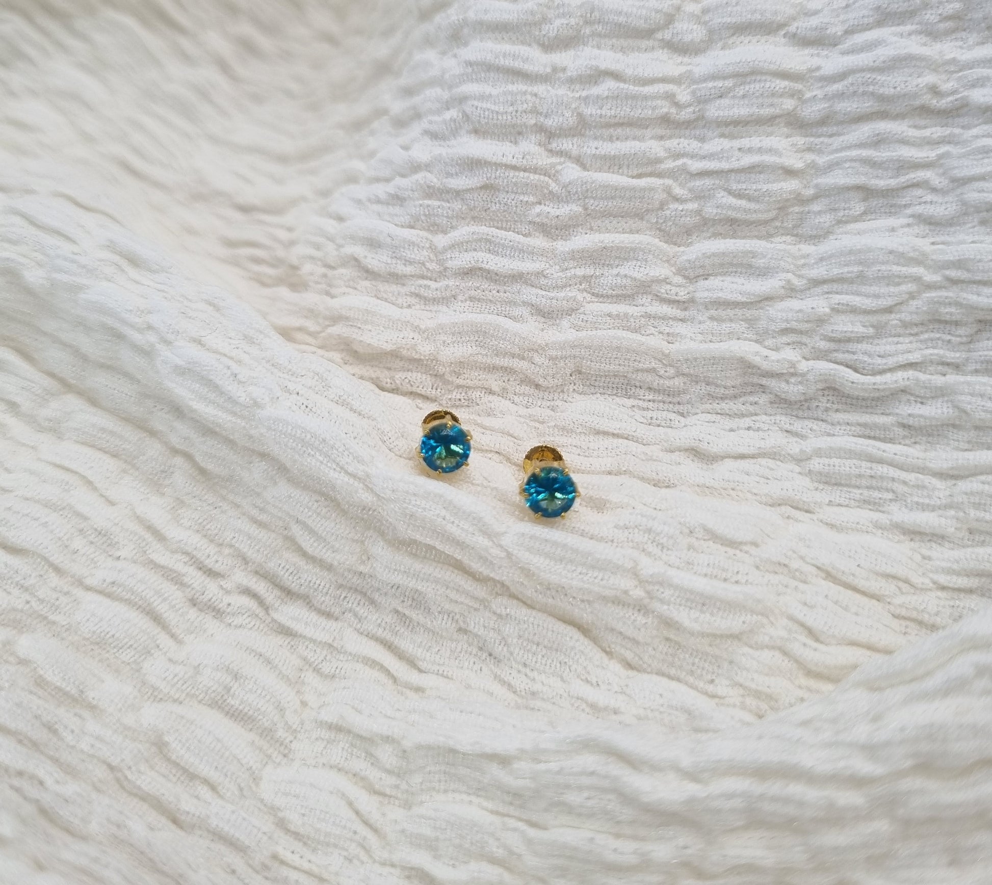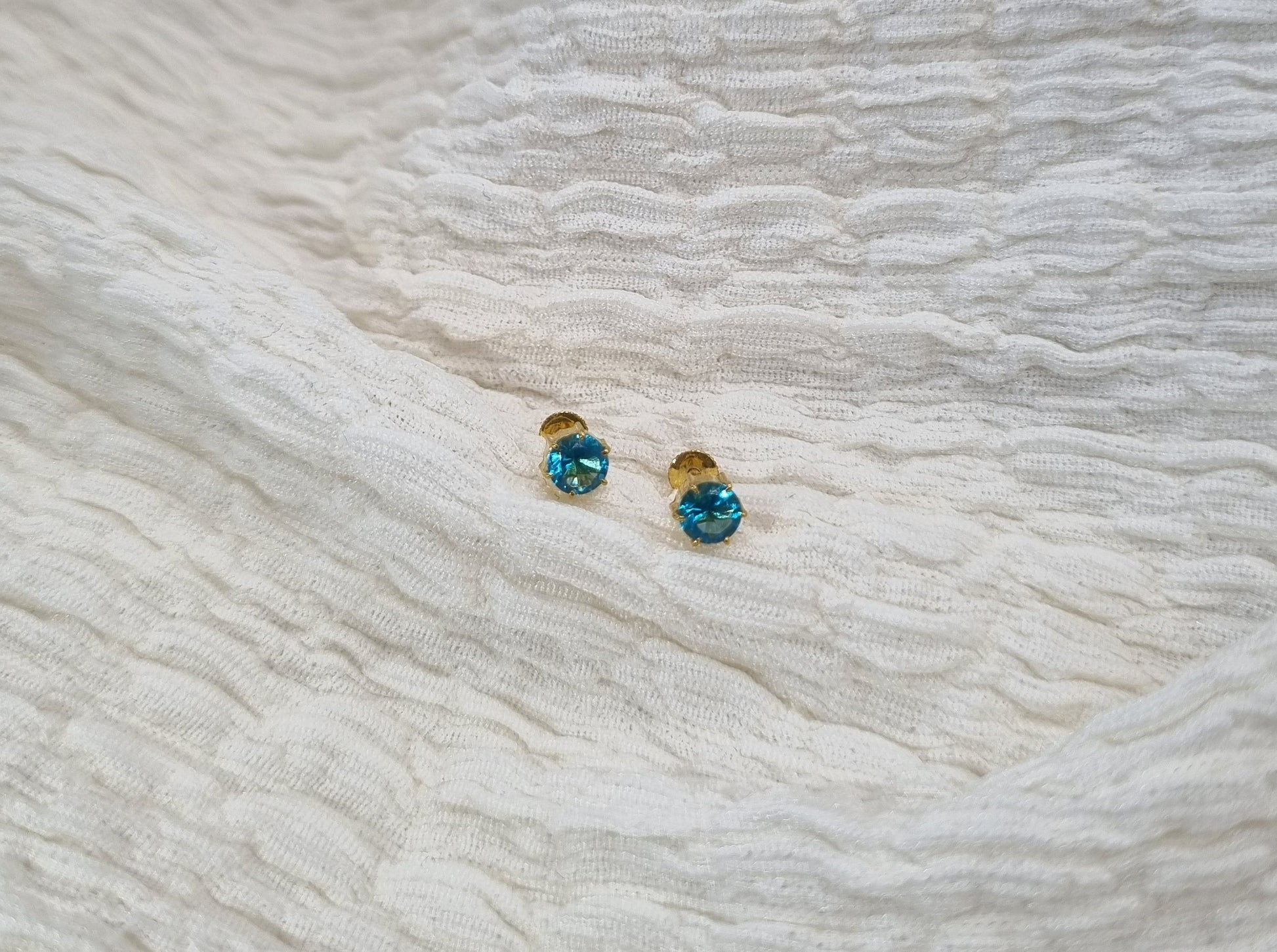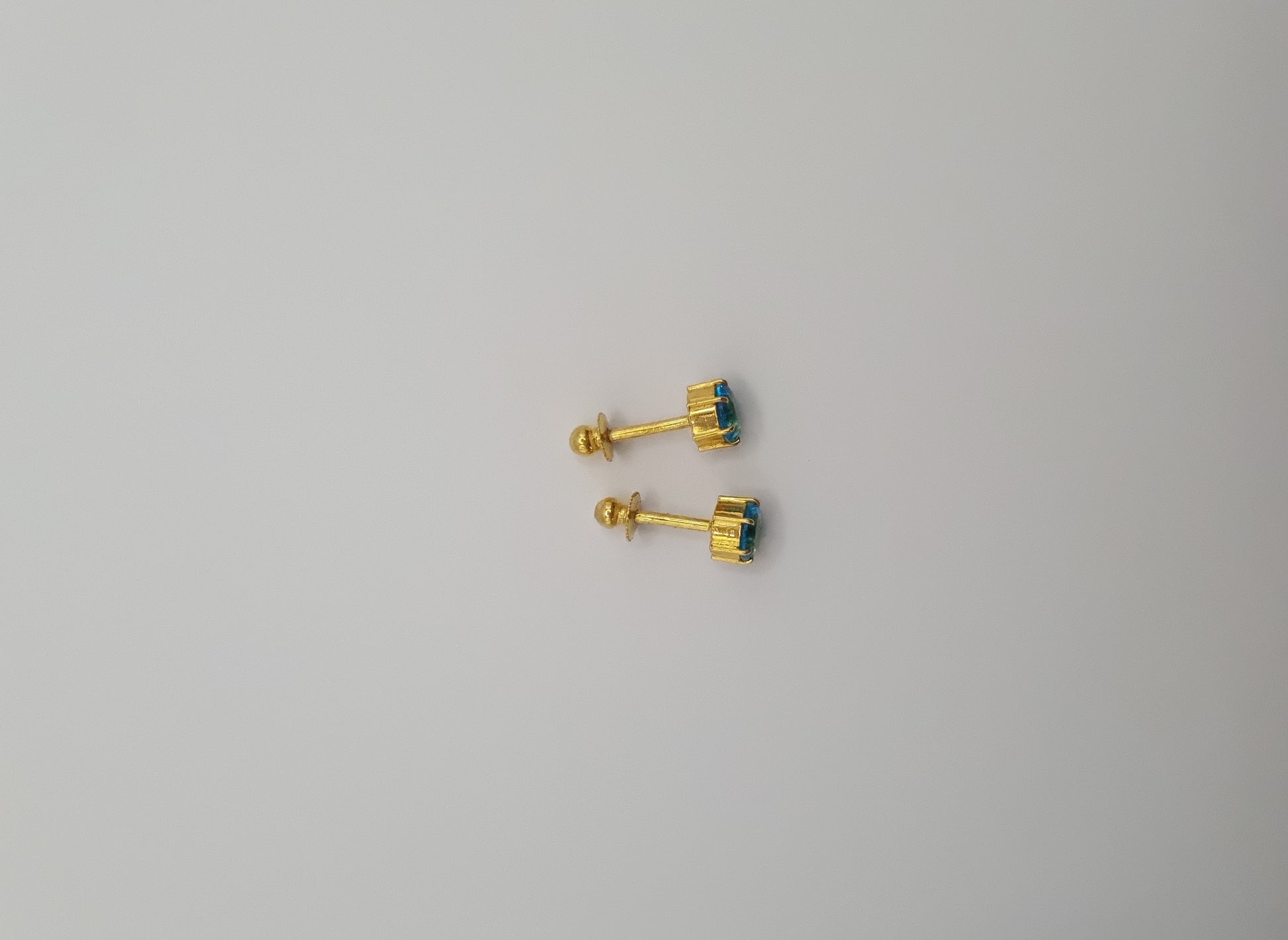 22k solid gold ear studs / karabu earring with Aqua/ light blue Cubic zirconia gemstone.