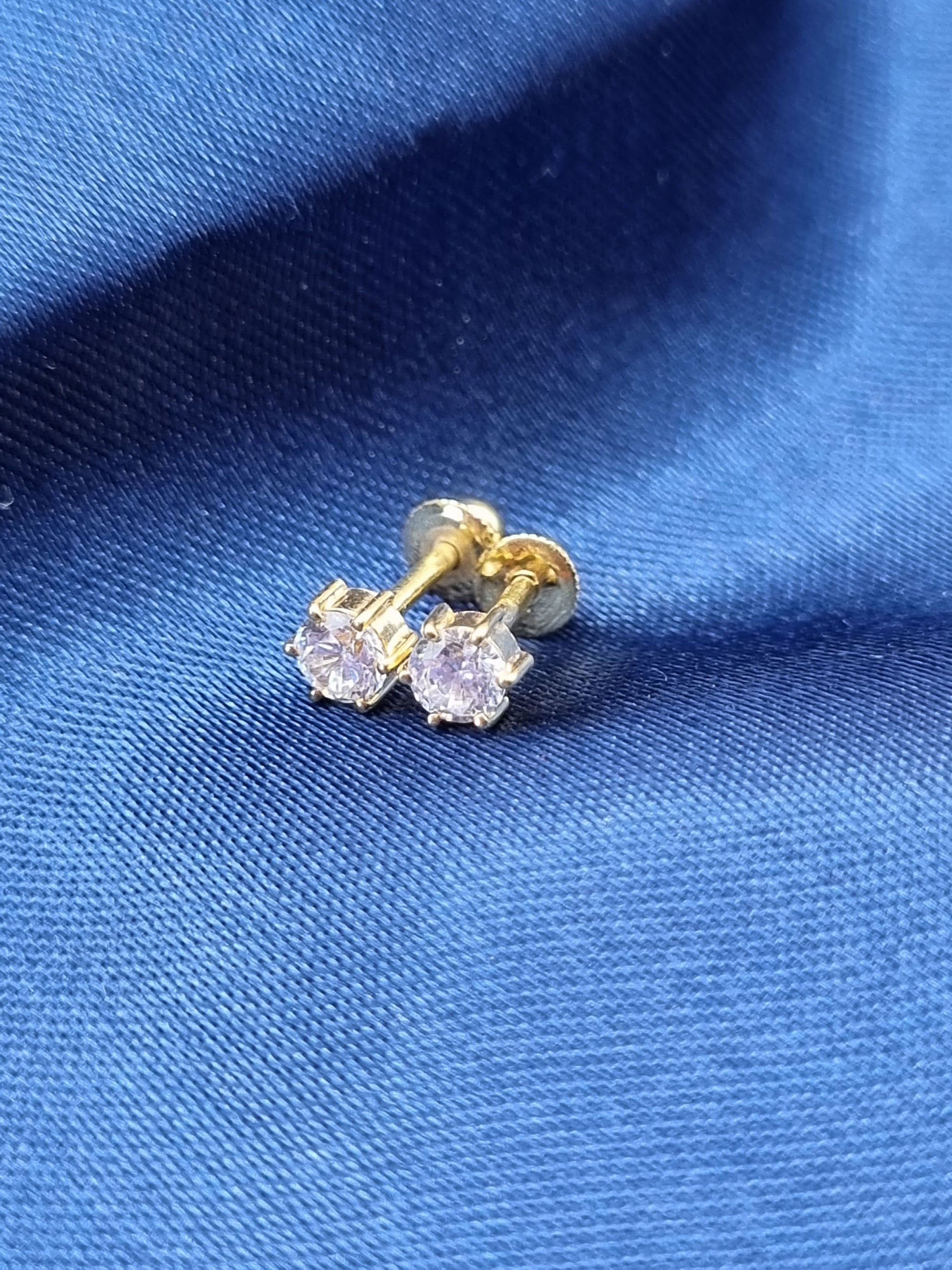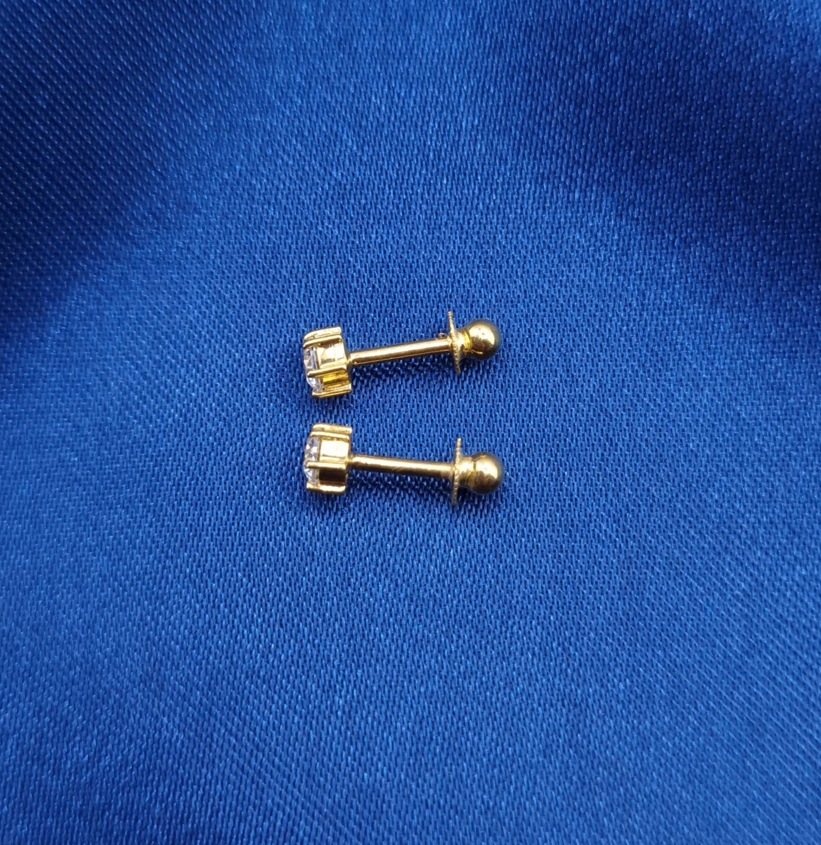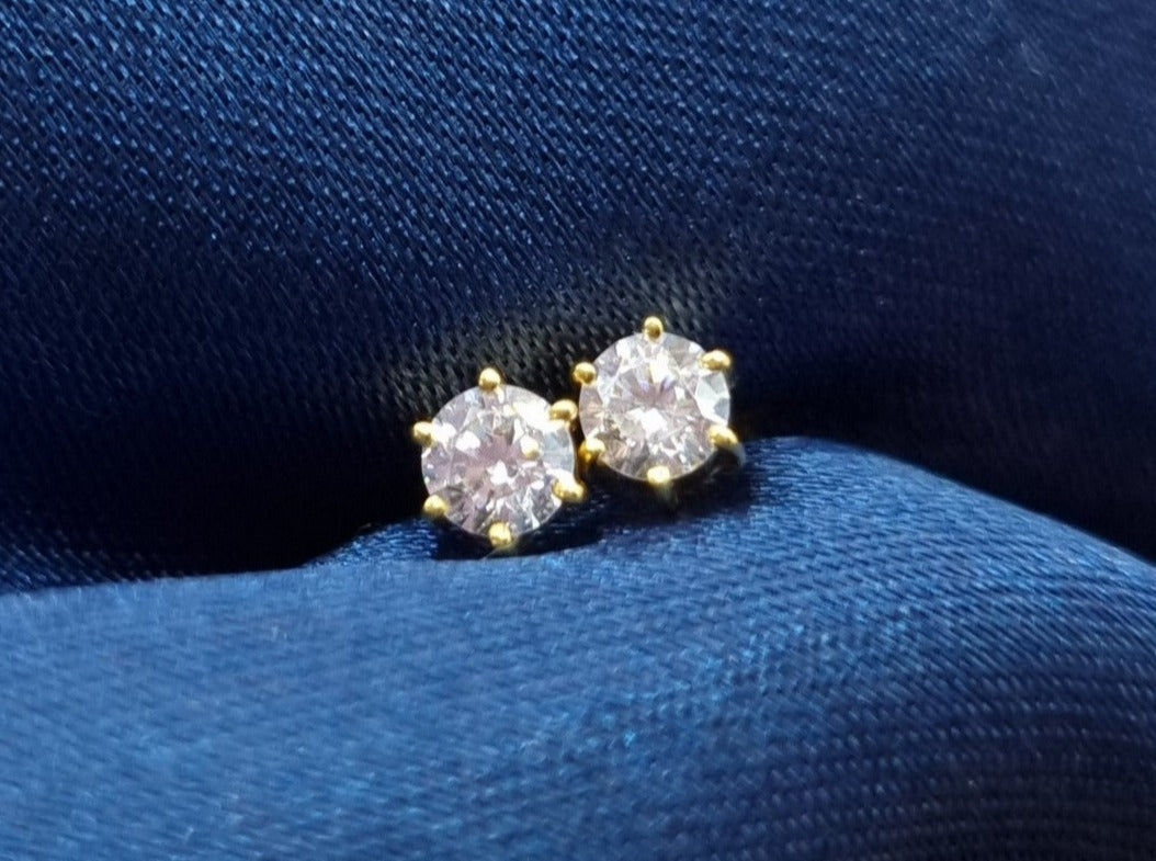22k solid gold ear studs / karabu earring with white Cubic zirconia.