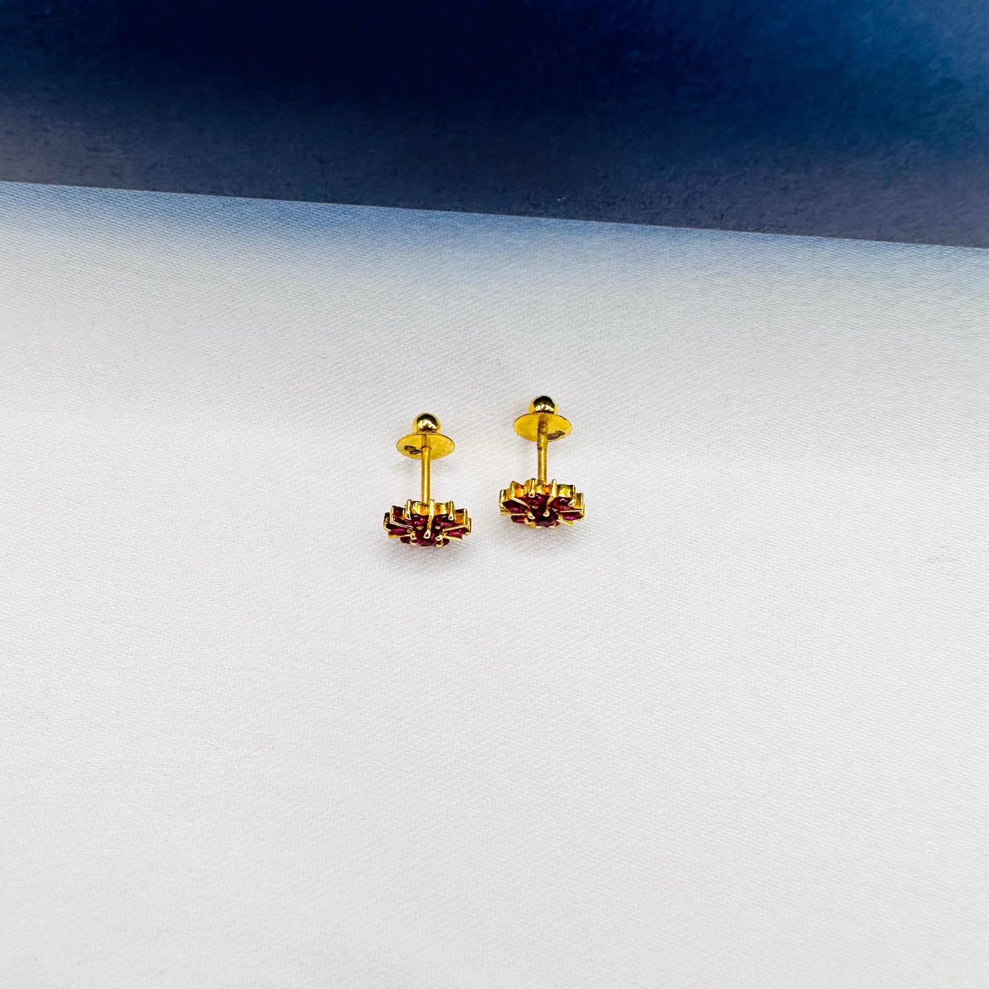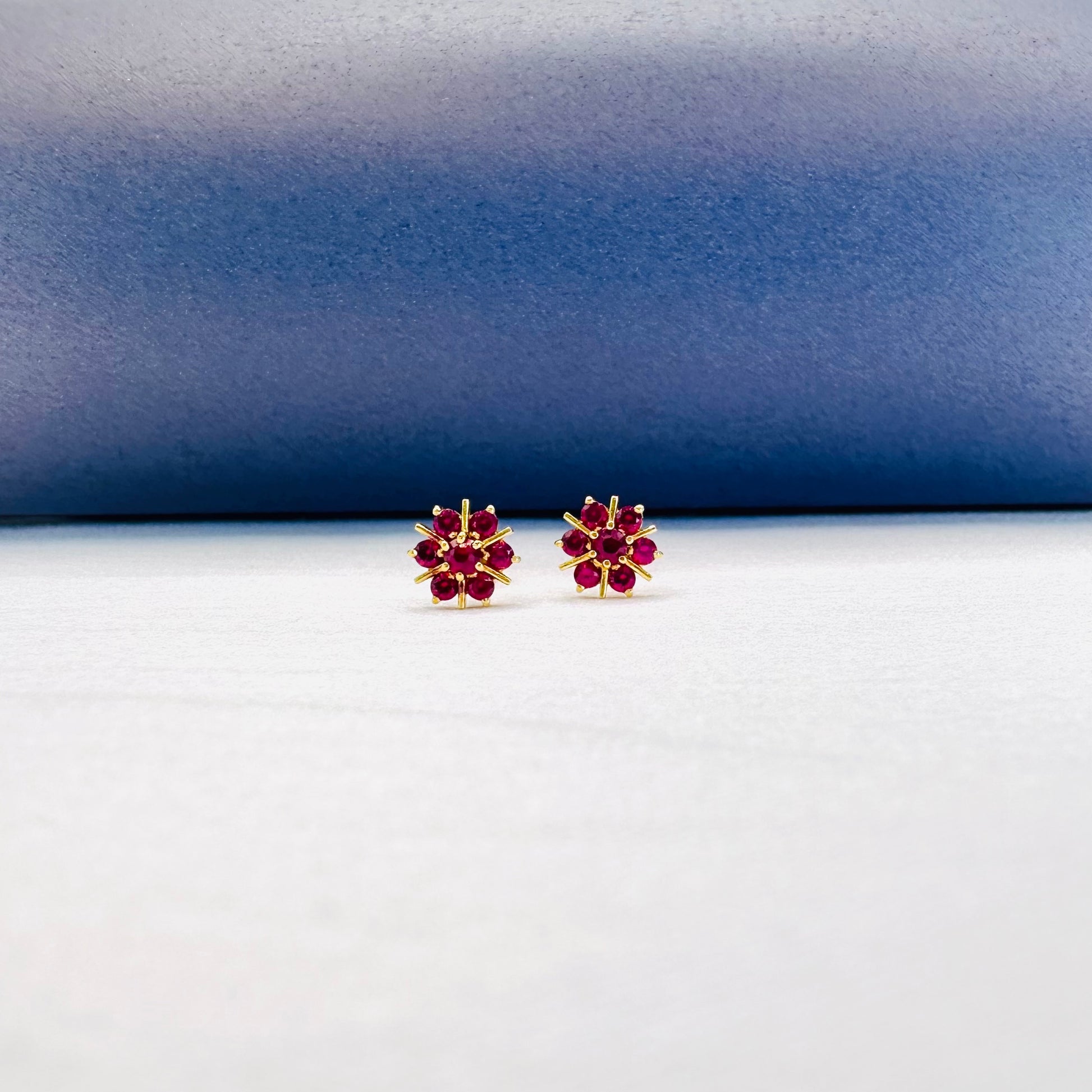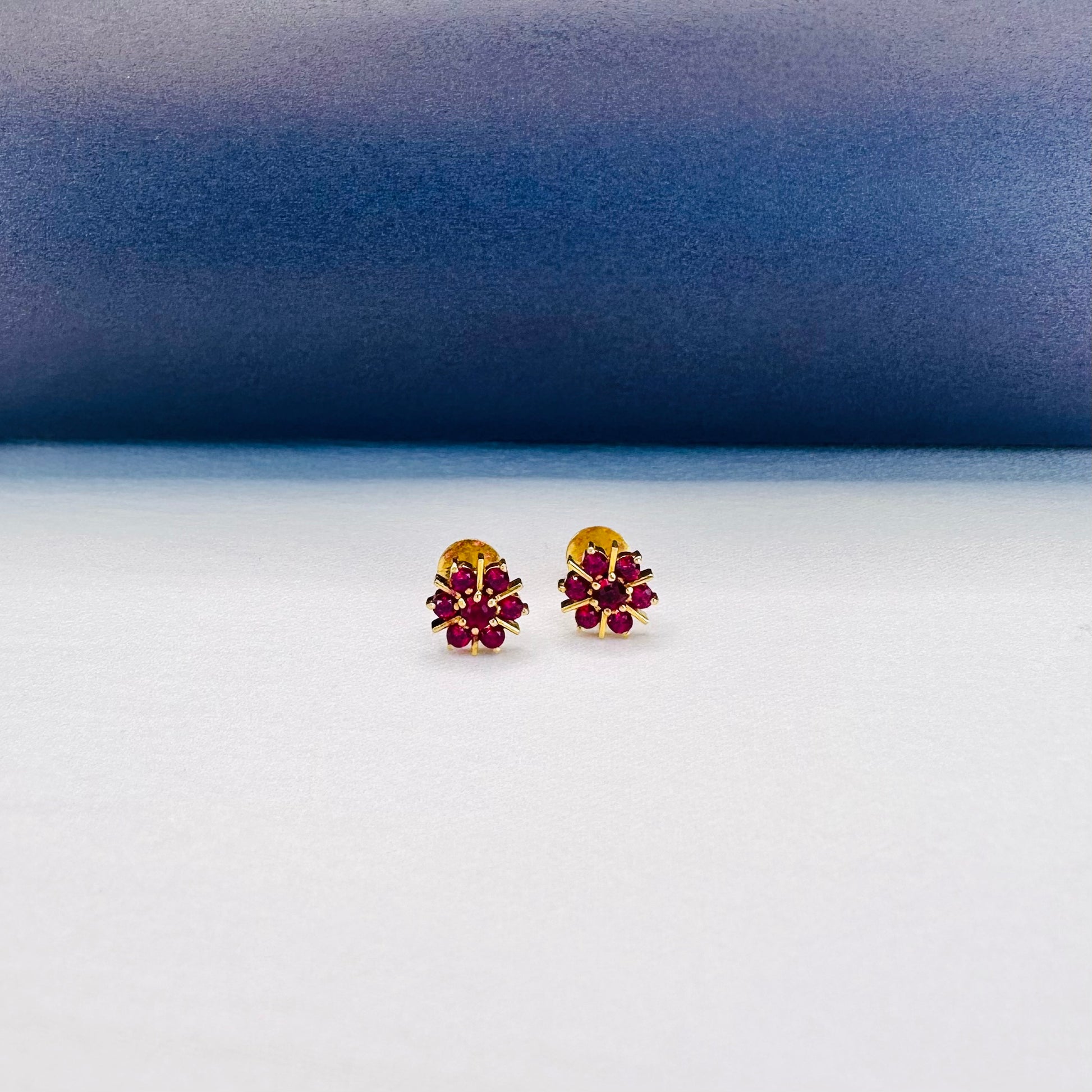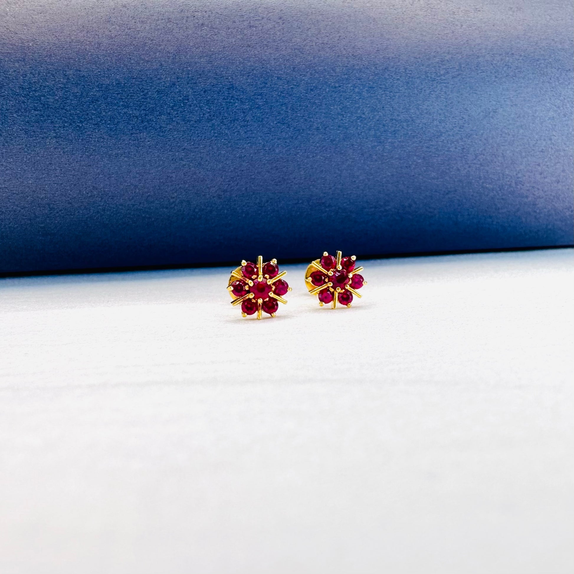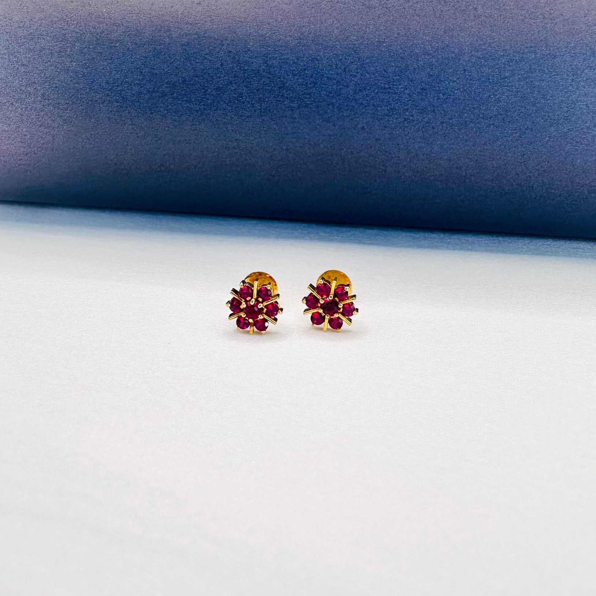 22k solid gold flower earrings with Ruby colour cubic zirconia/ American diamond gemstones - British 916 hallmarked.
