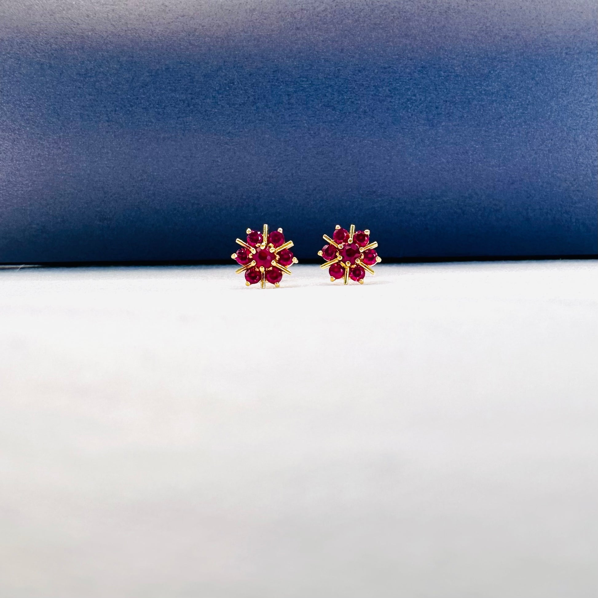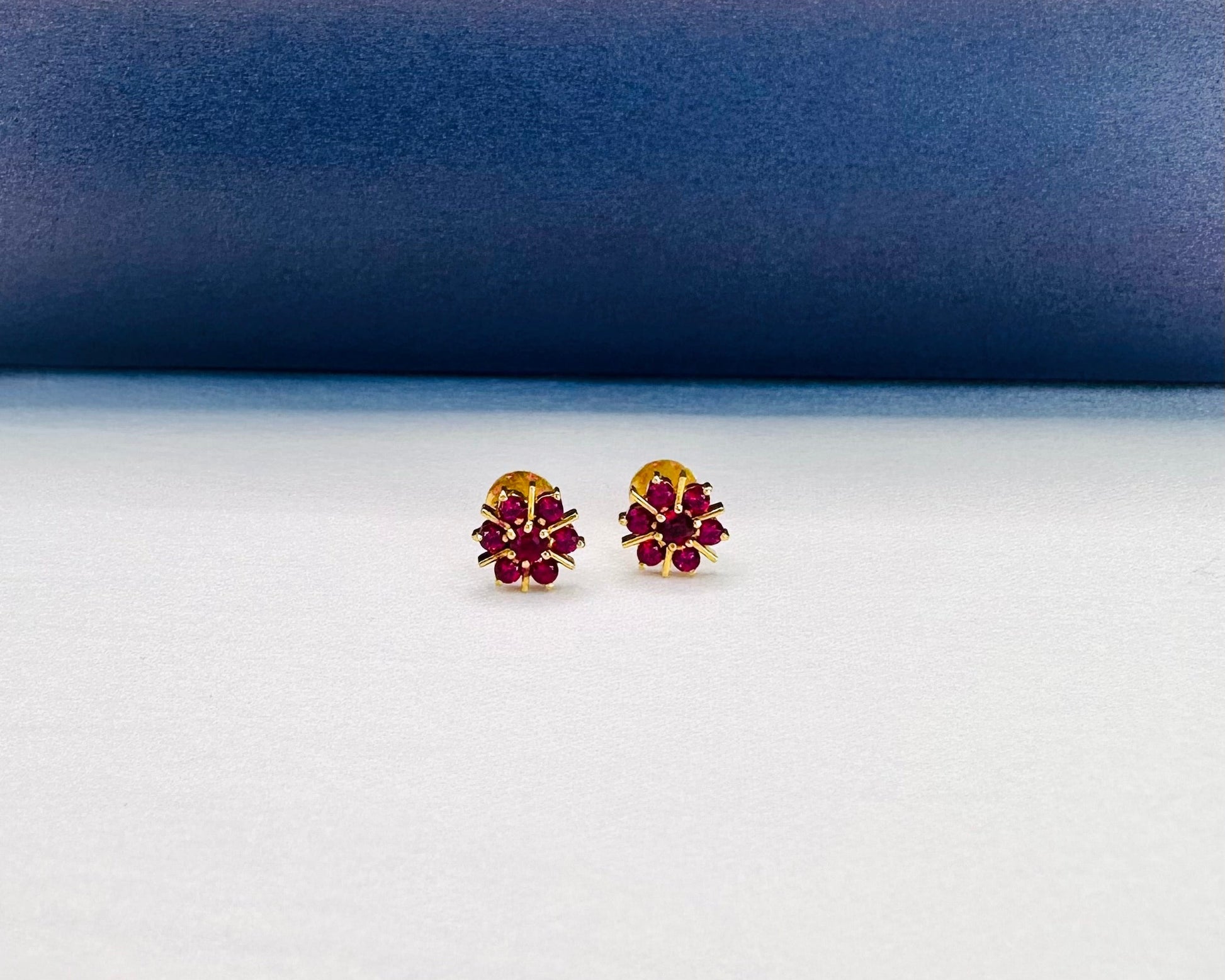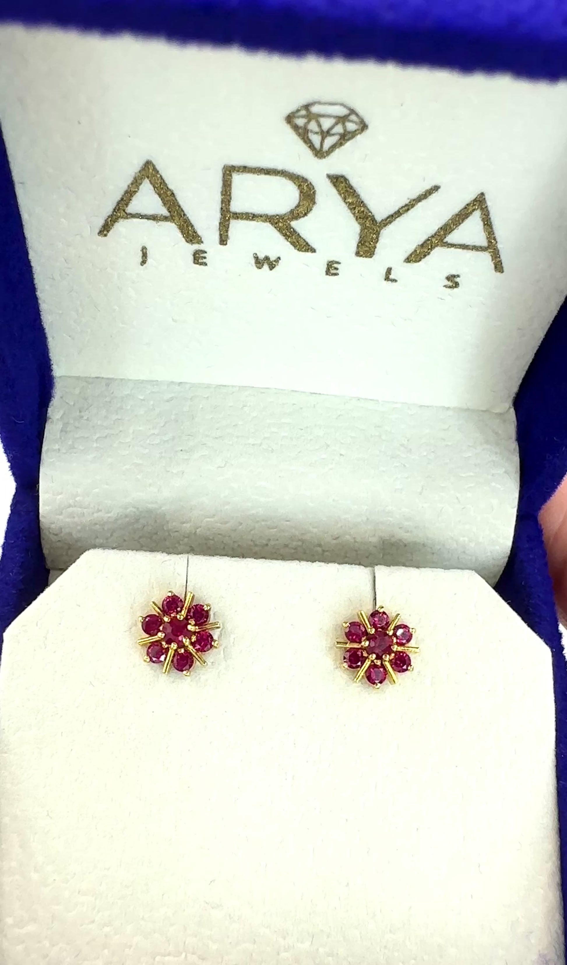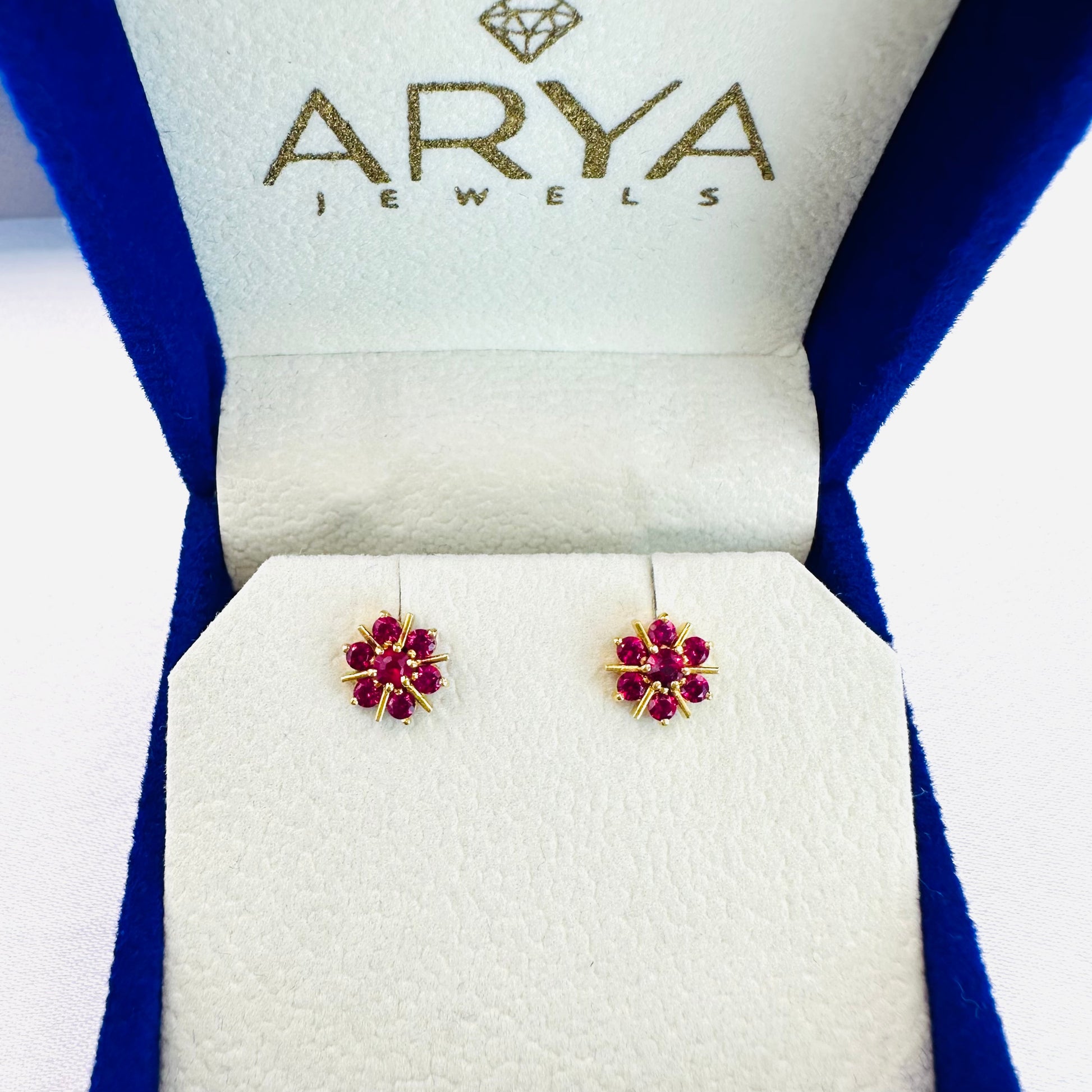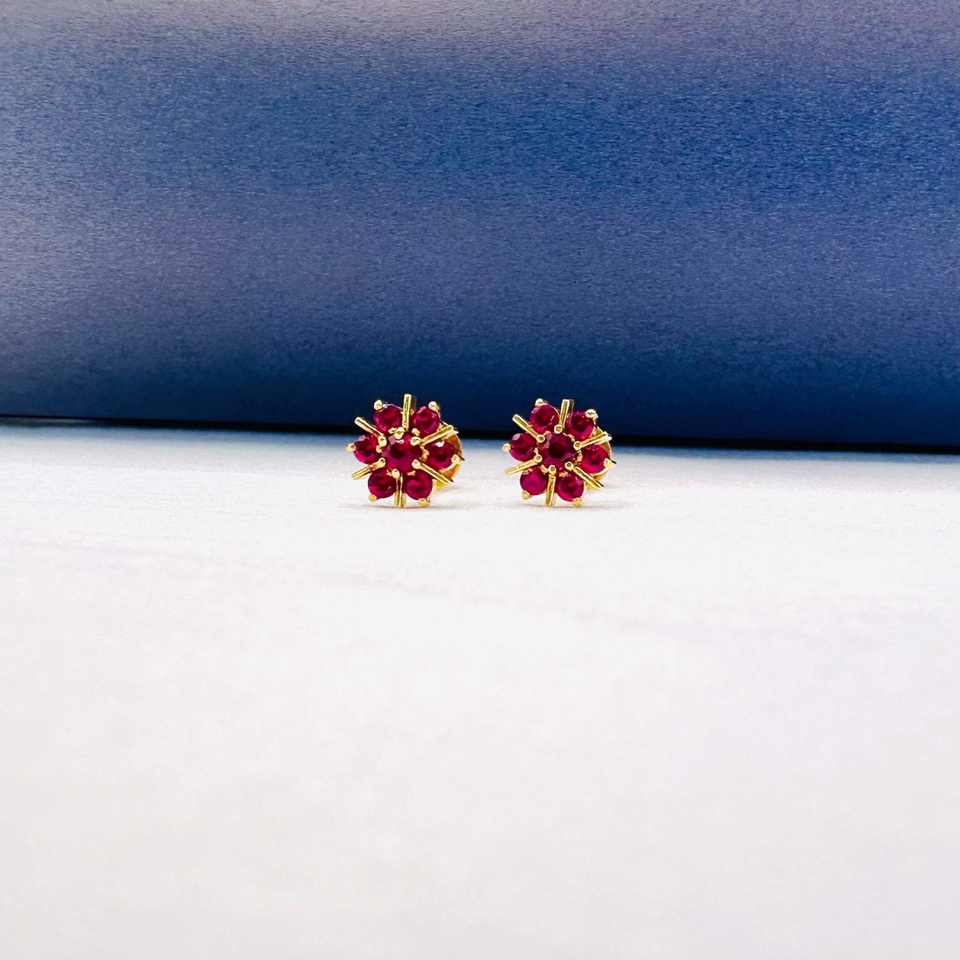 22k solid gold flower earrings with Ruby colour cubic zirconia/ American diamond gemstones - British 916 hallmarked.