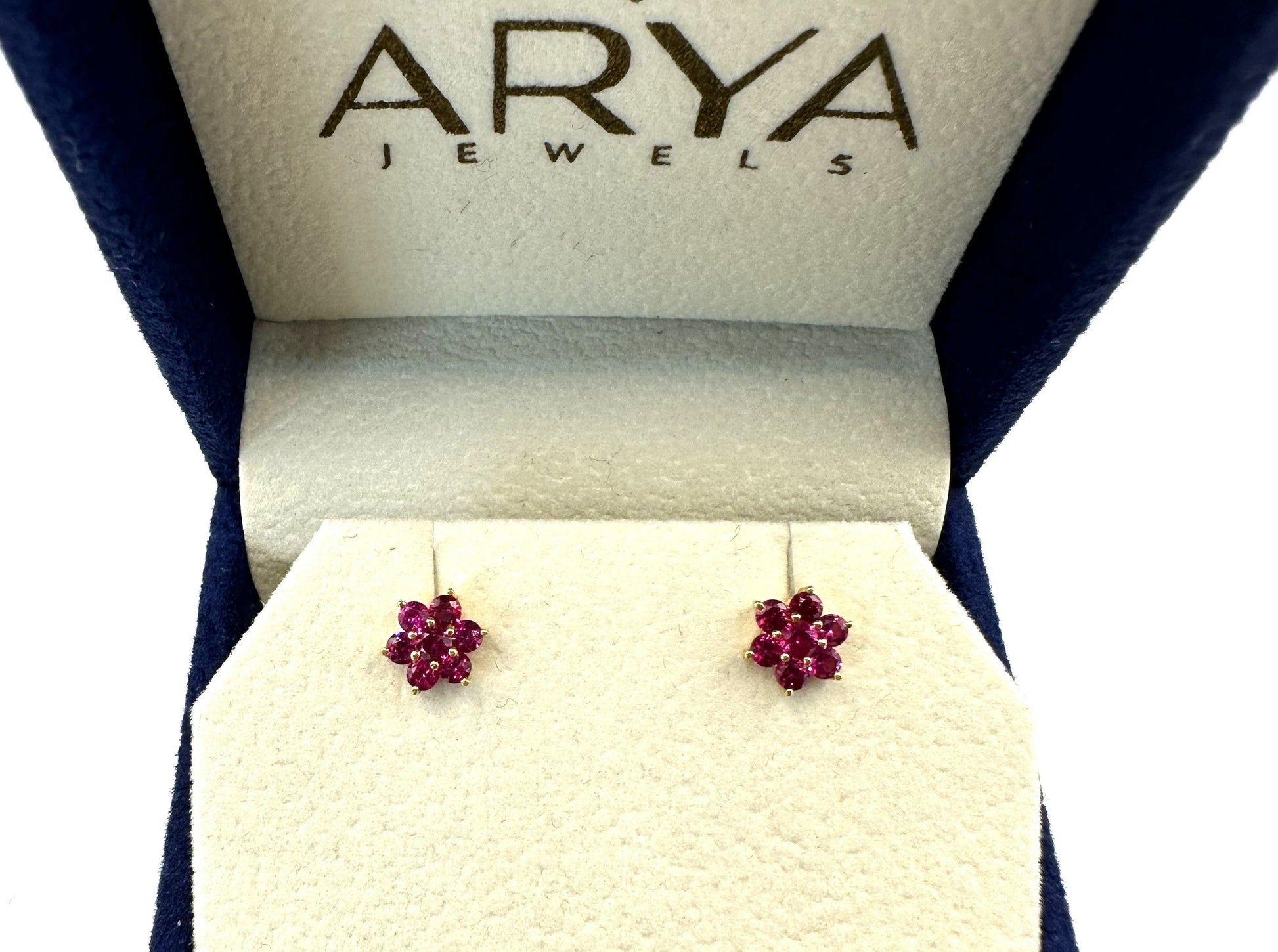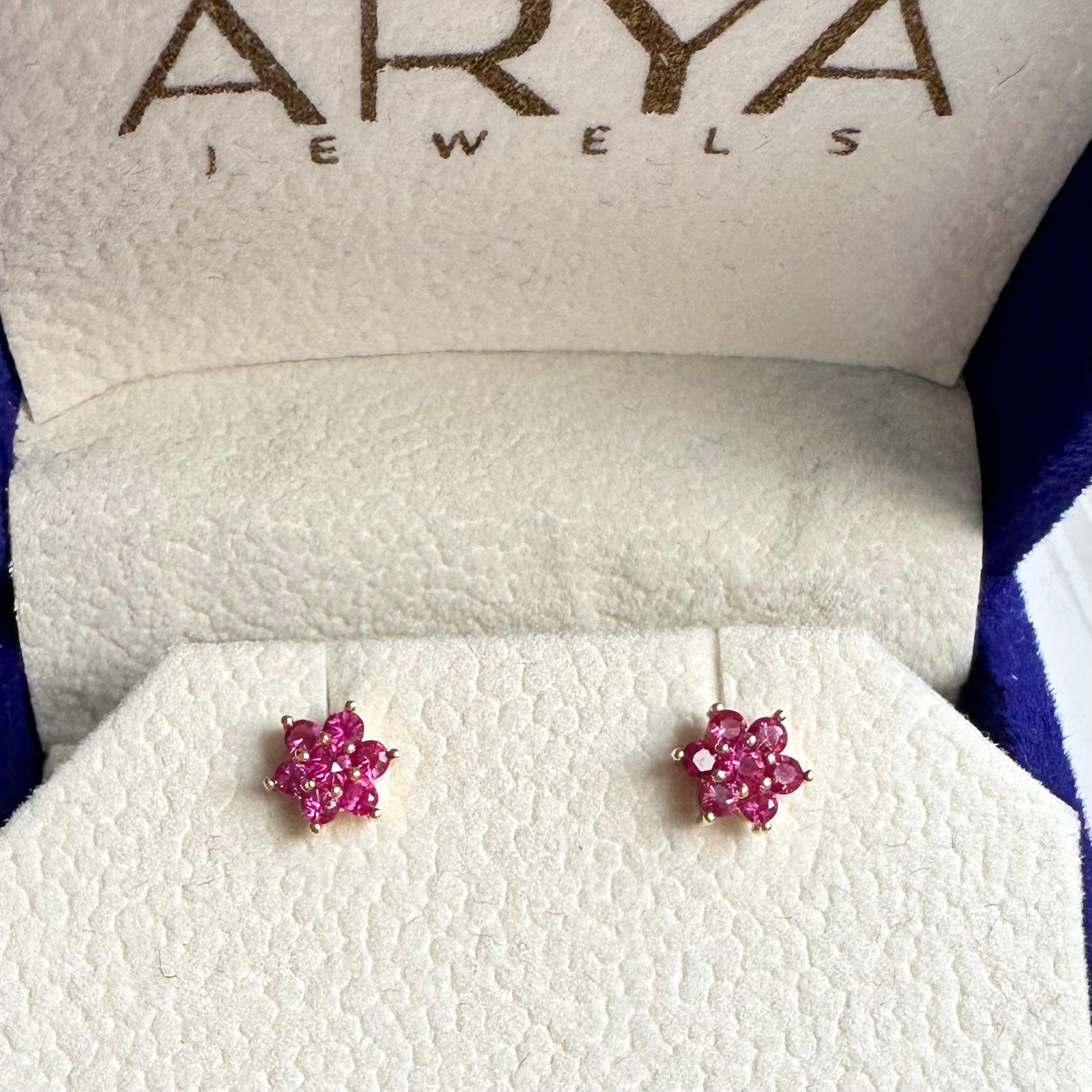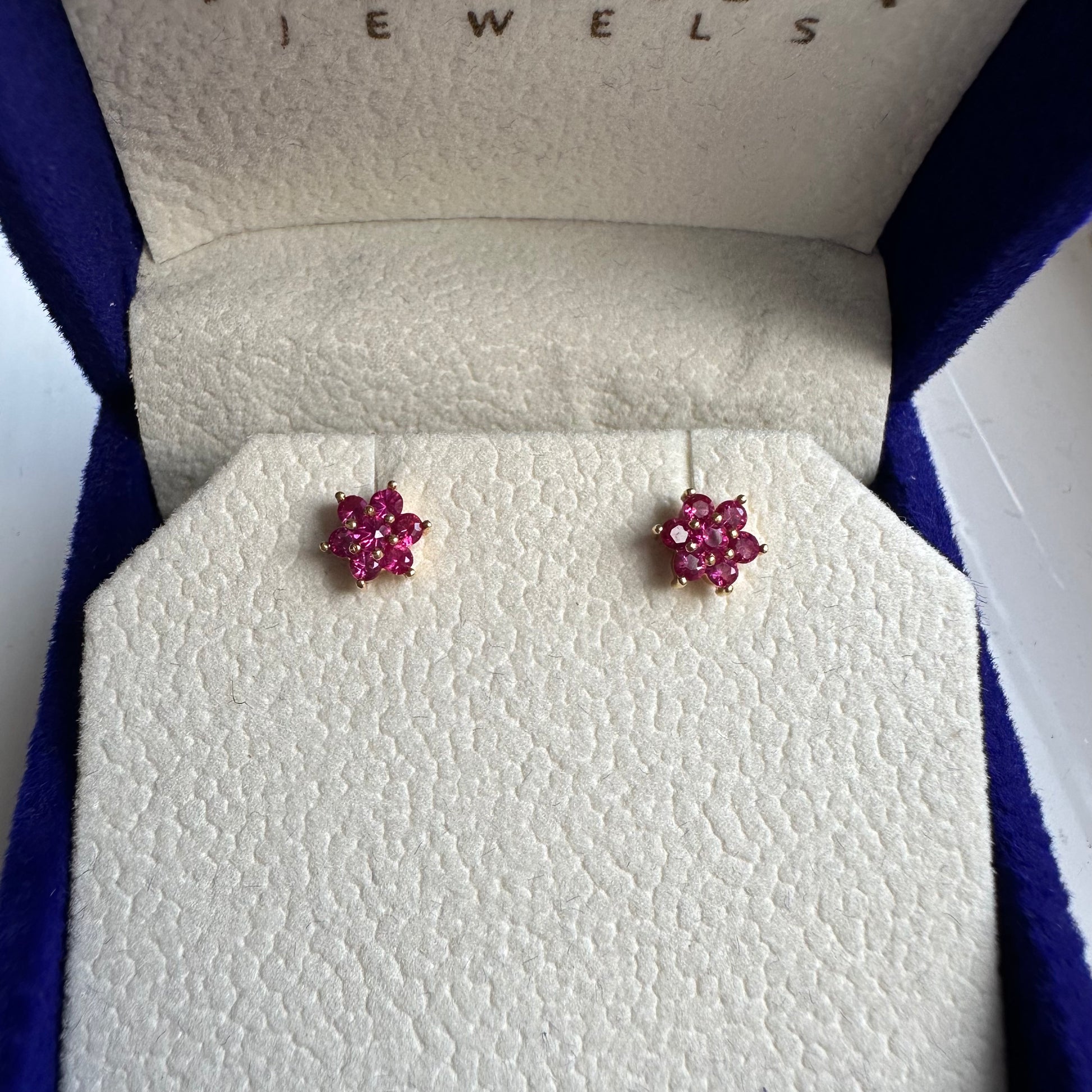 22k solid gold flower ear studs , Ruby colour cubic zirconia- perfect gift for kids and adults - British 916 hallmark.