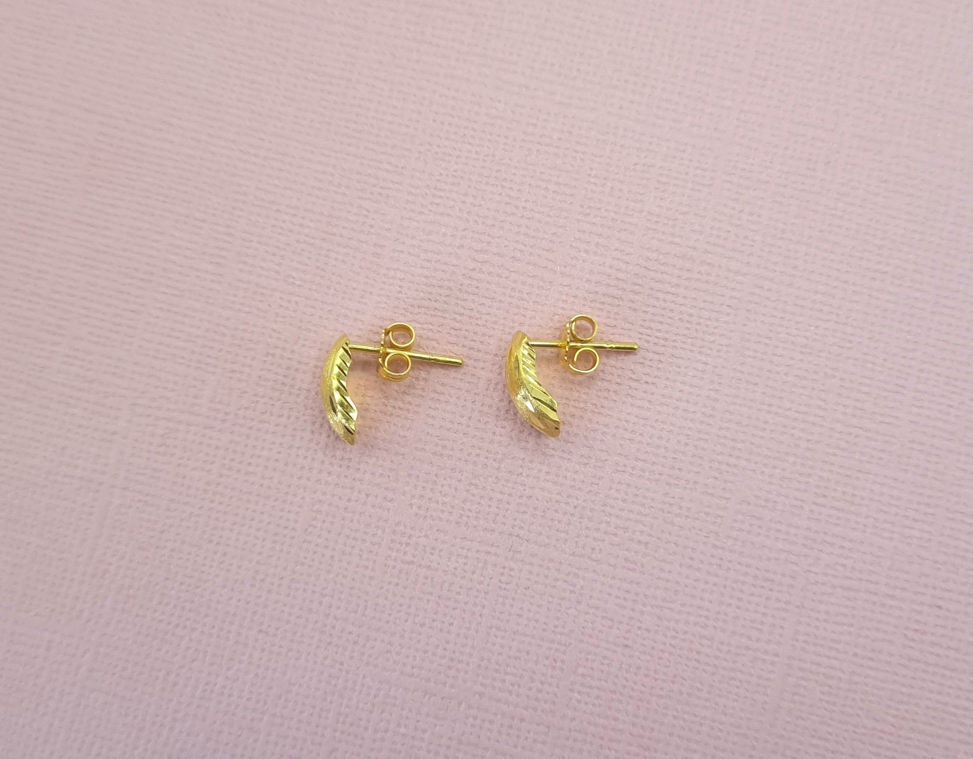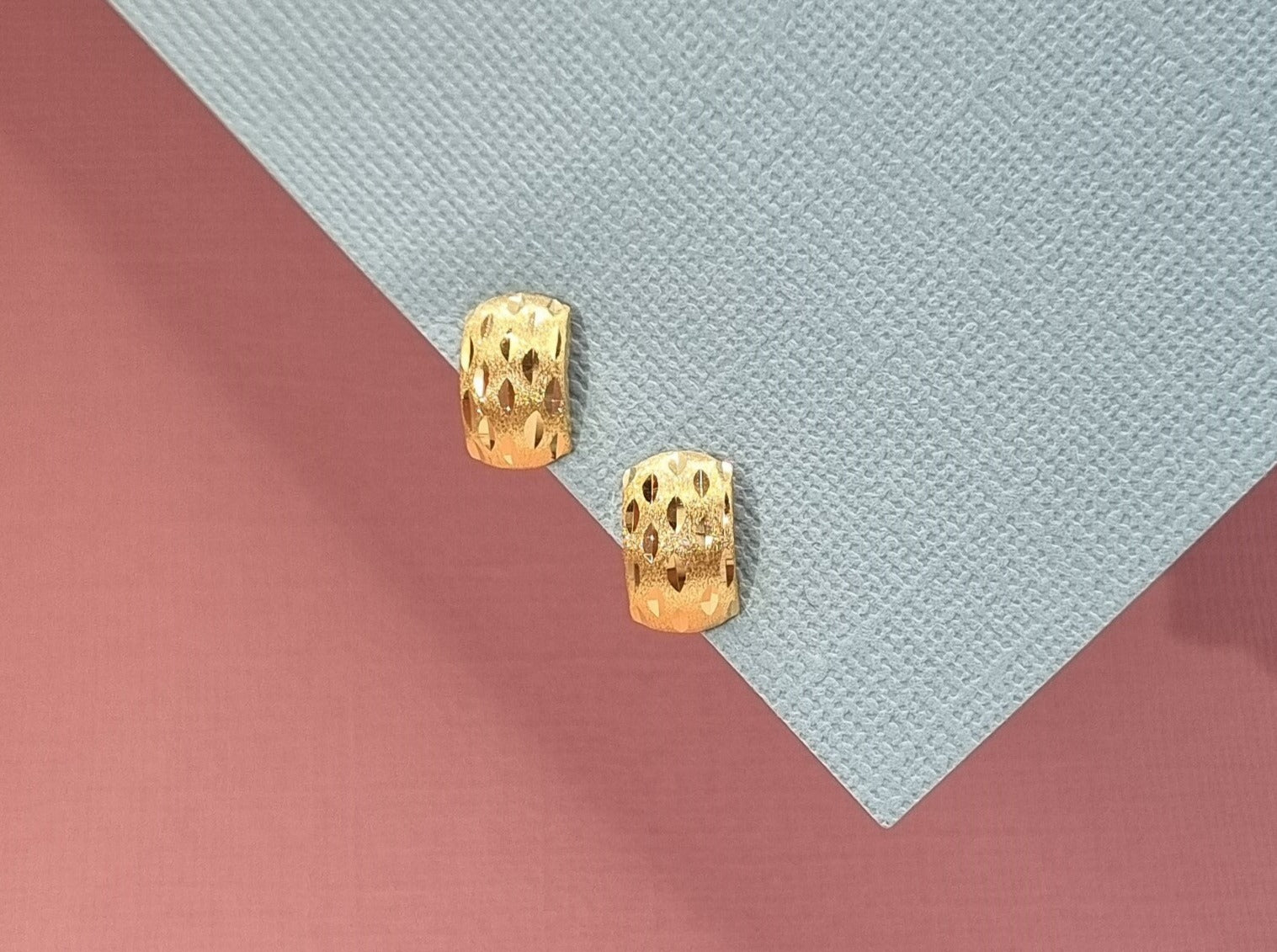 This is a high shine/reflective 22k solid gold half hoop huggie earring.