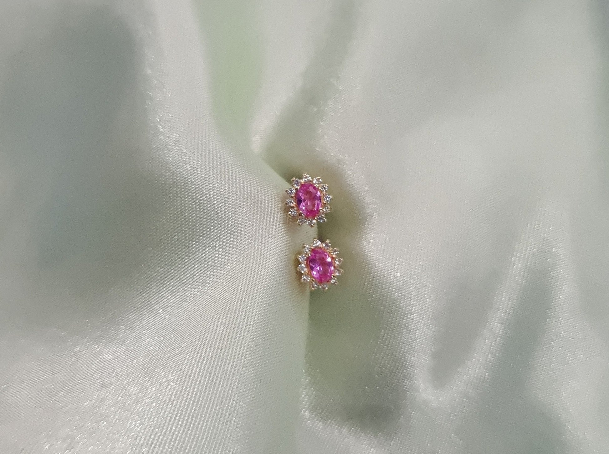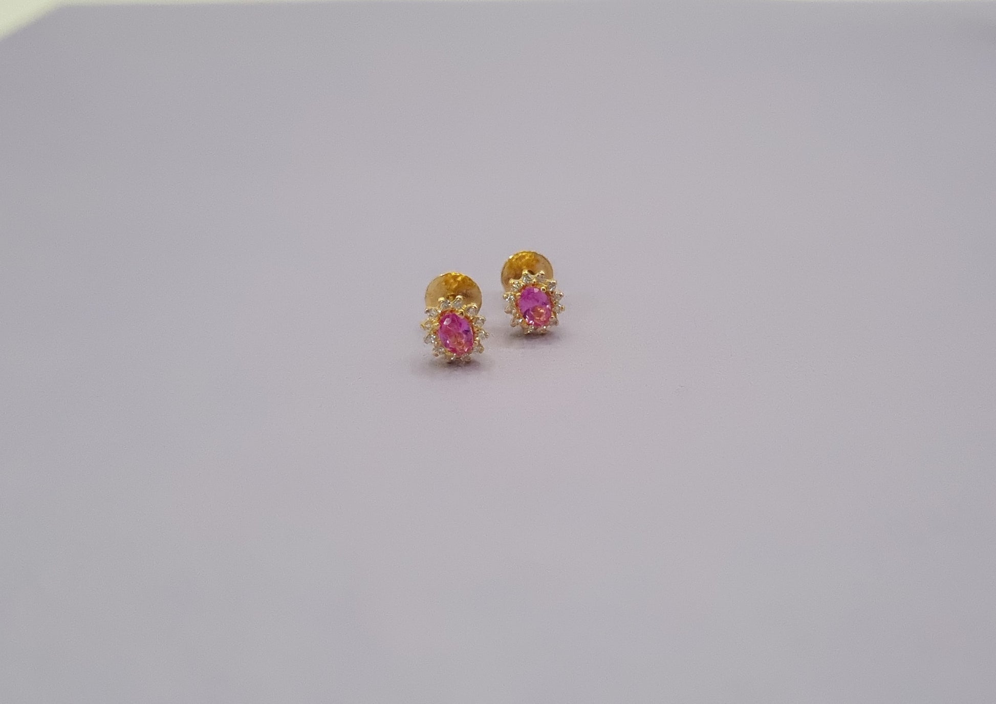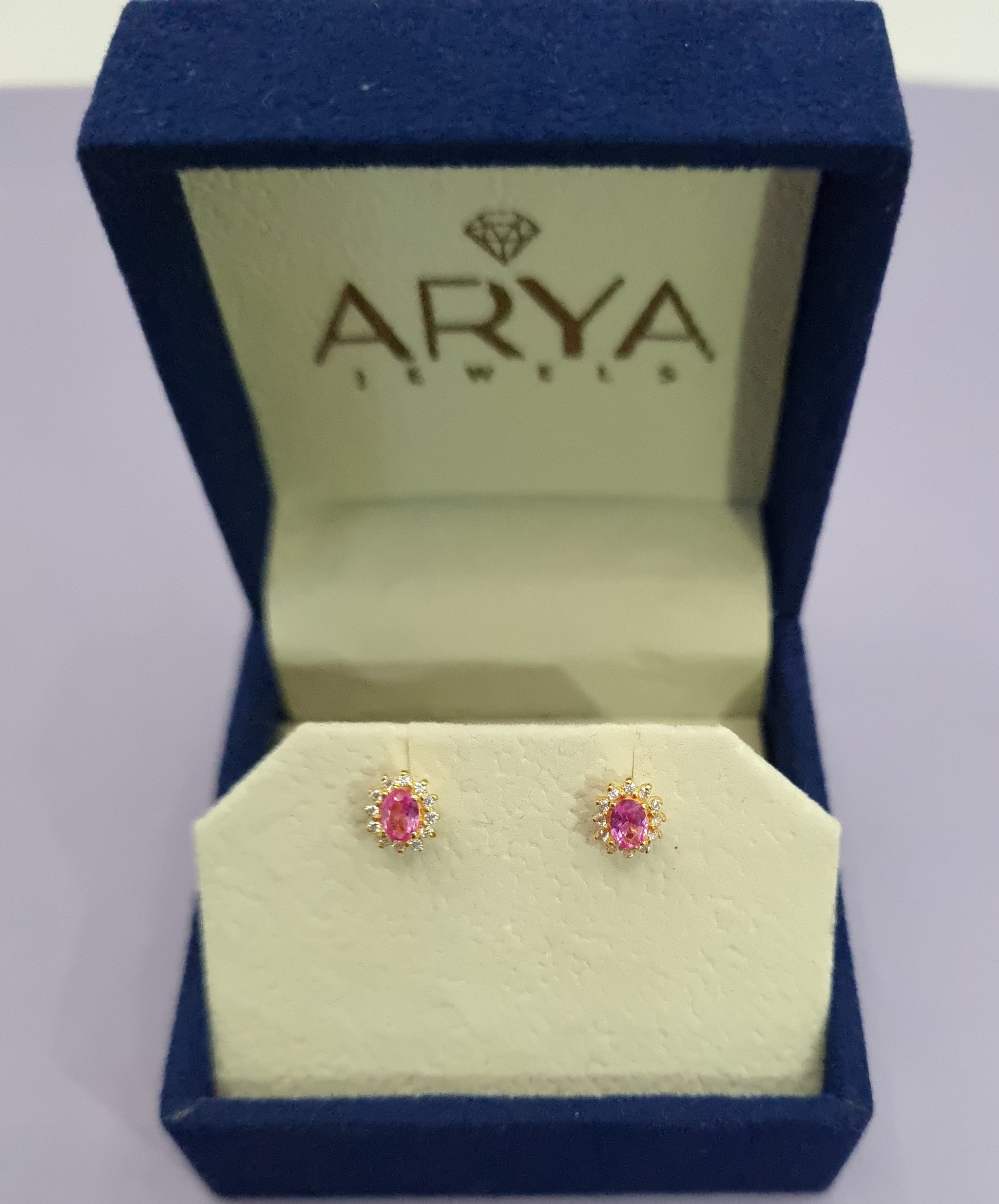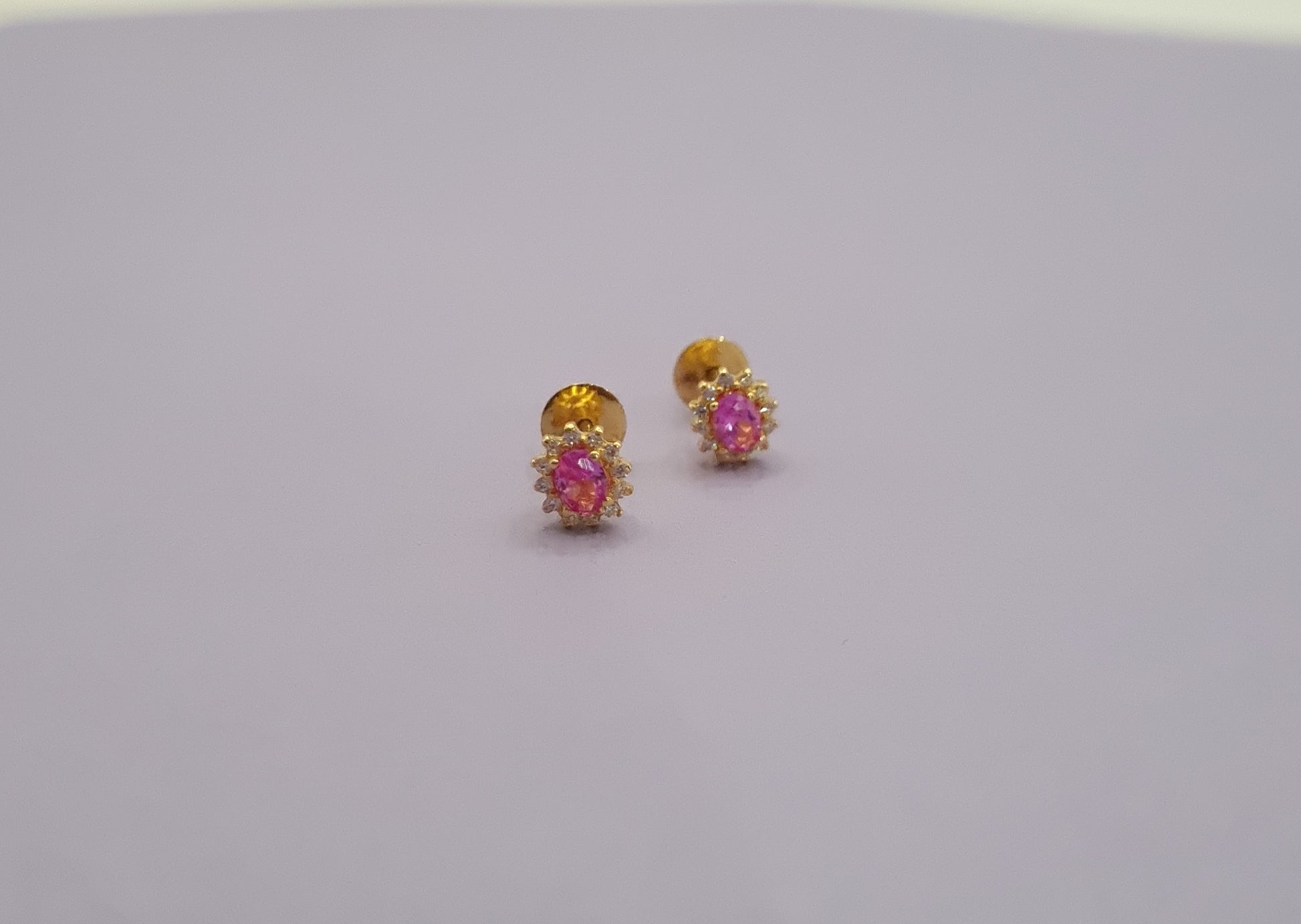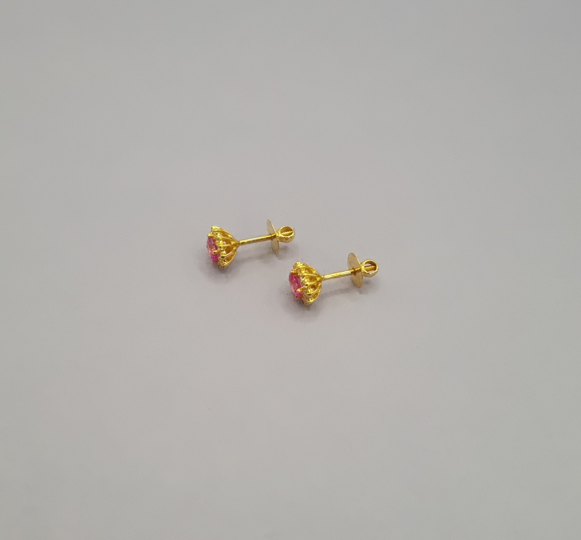 22k solid gold pink and white CZ gemstones earrings /flower earrings / 22ct gold earrings