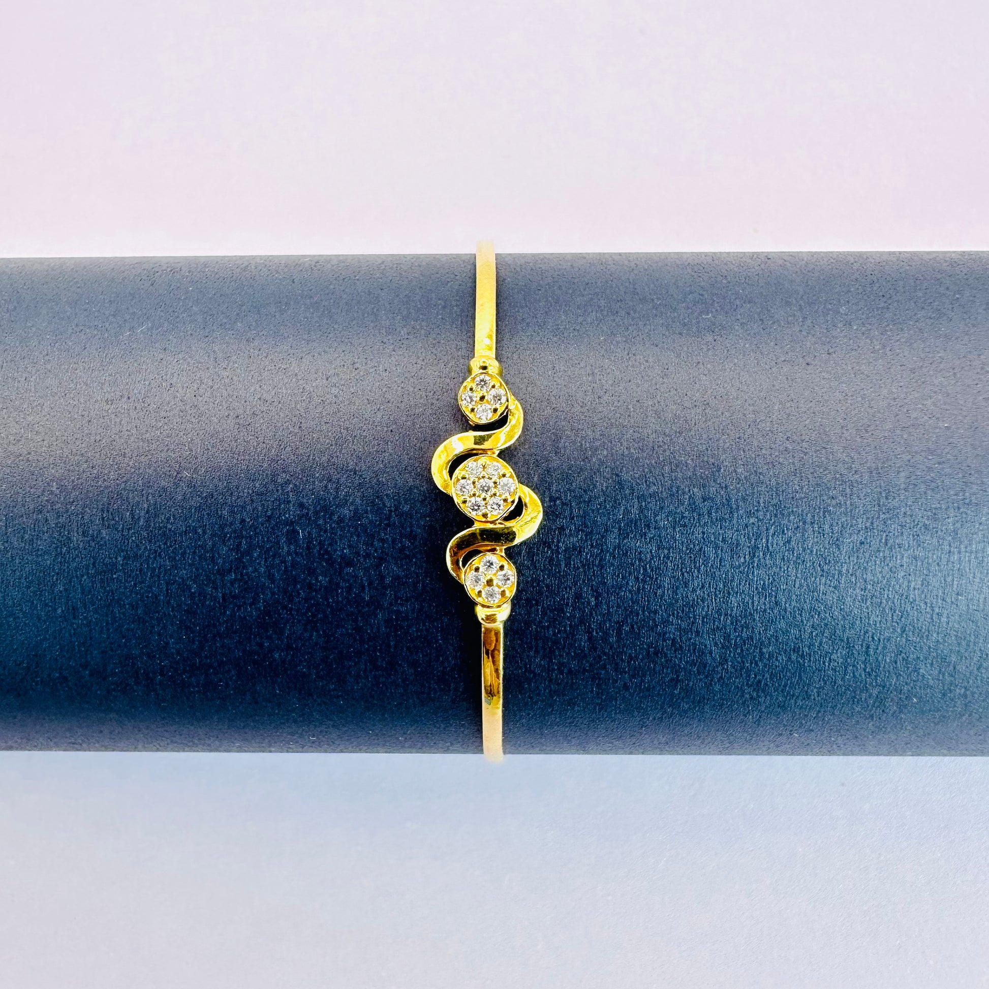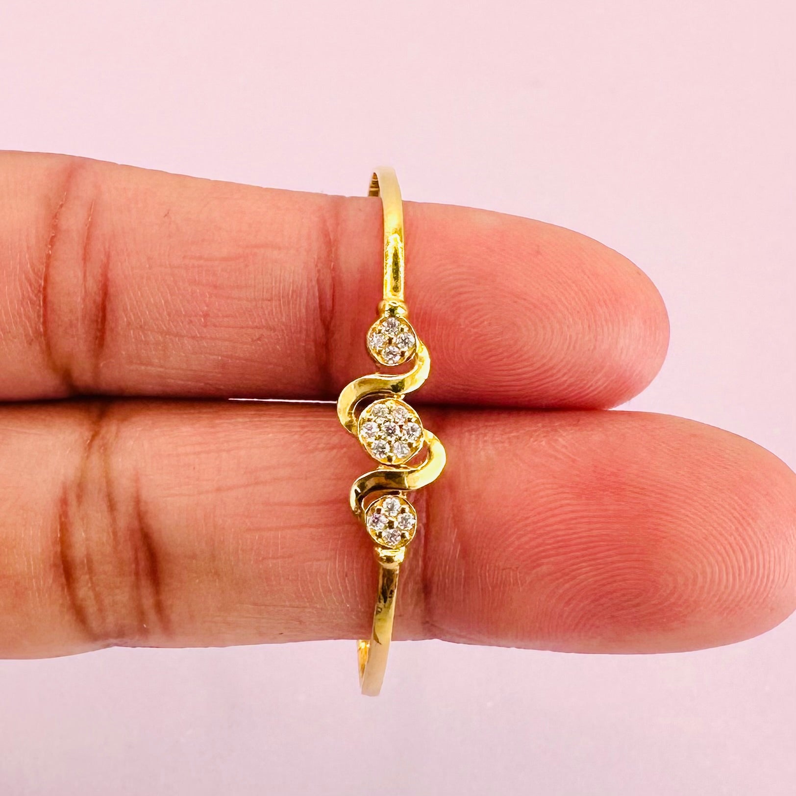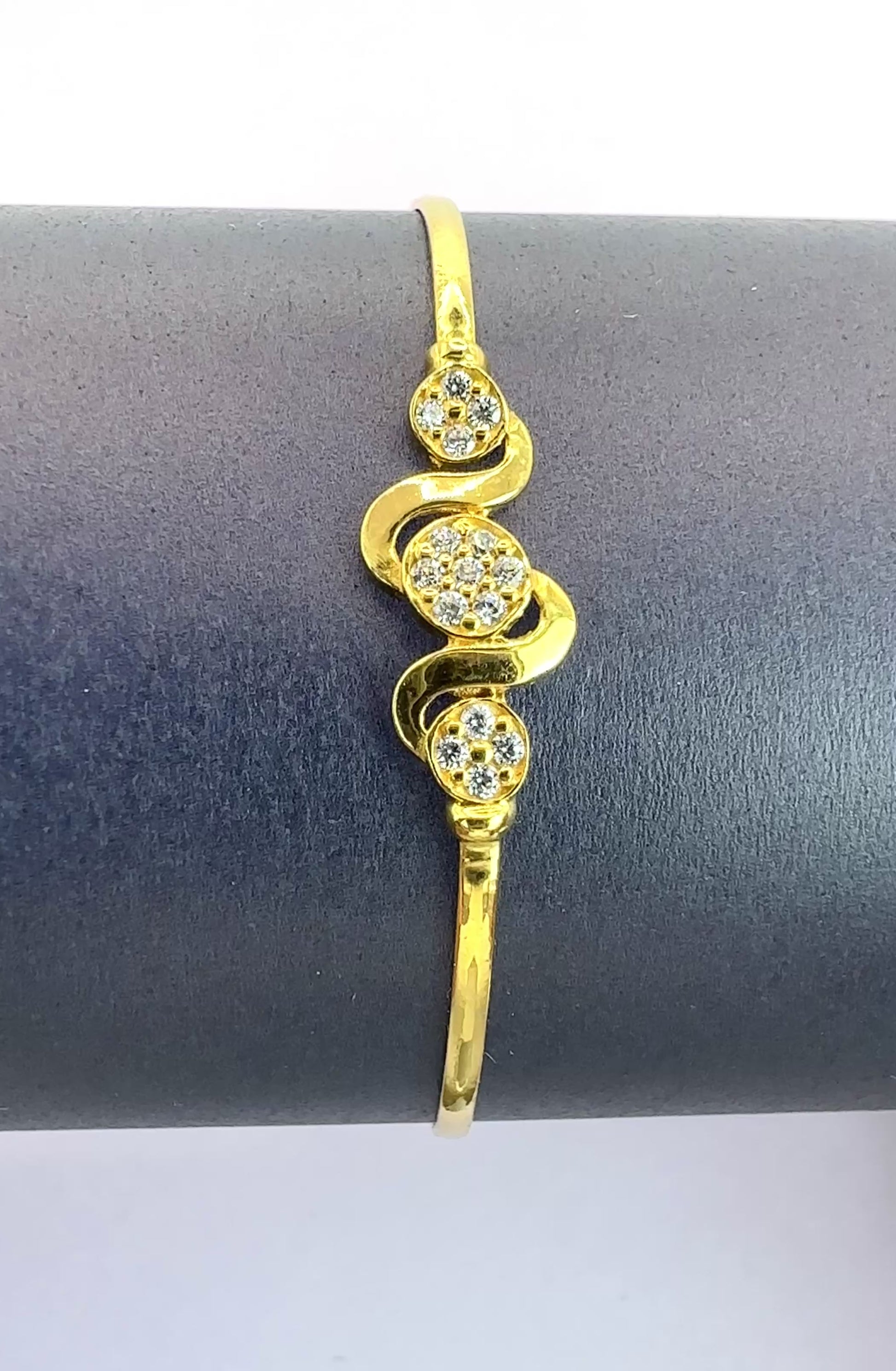 22k solid gold baby bangle/ baby bracelet with white cubic zirconia gemstones - British 916 hallmark.