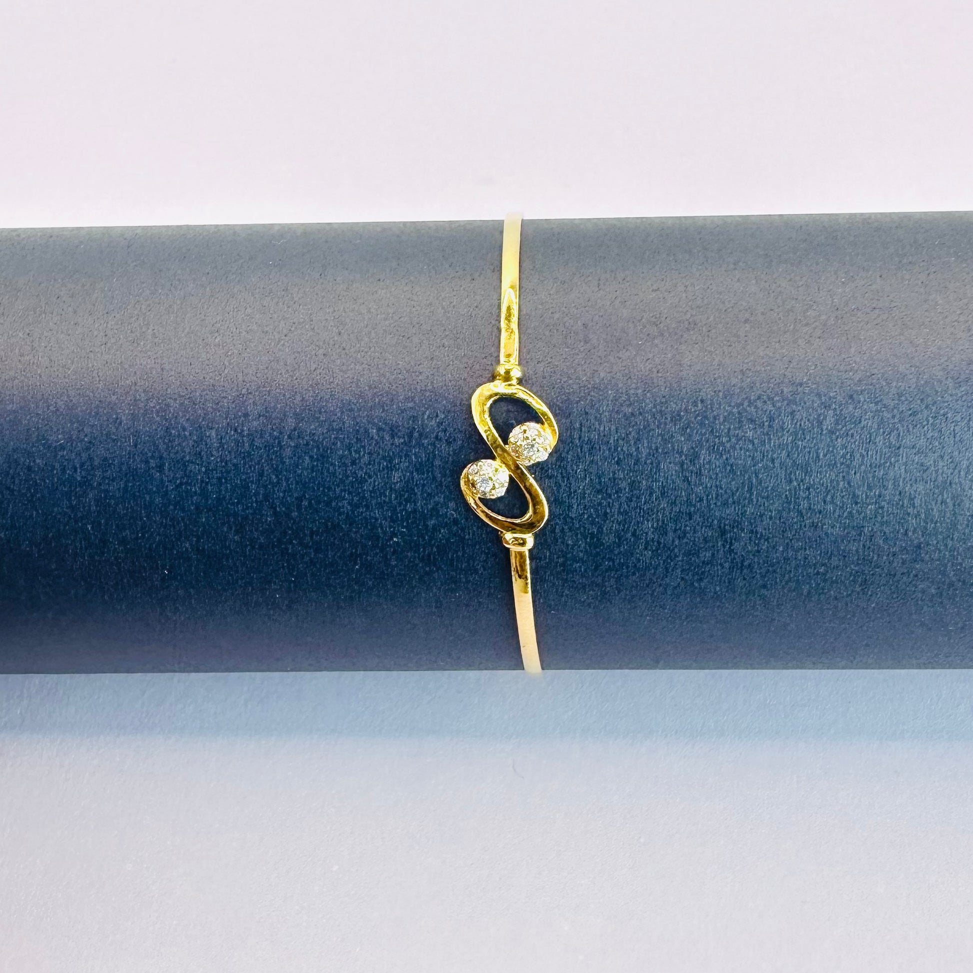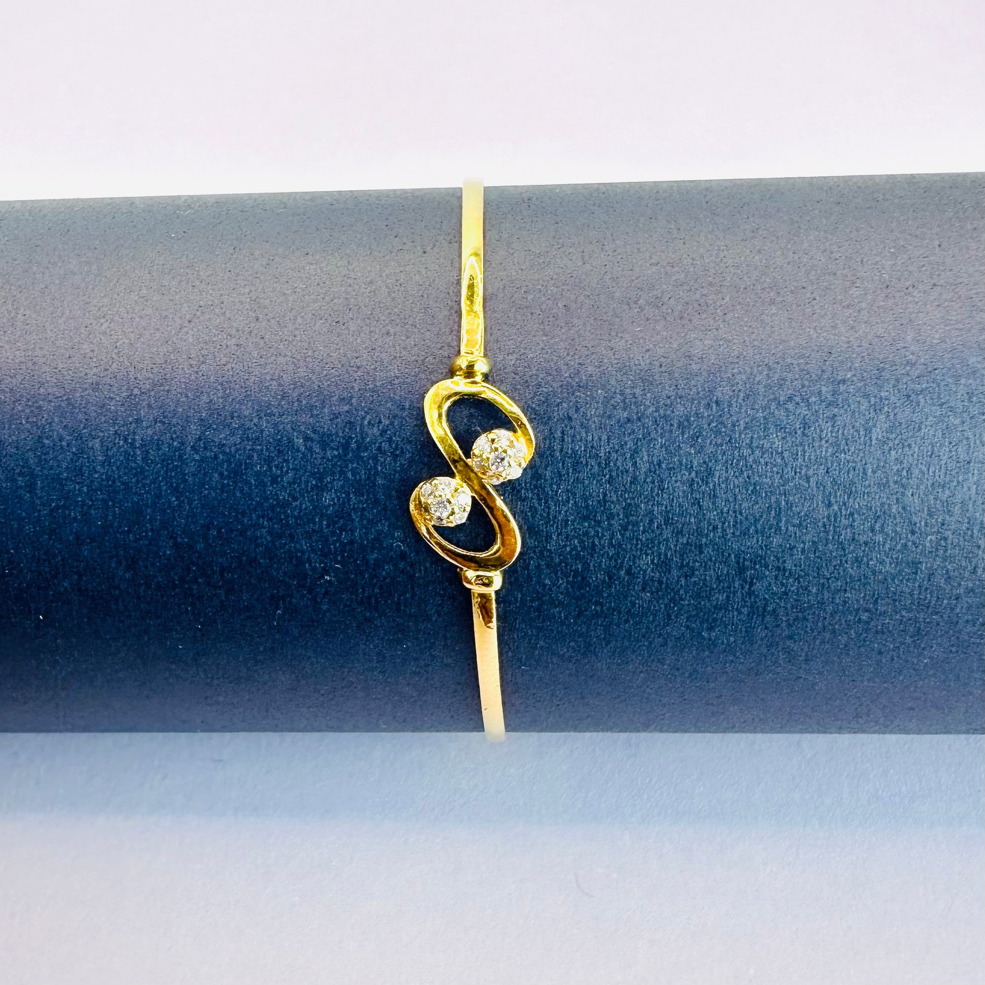 22k solid gold baby bangle/ baby bracelet with white cubic zirconia gemstones - British 916 hallmark.