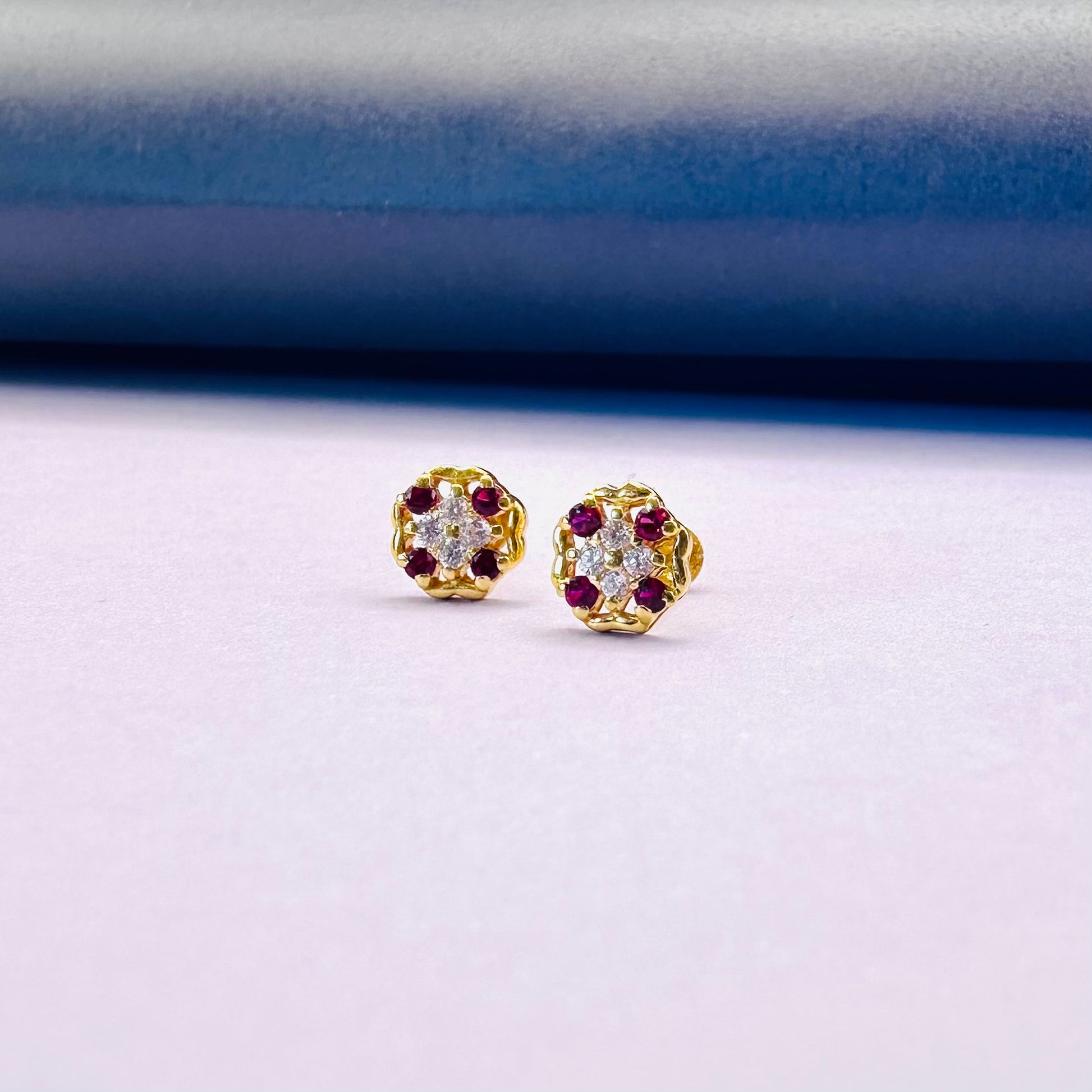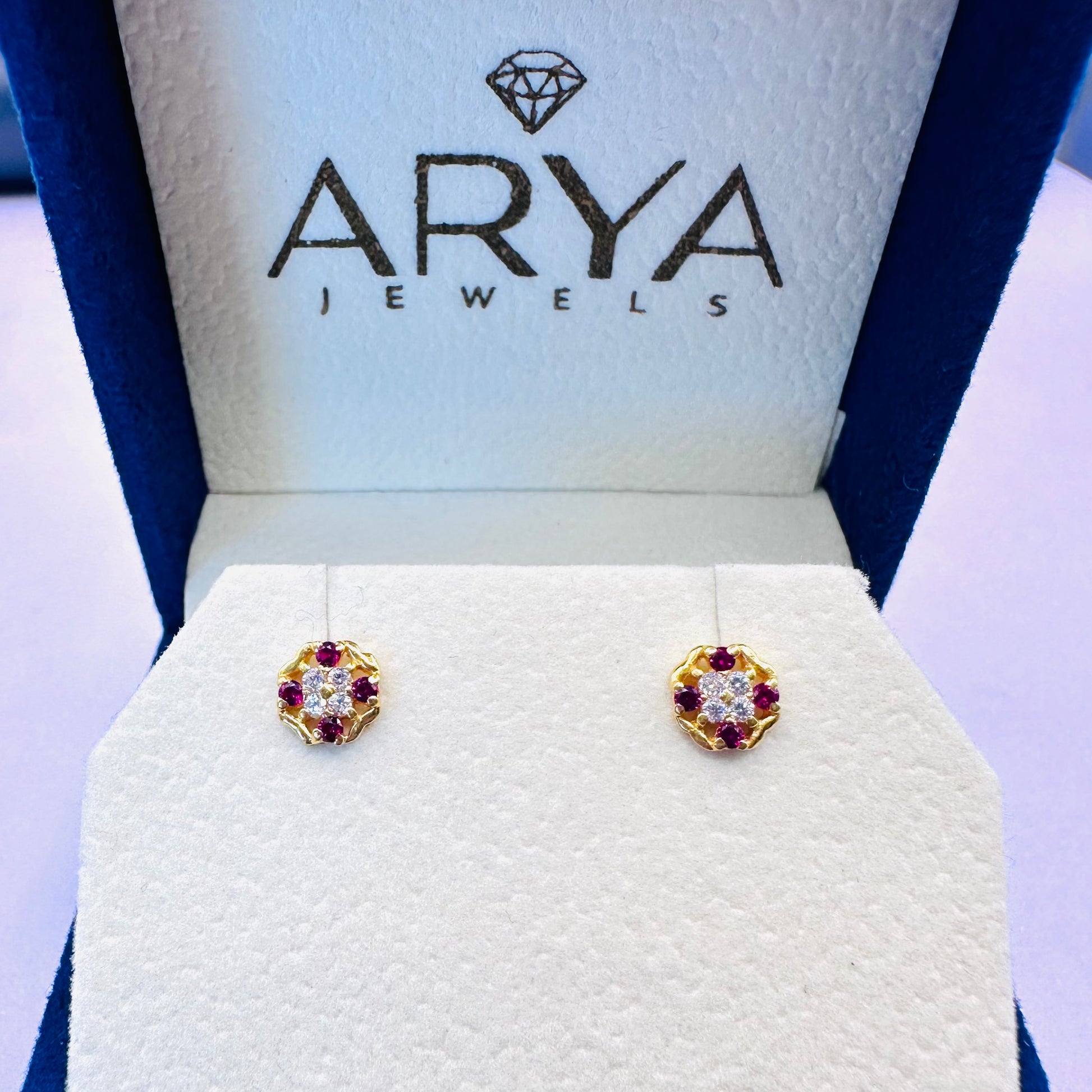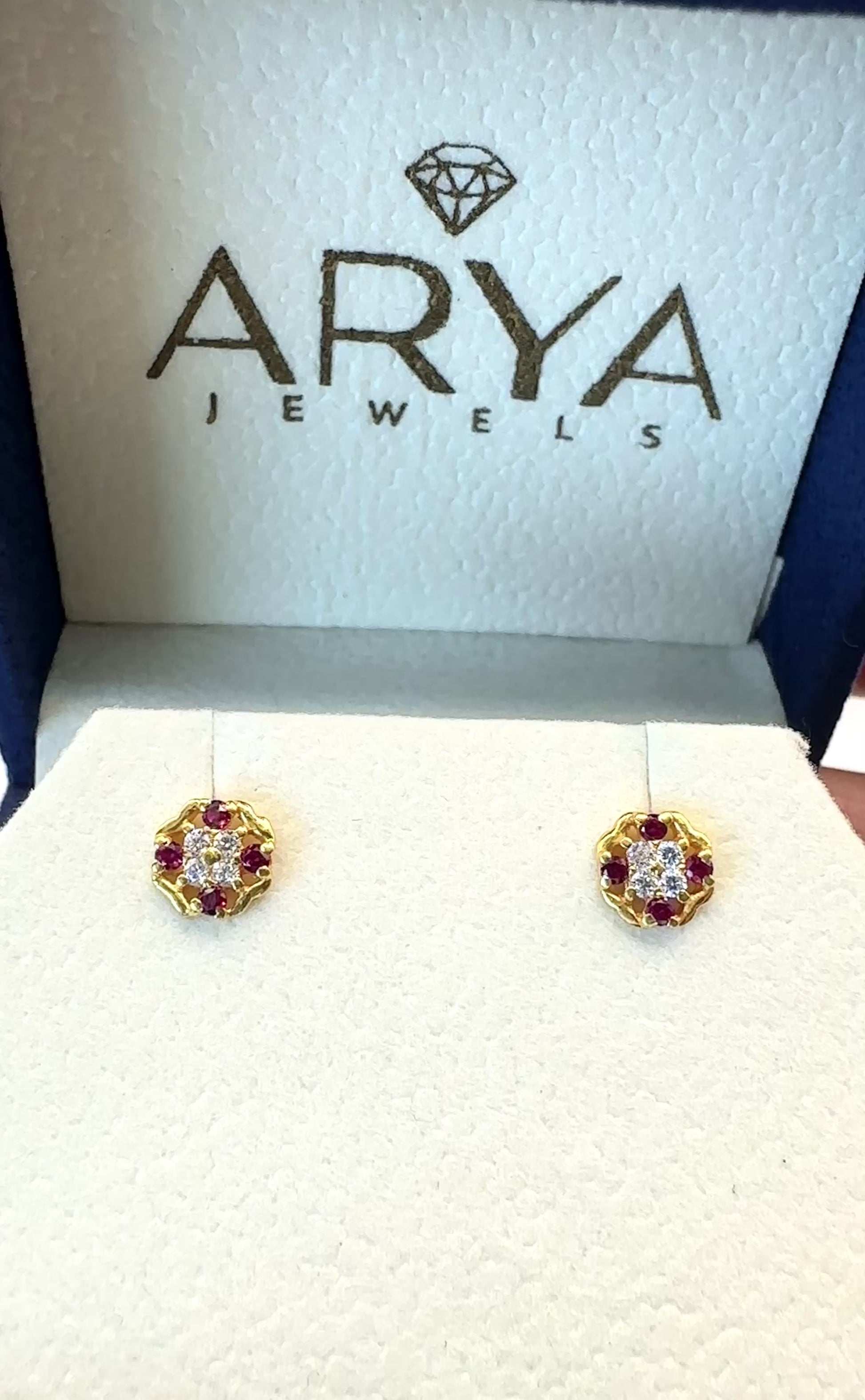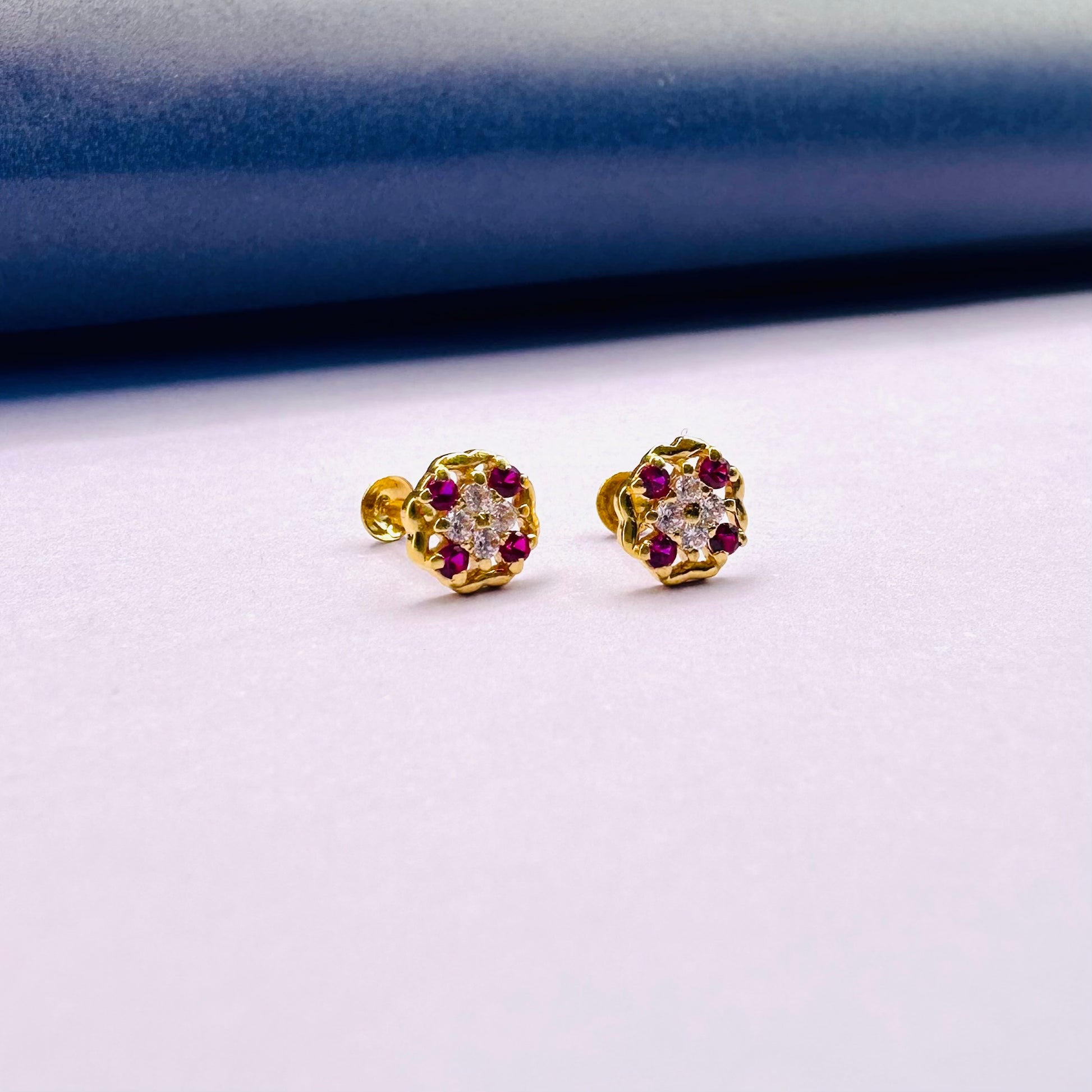 22k solid gold earring, perfect for both kids and adults with Cubic zirconia stones - 916 hallmarked.