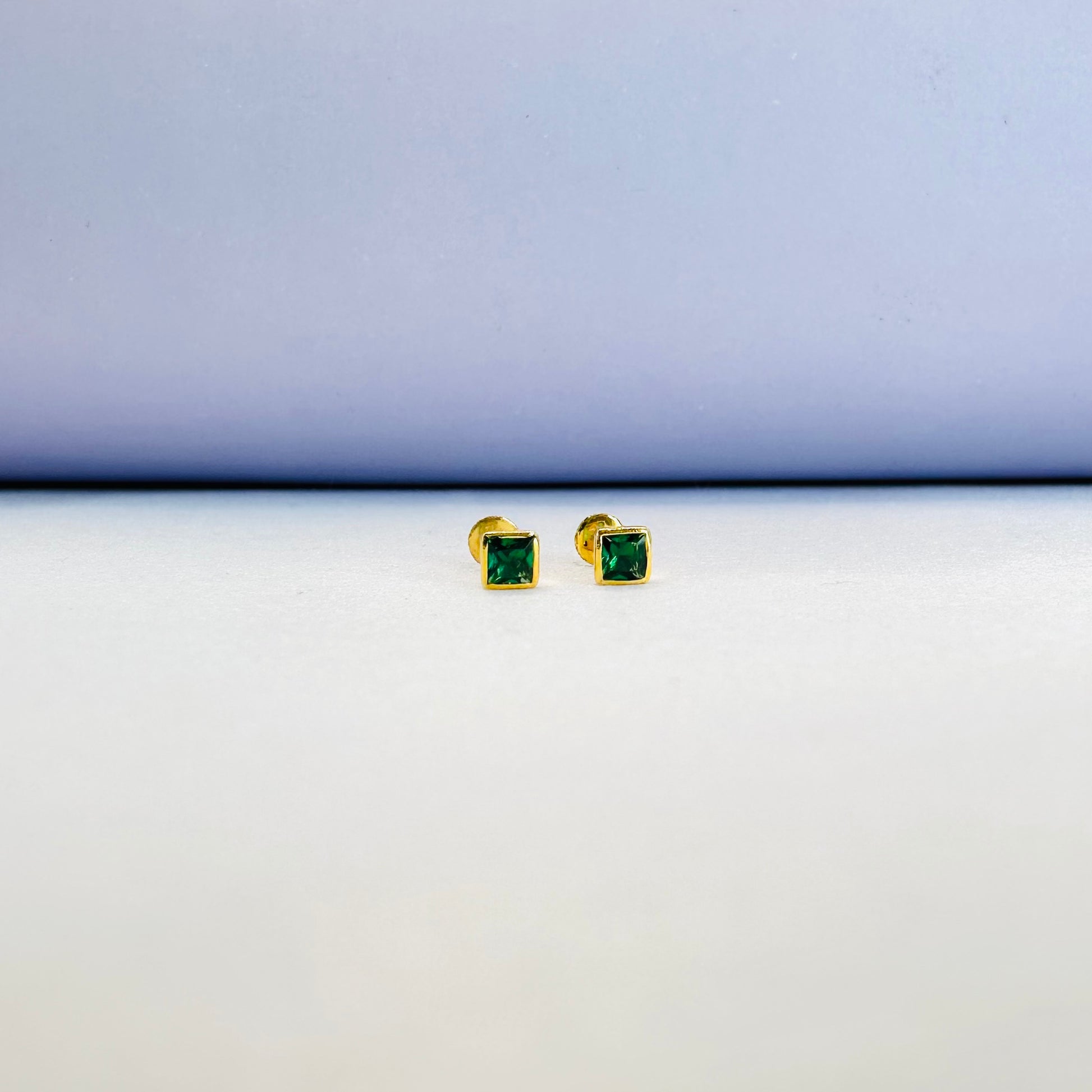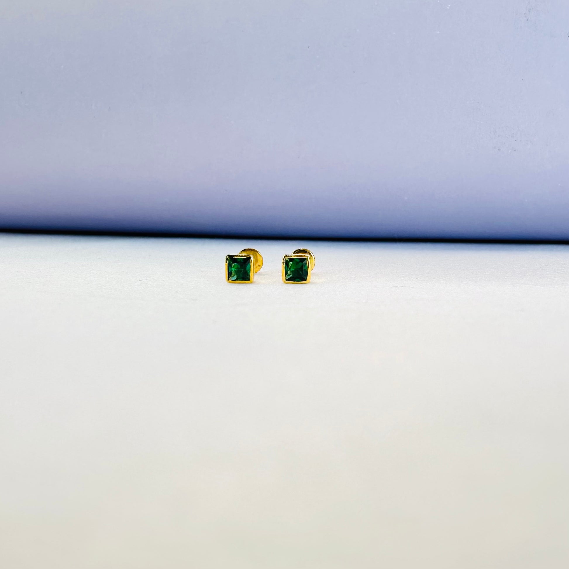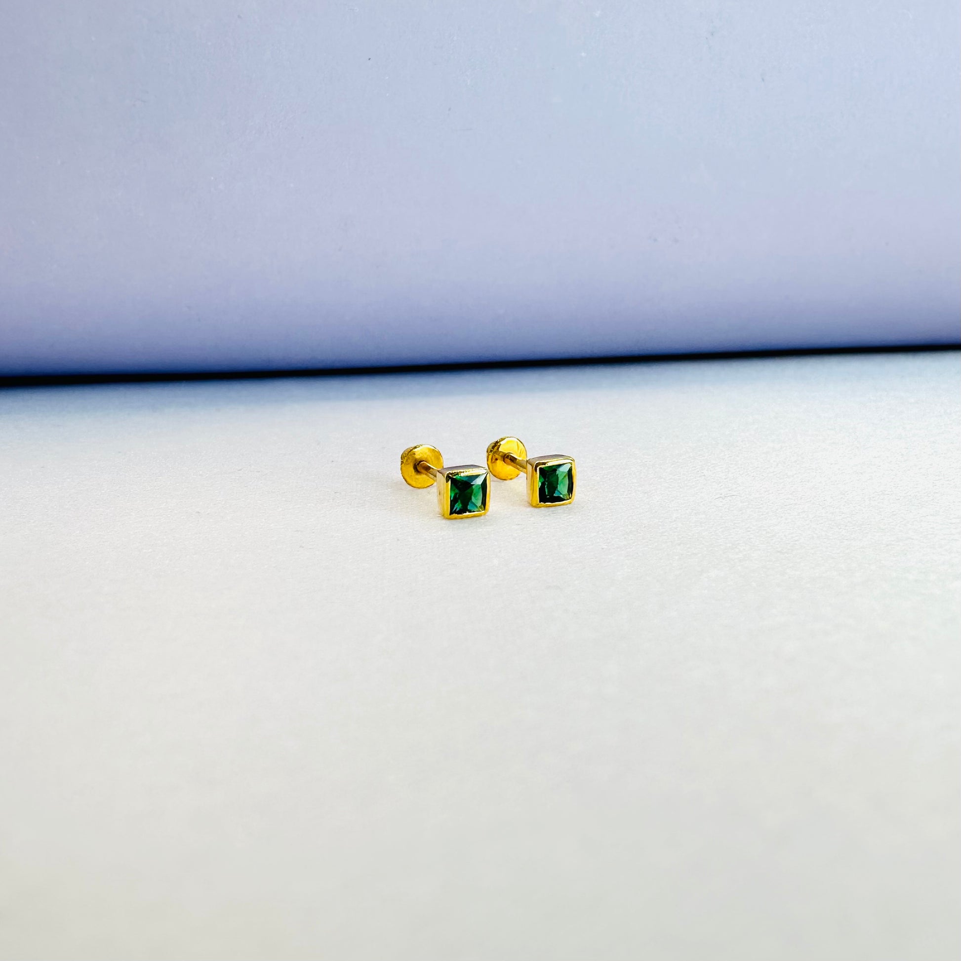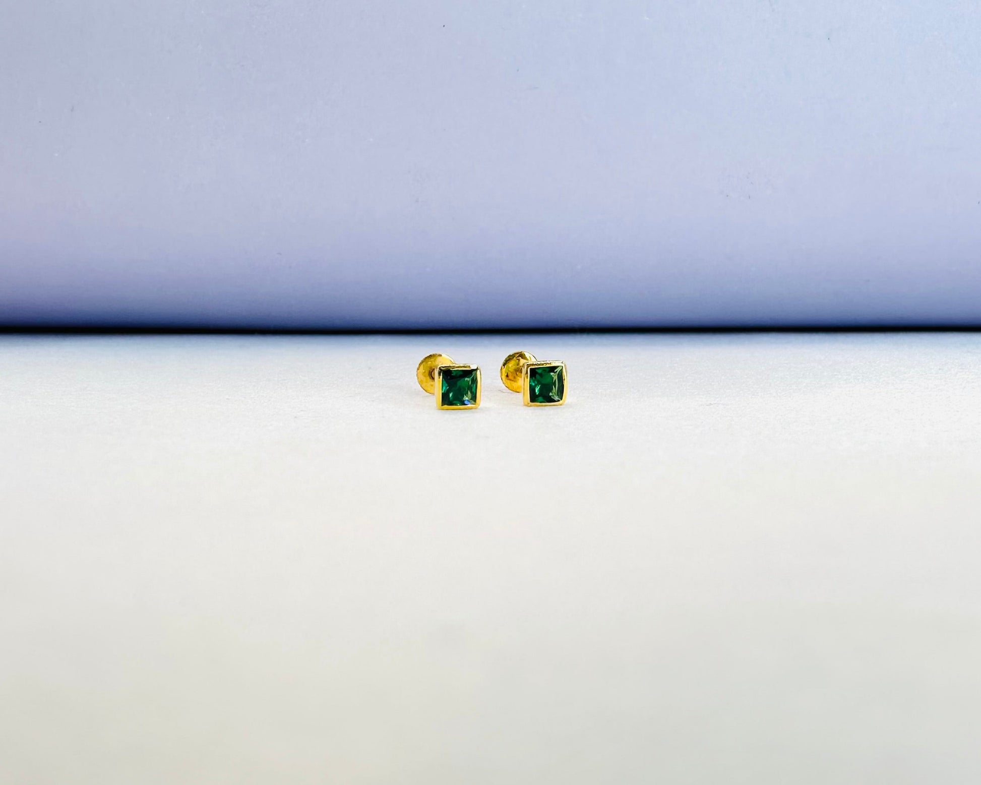 22k solid gold green colour CZ square earrings, perfect for both kids and adults.