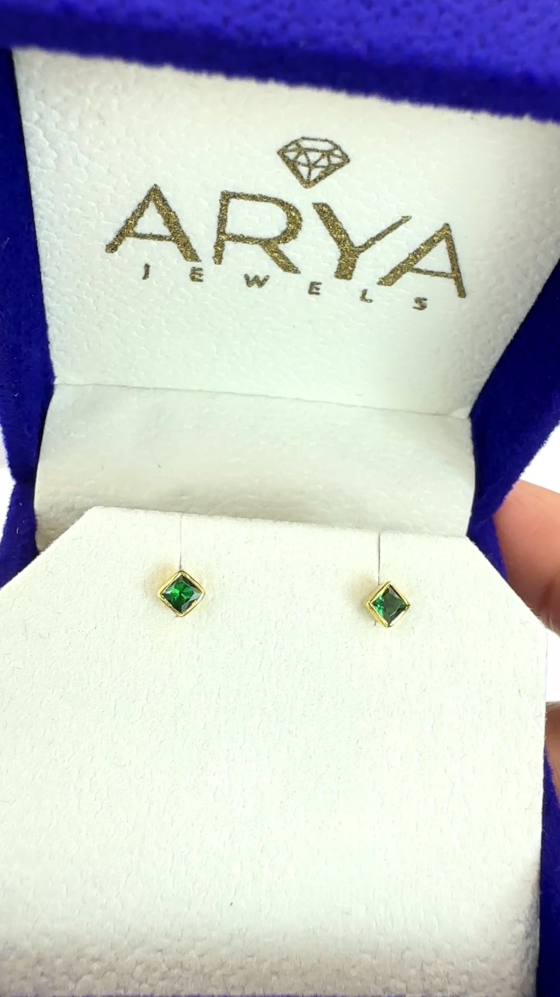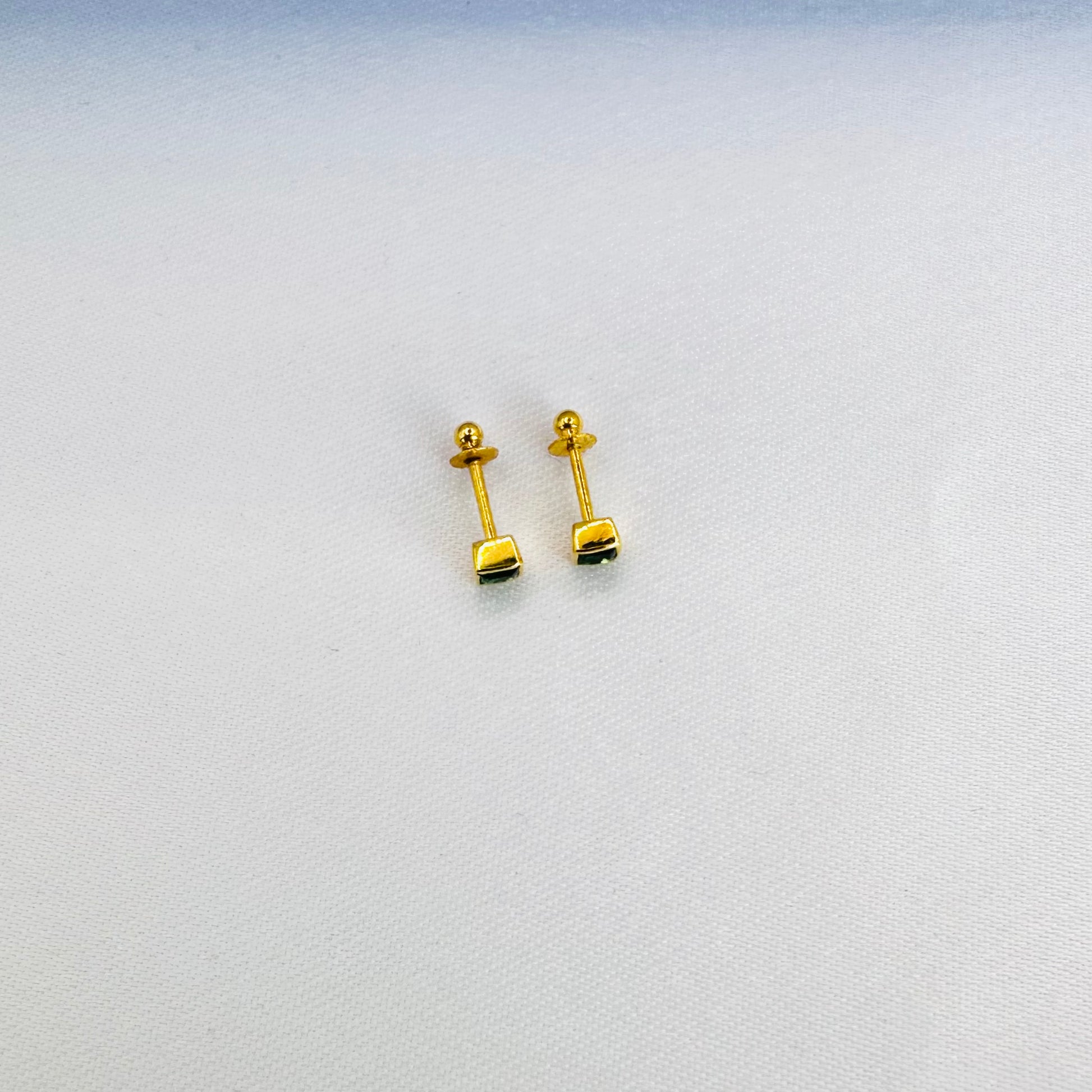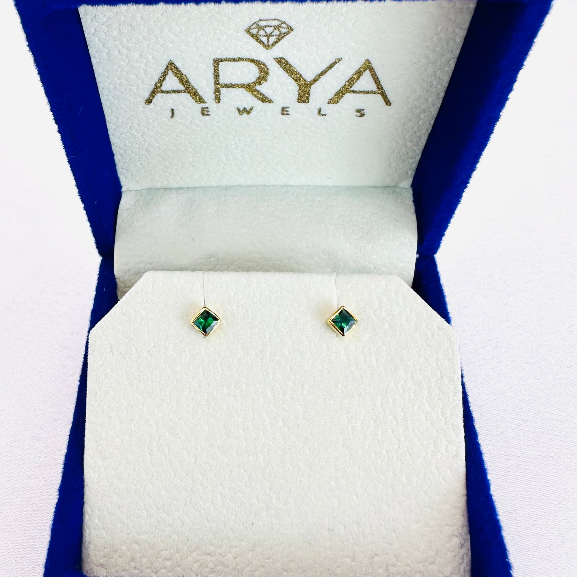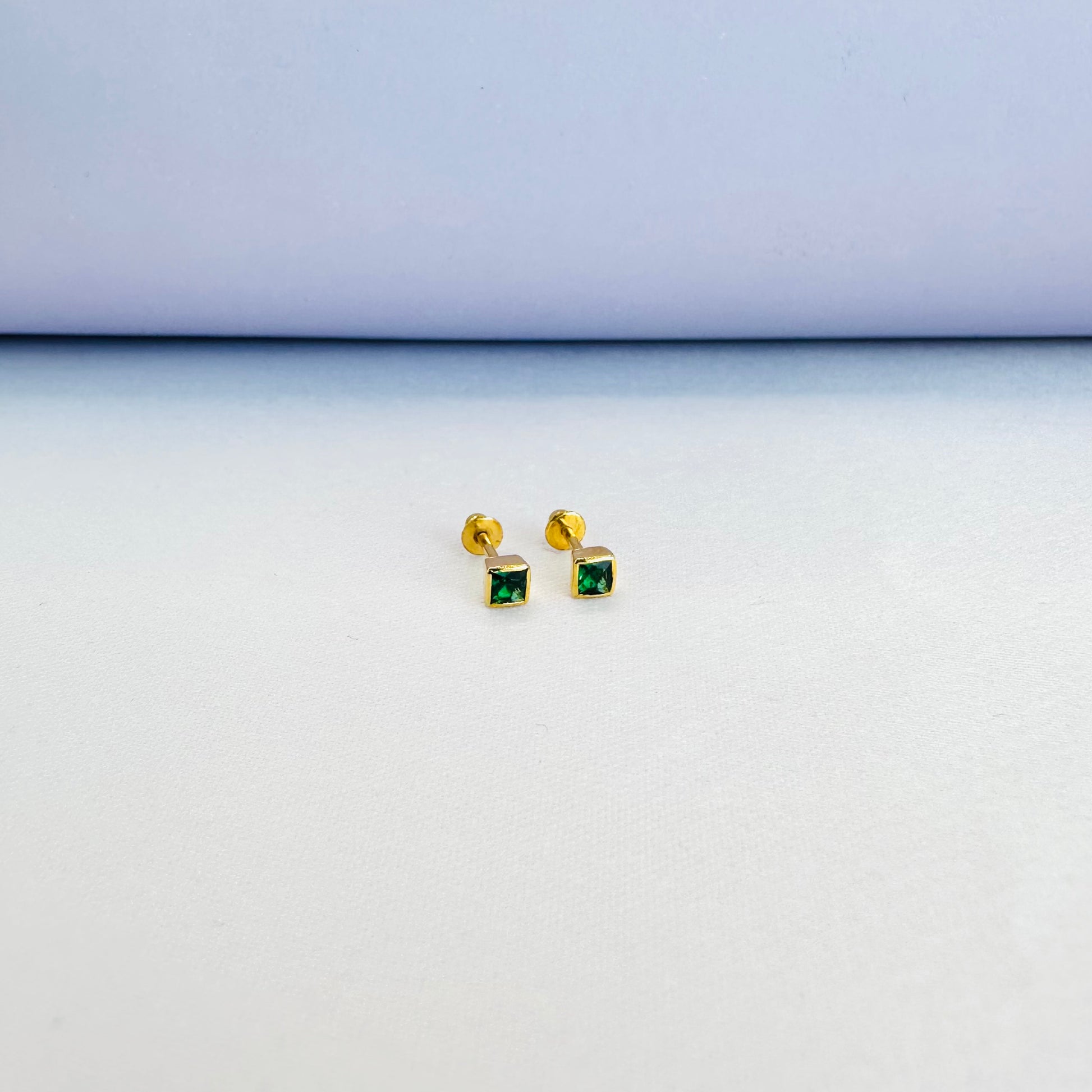 22k solid gold green colour CZ square earrings, perfect for both kids and adults.