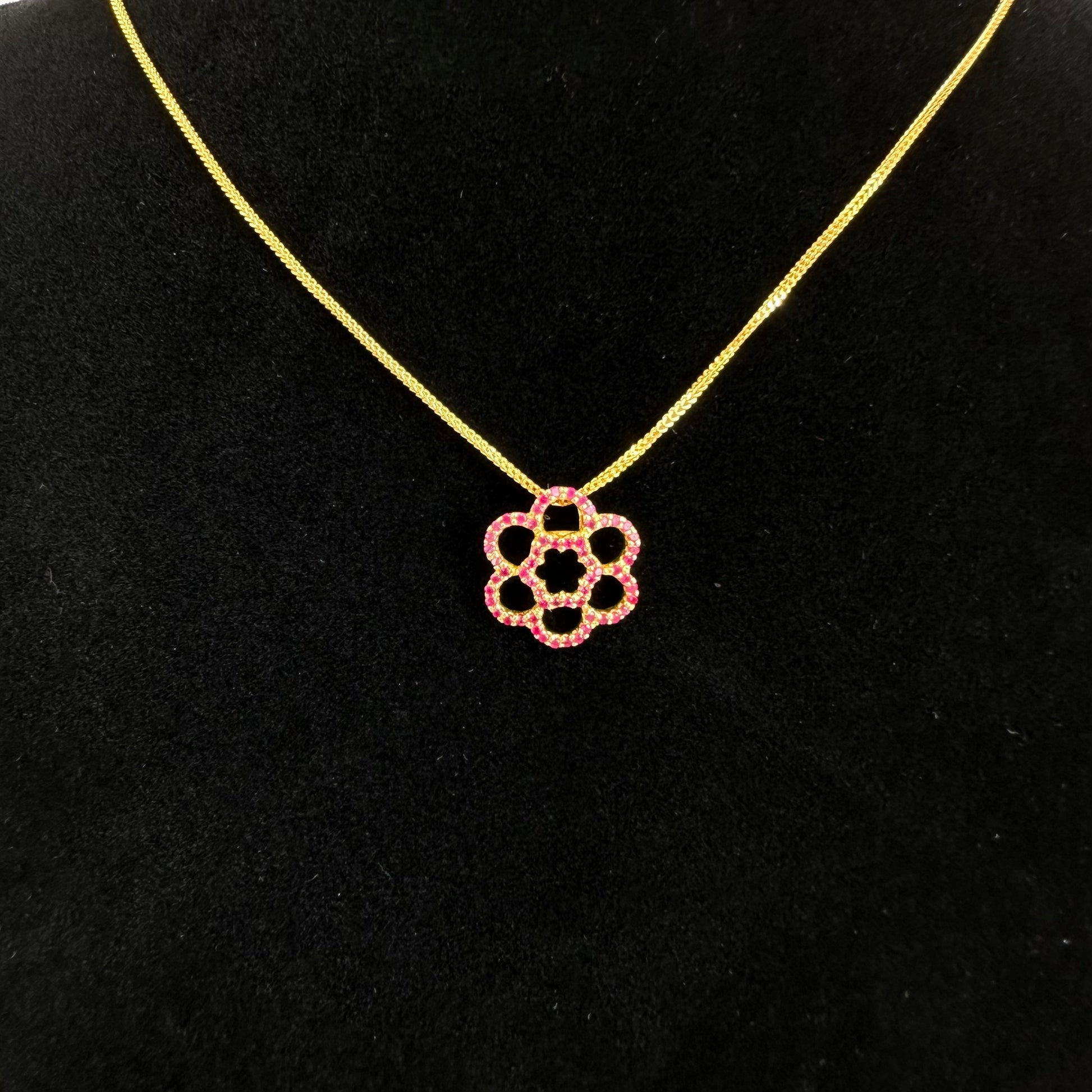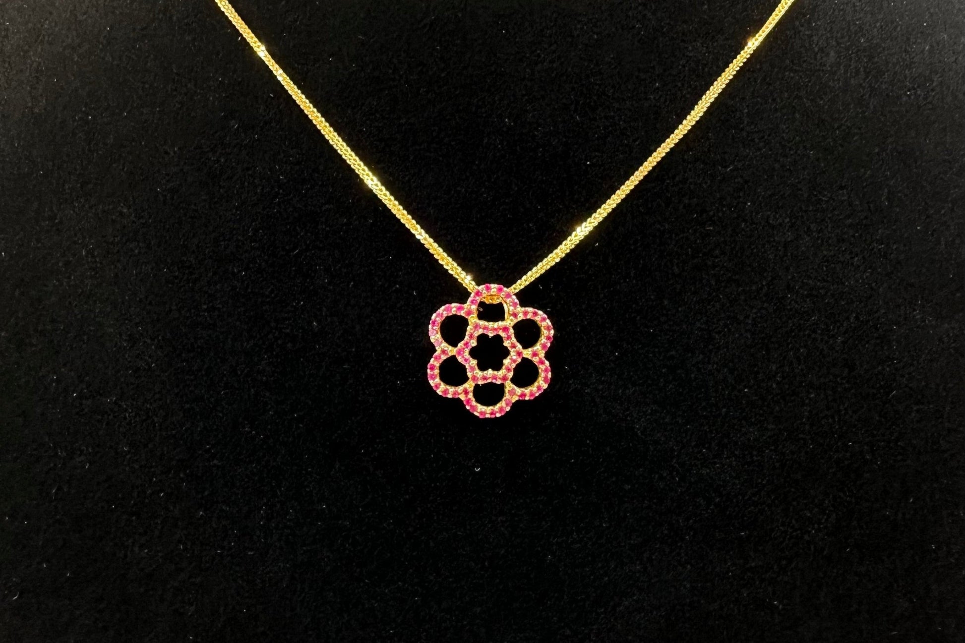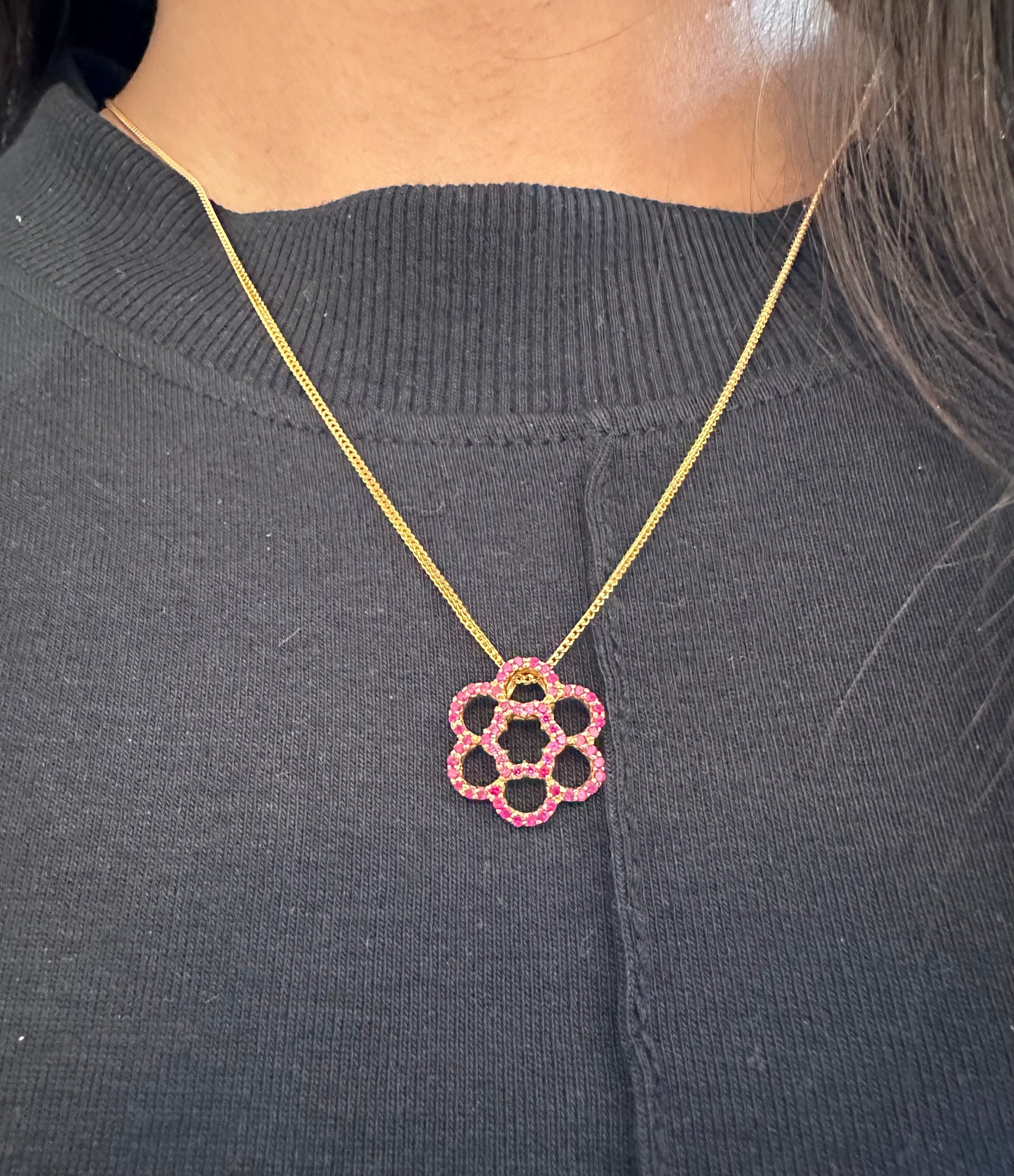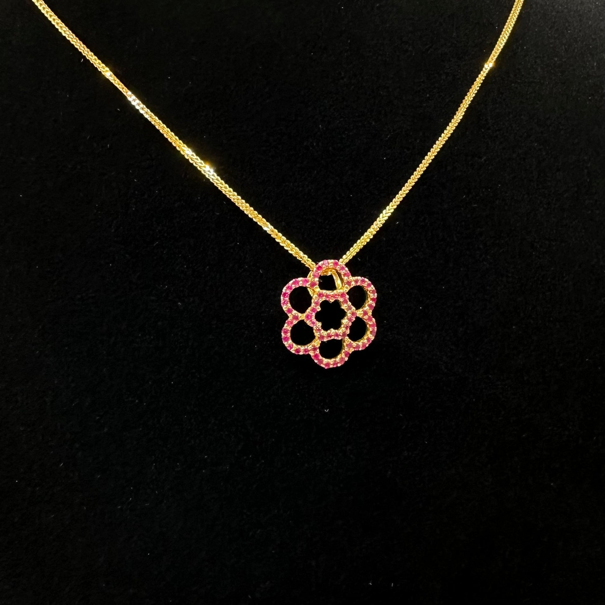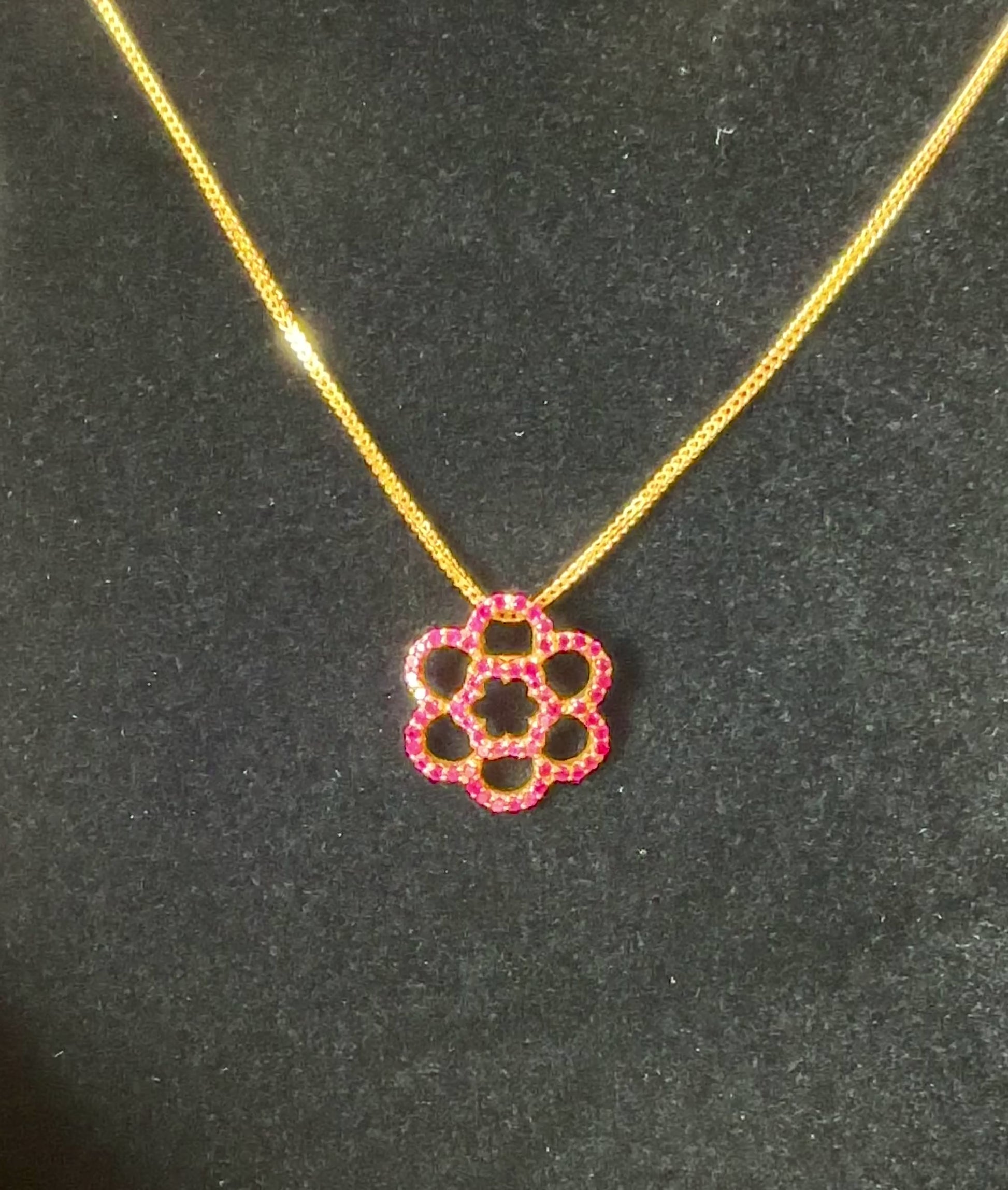 This is a beautiful 22k solid gold flower pendant/charms pendant studded with ruby colour CZ.
