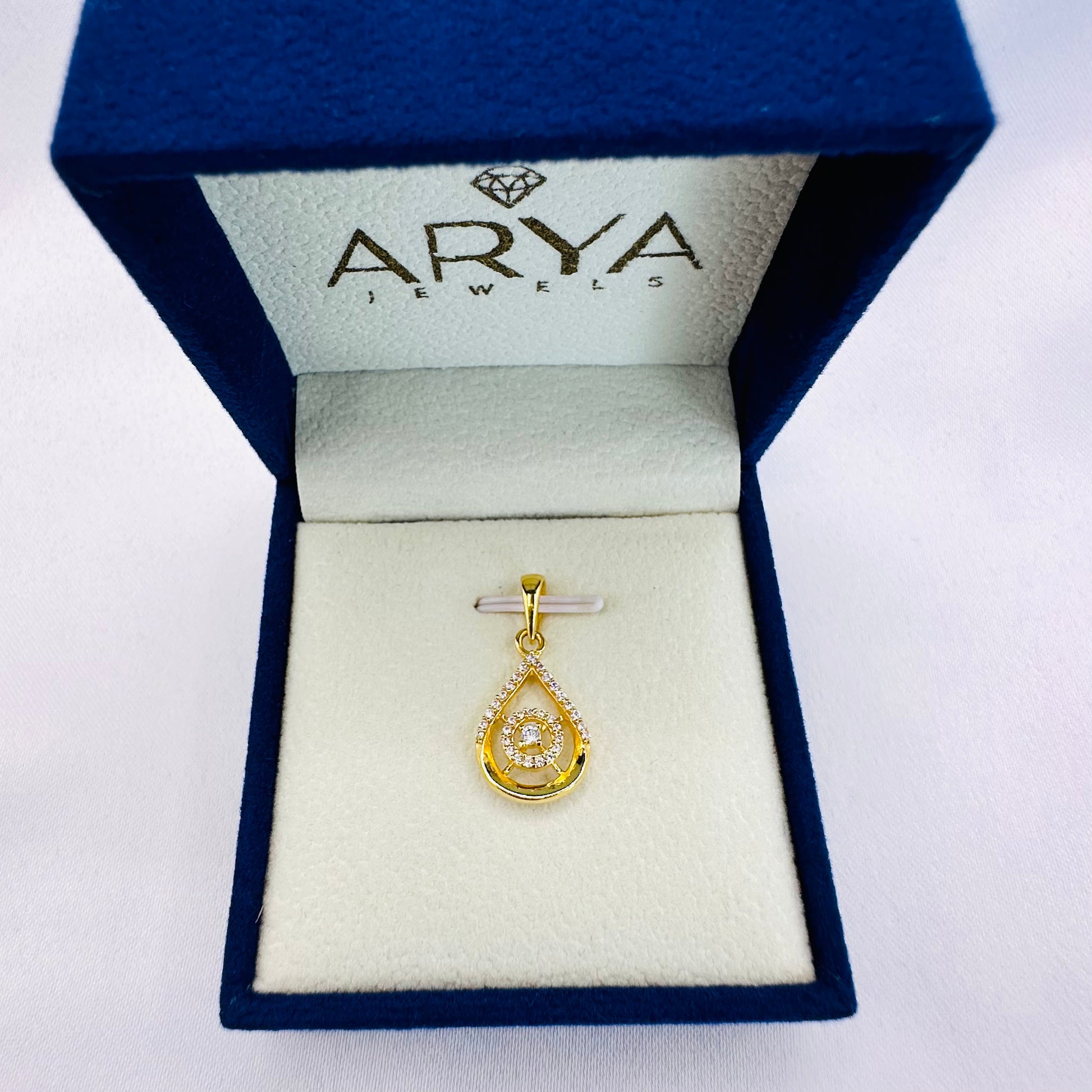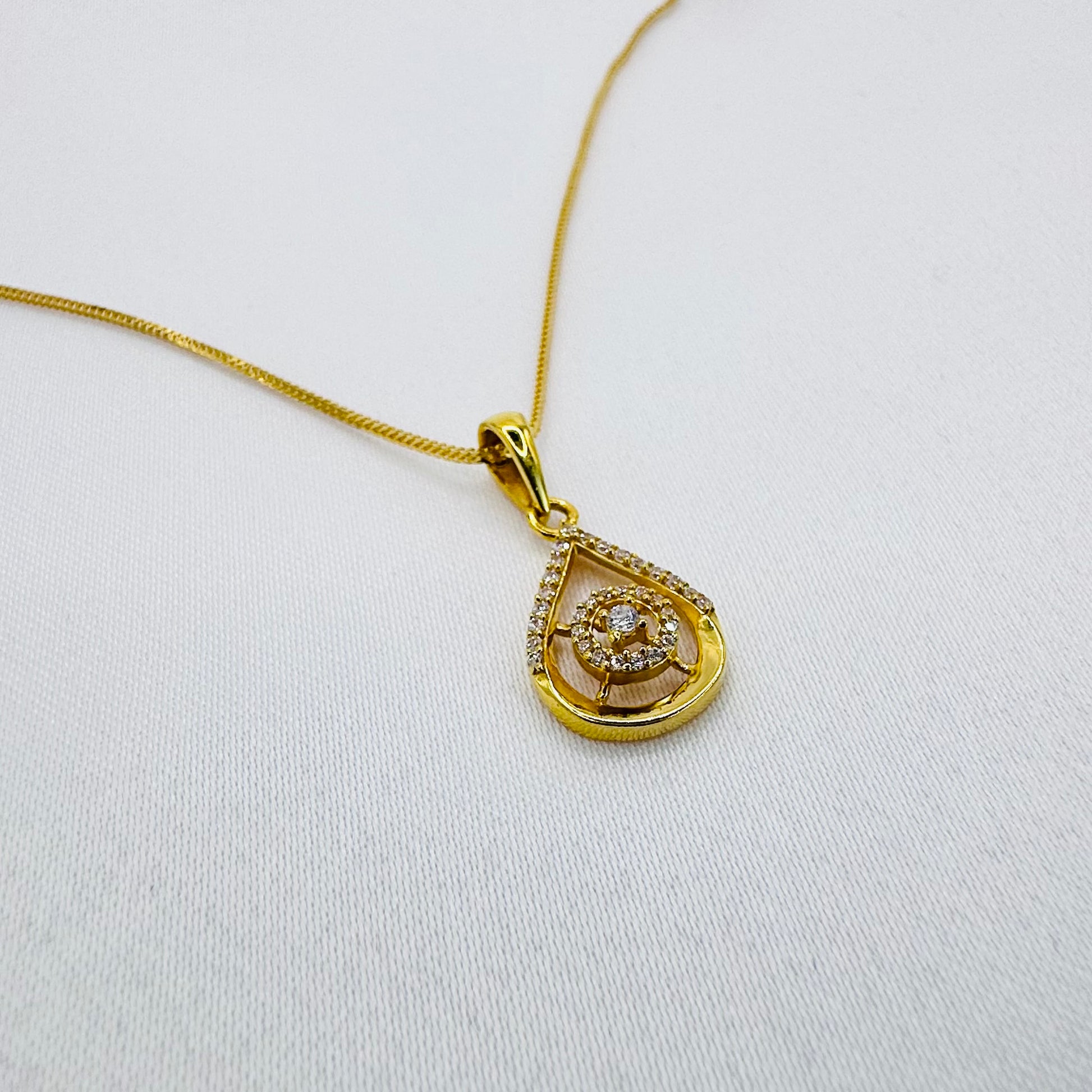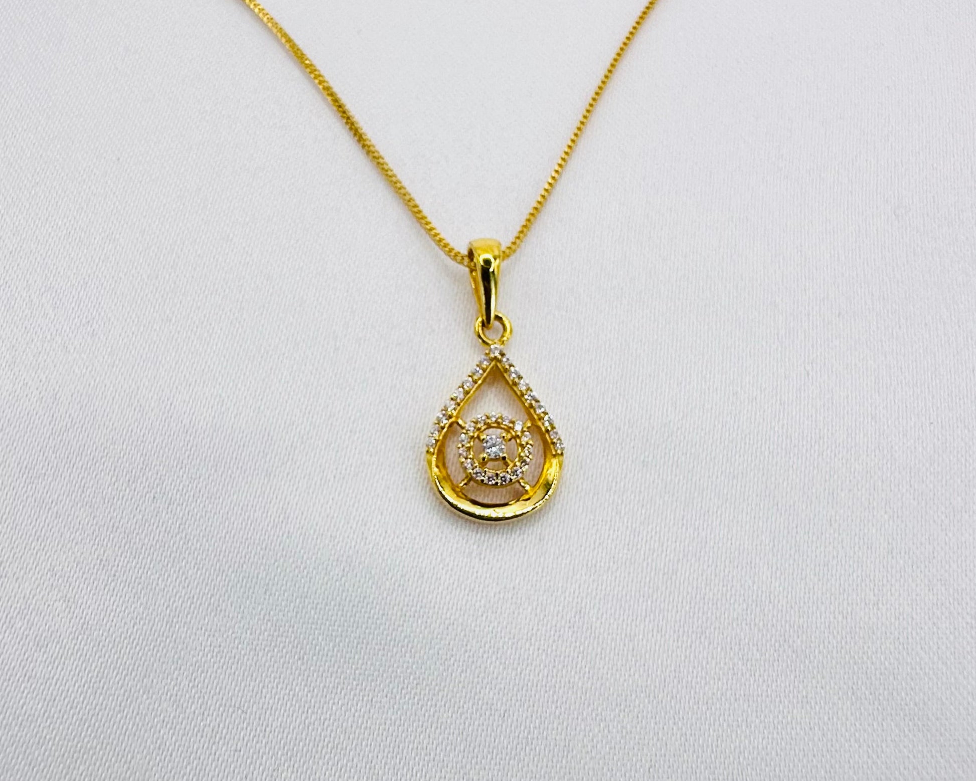 22k solid gold tear drop pendant/charms pendant studded with white CZ.