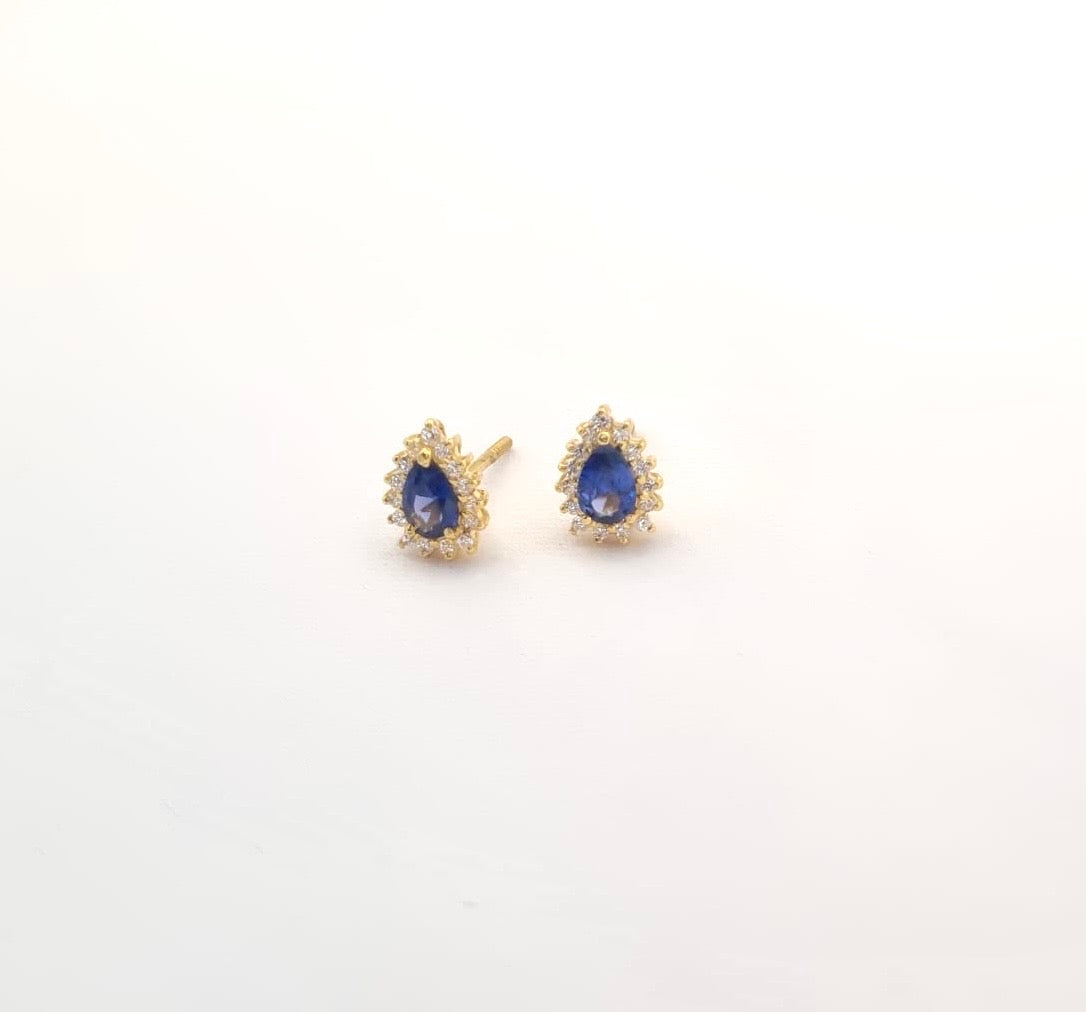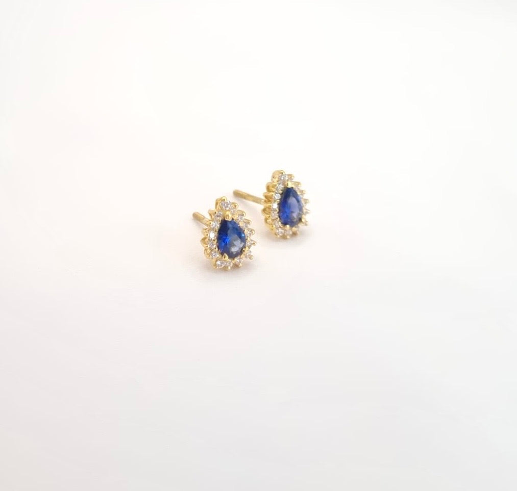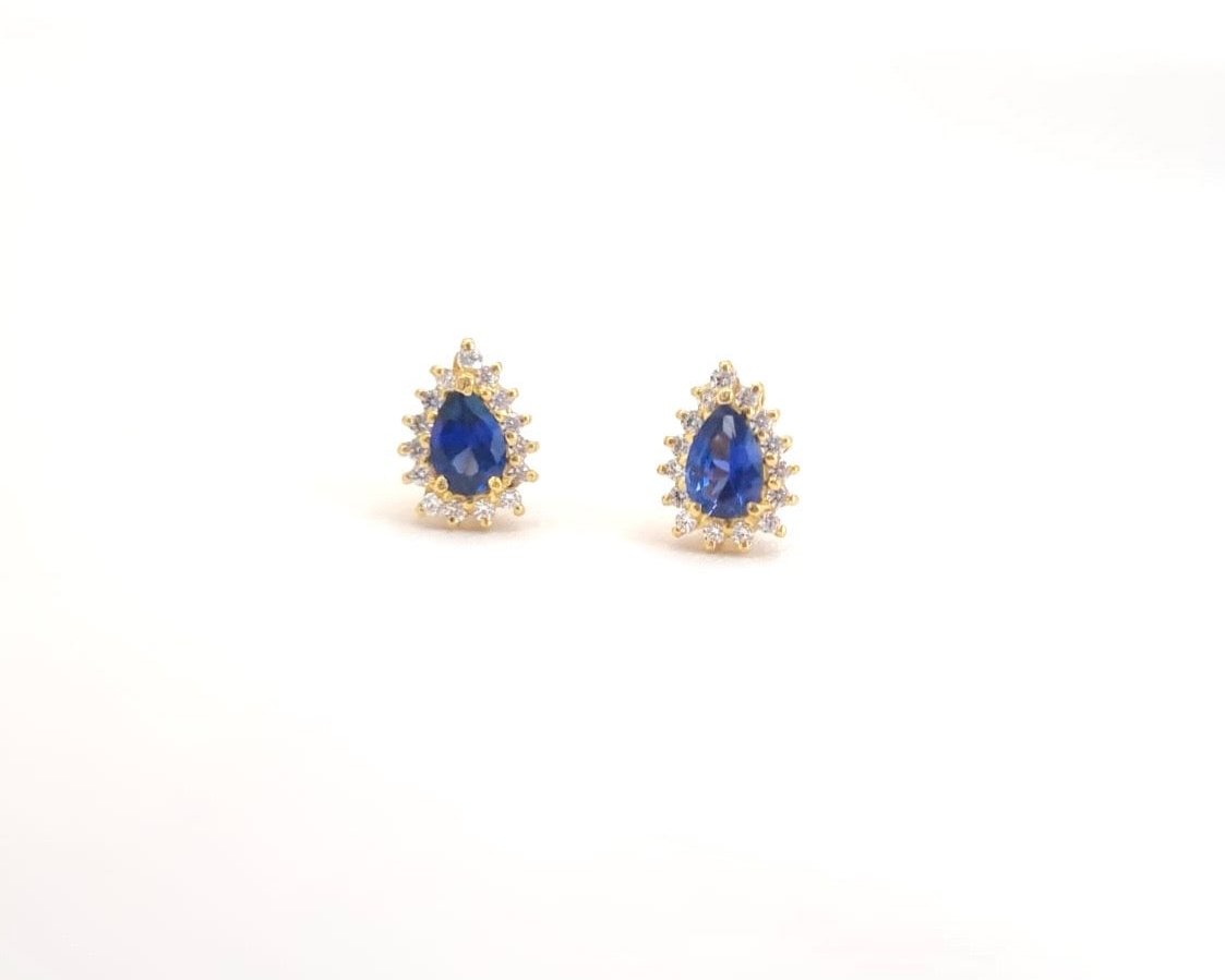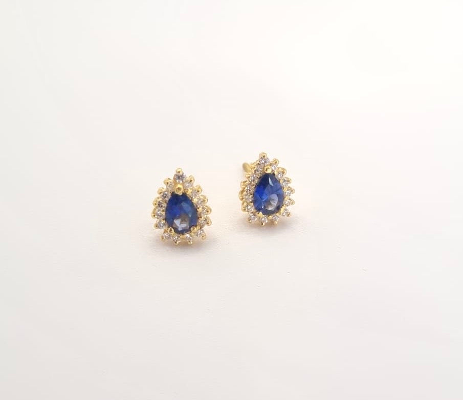 Exquisite 22k solid gold Royal blue earrings. 22k solid gold earrings with white and blue cubic zirconia gemstones - UK 916 hallmarked. Perfect for gifting.
