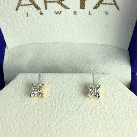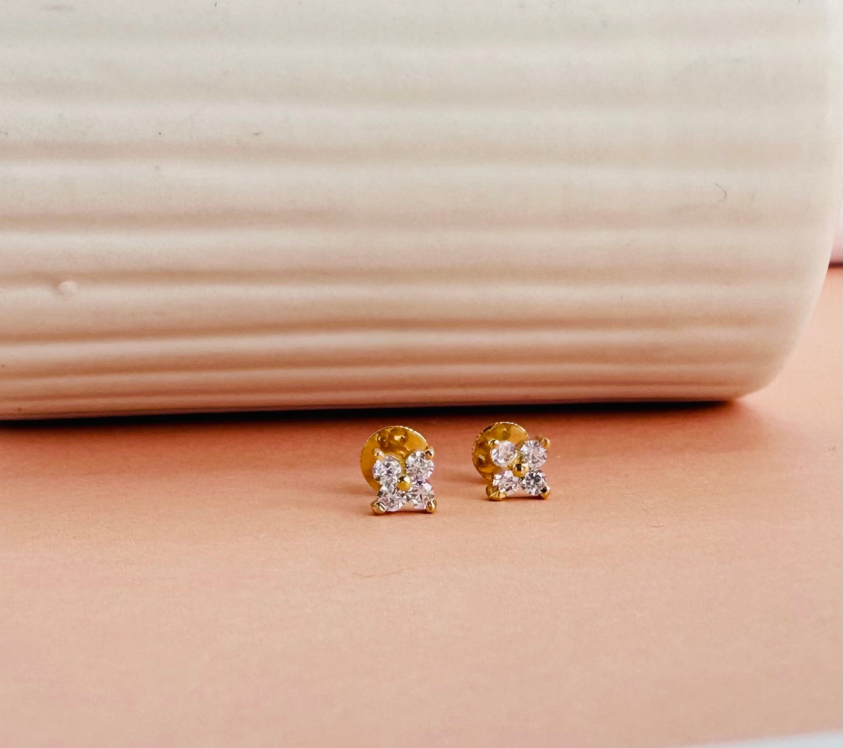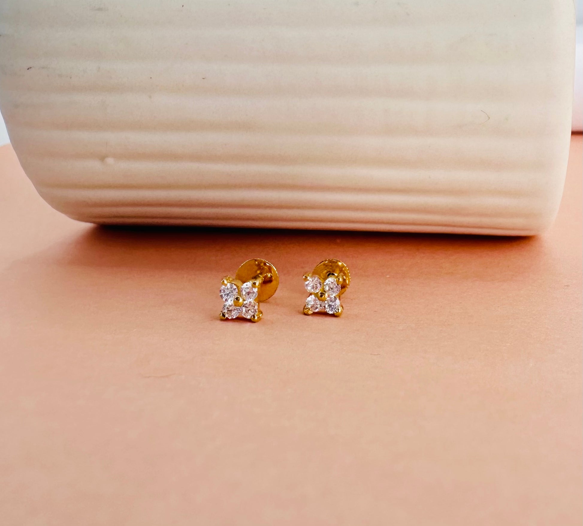 22k solid gold ear studs with four white CZ gemstones- perfect gift for kids and adults.