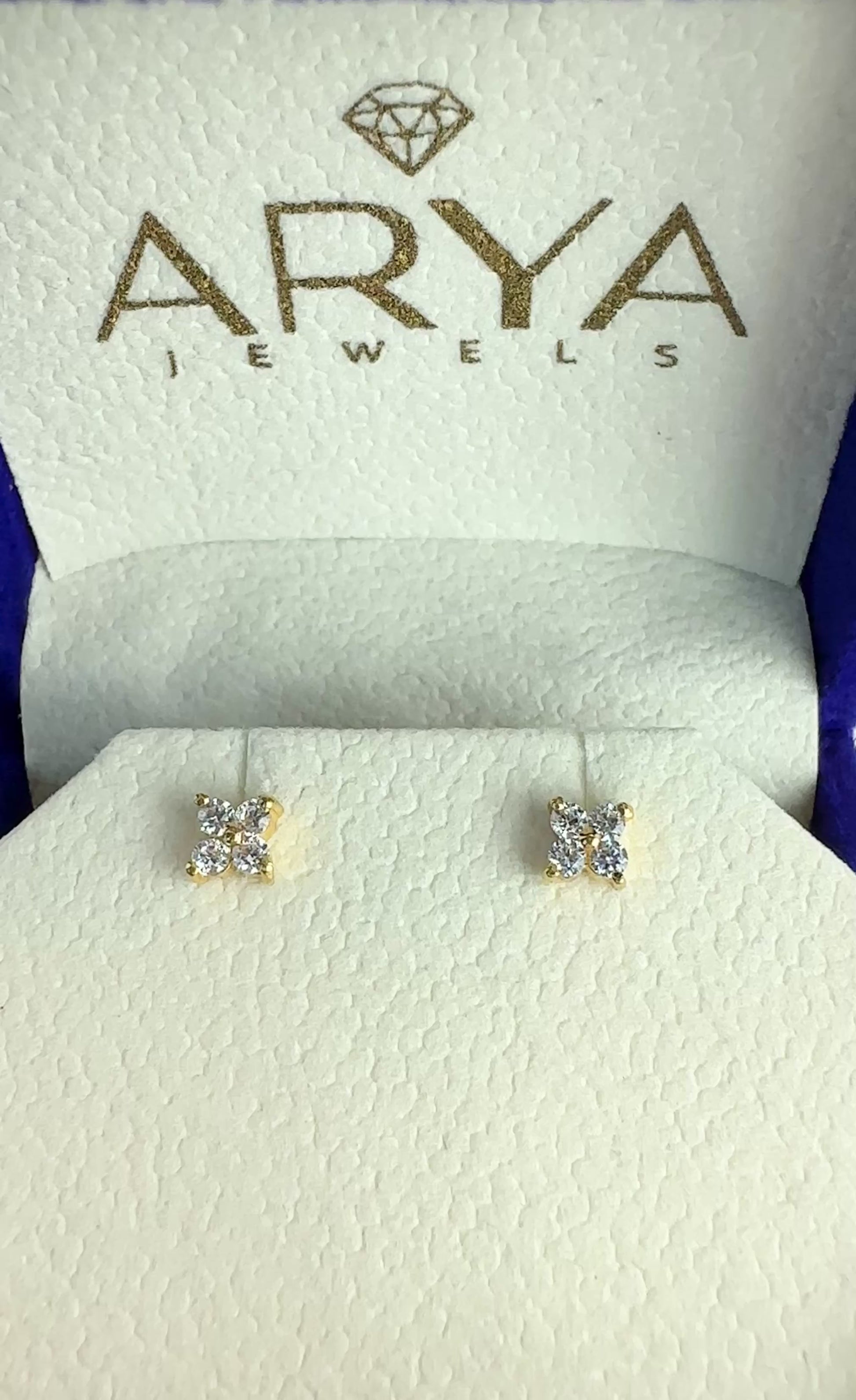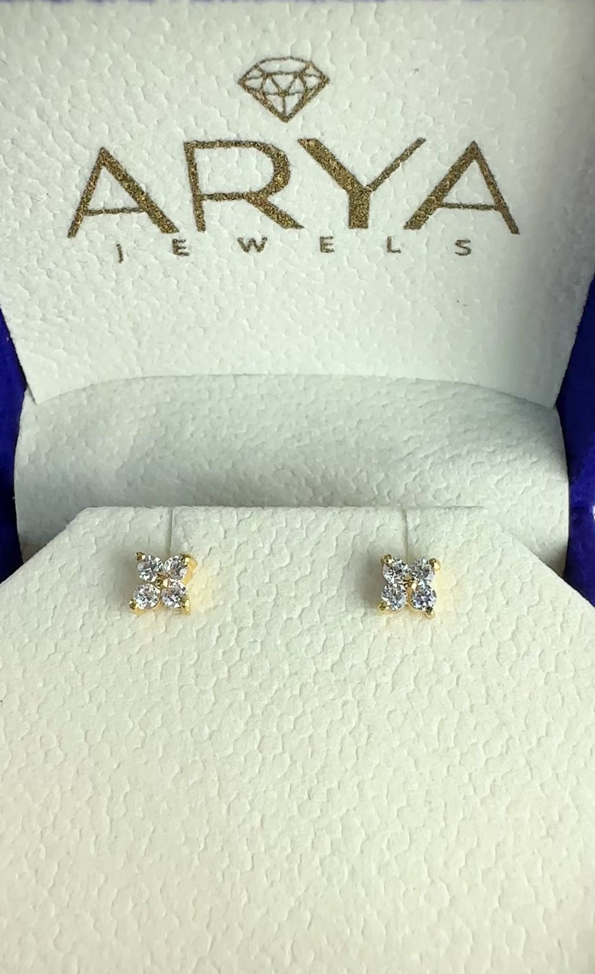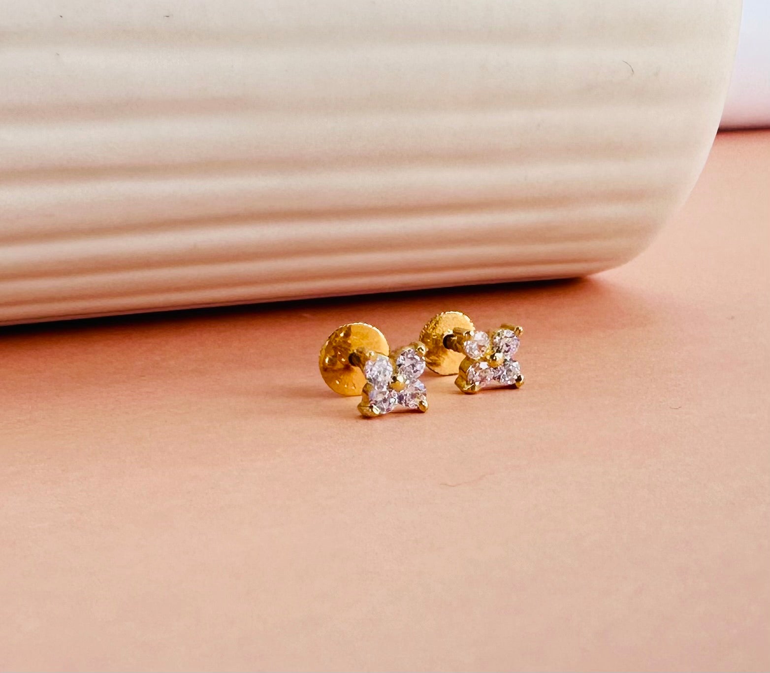 22k solid gold ear studs with four white CZ gemstones- perfect gift for kids and adults.