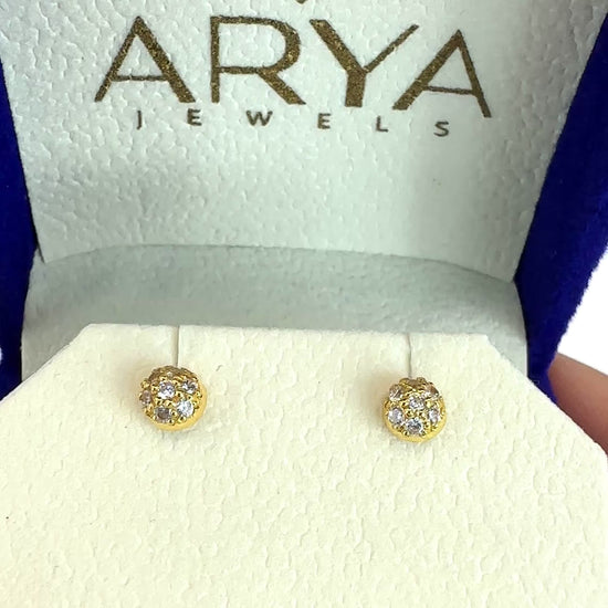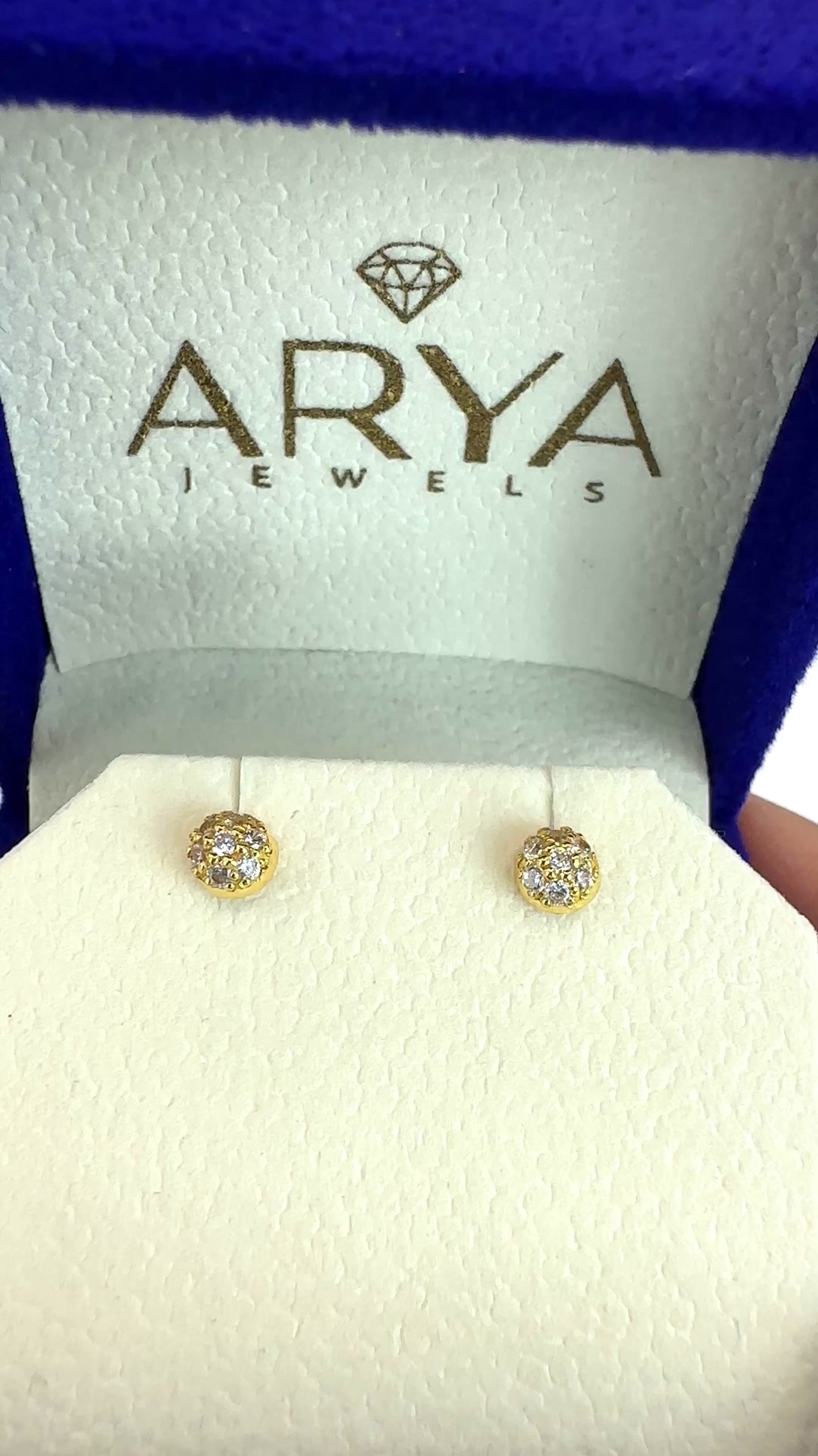 22k solid gold ear studs with white CZ gemstones- perfect gift for kids and adults.
